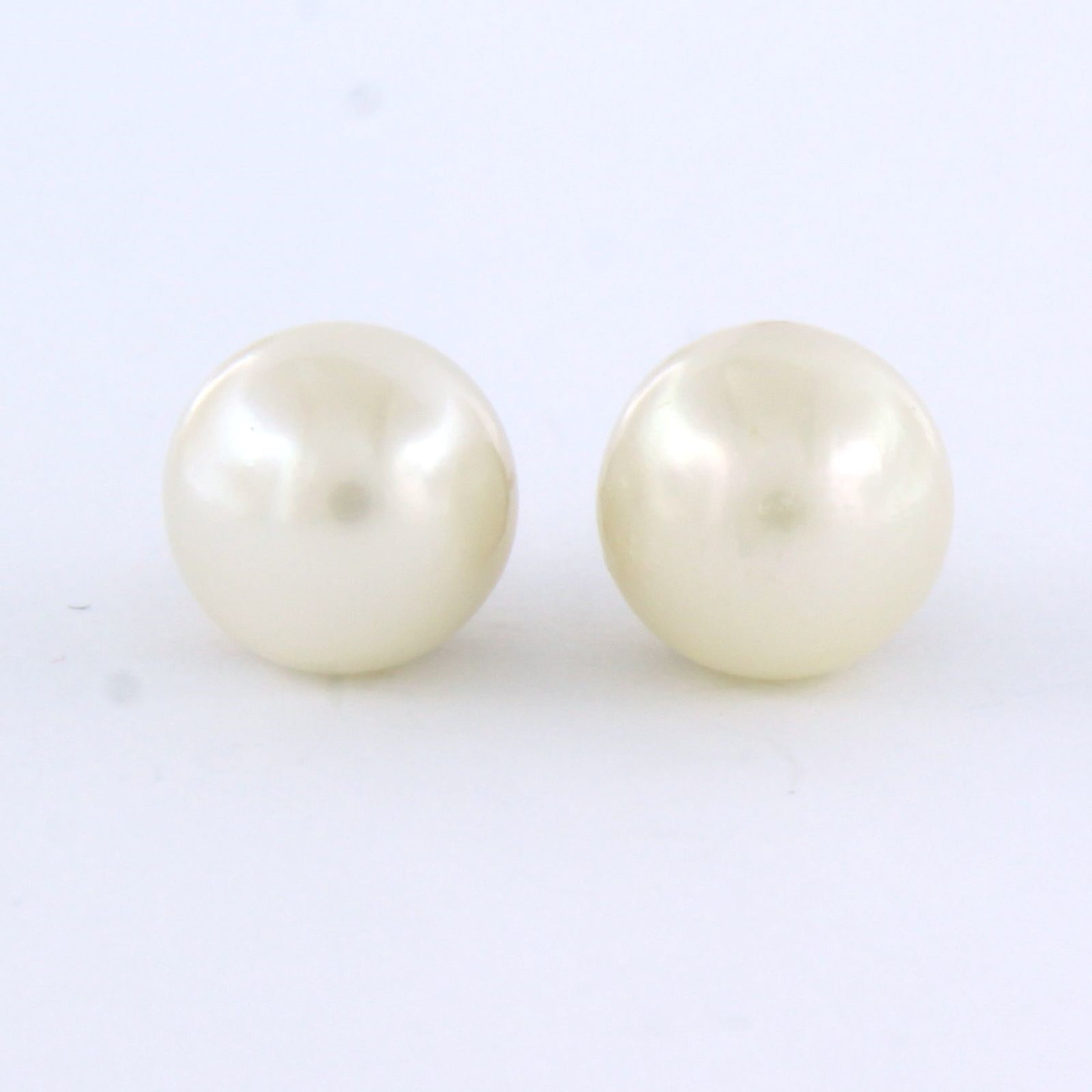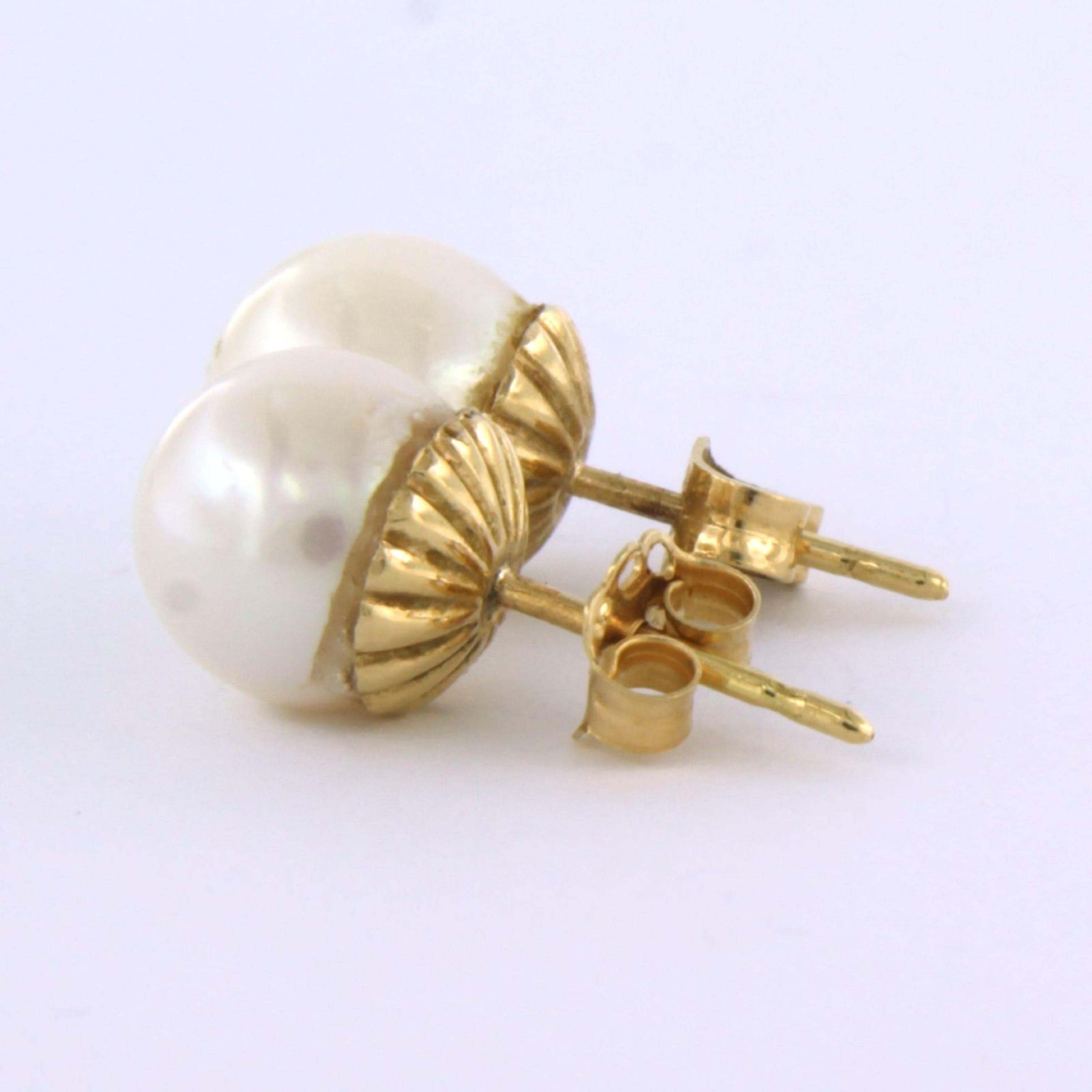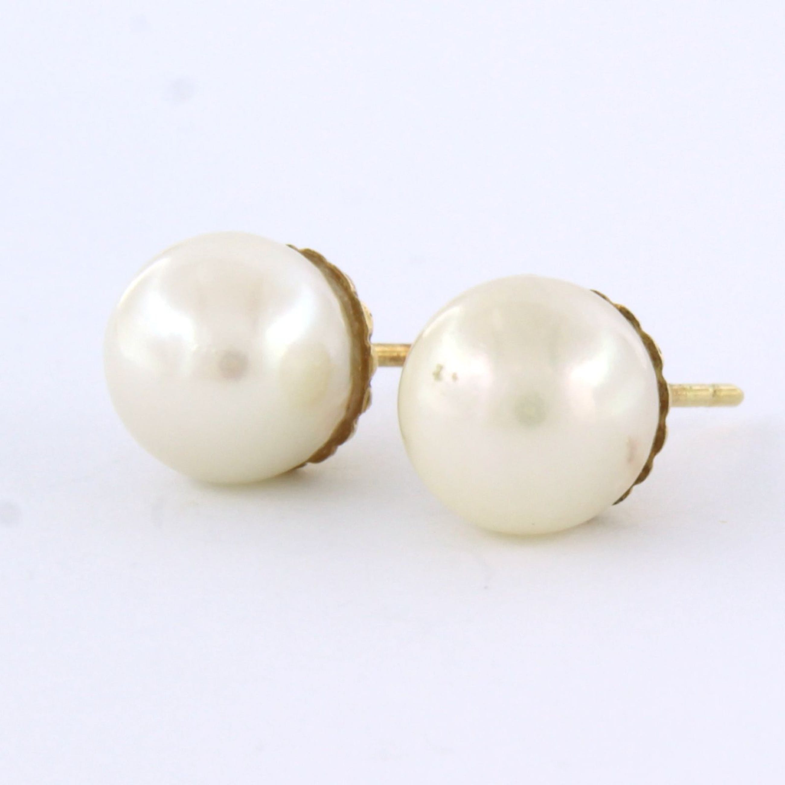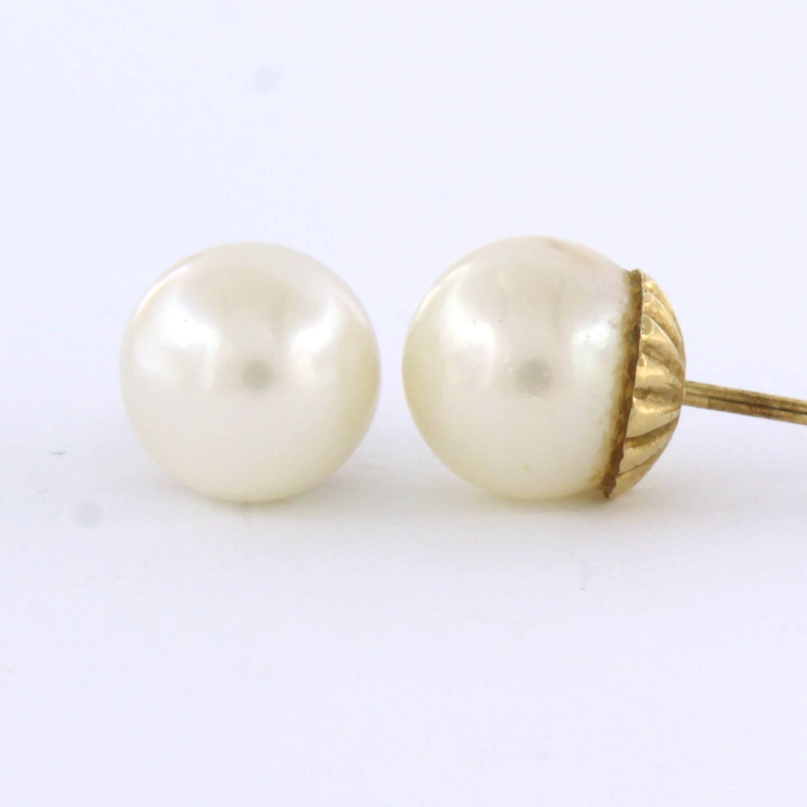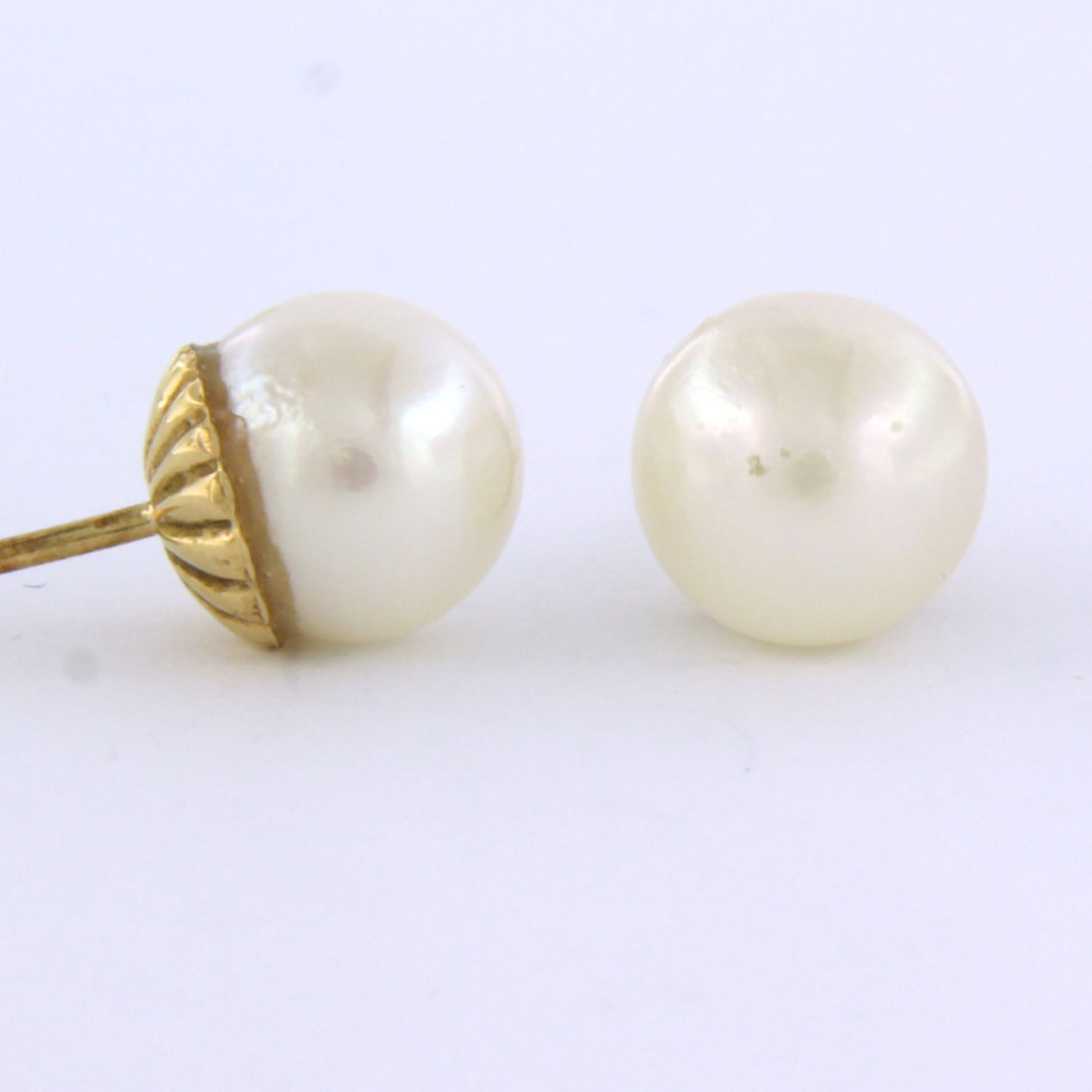 18k geel gouden oorknoppen bezet met parel - 8,0 mm breed