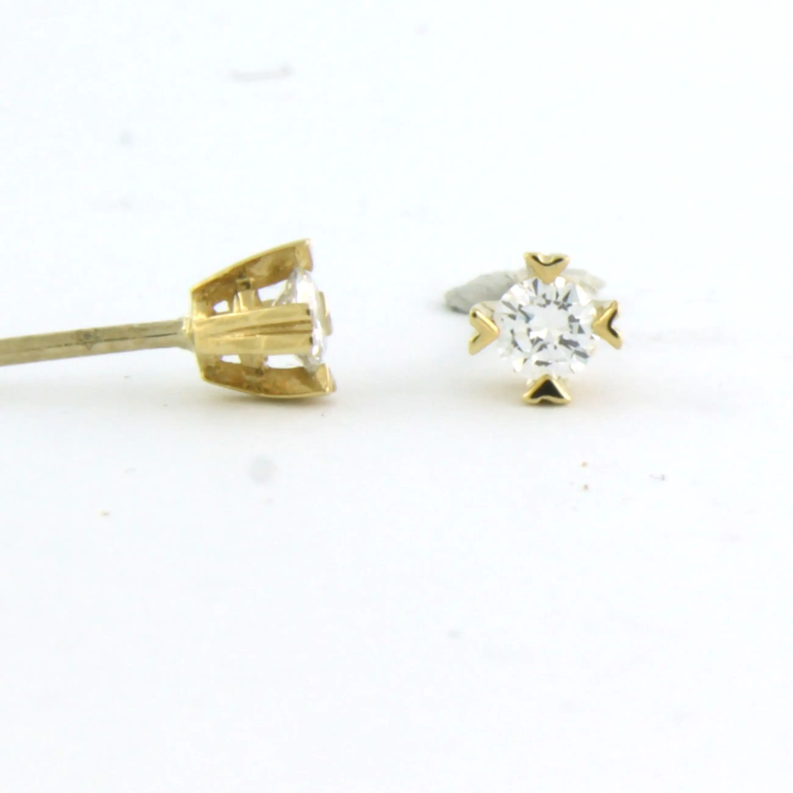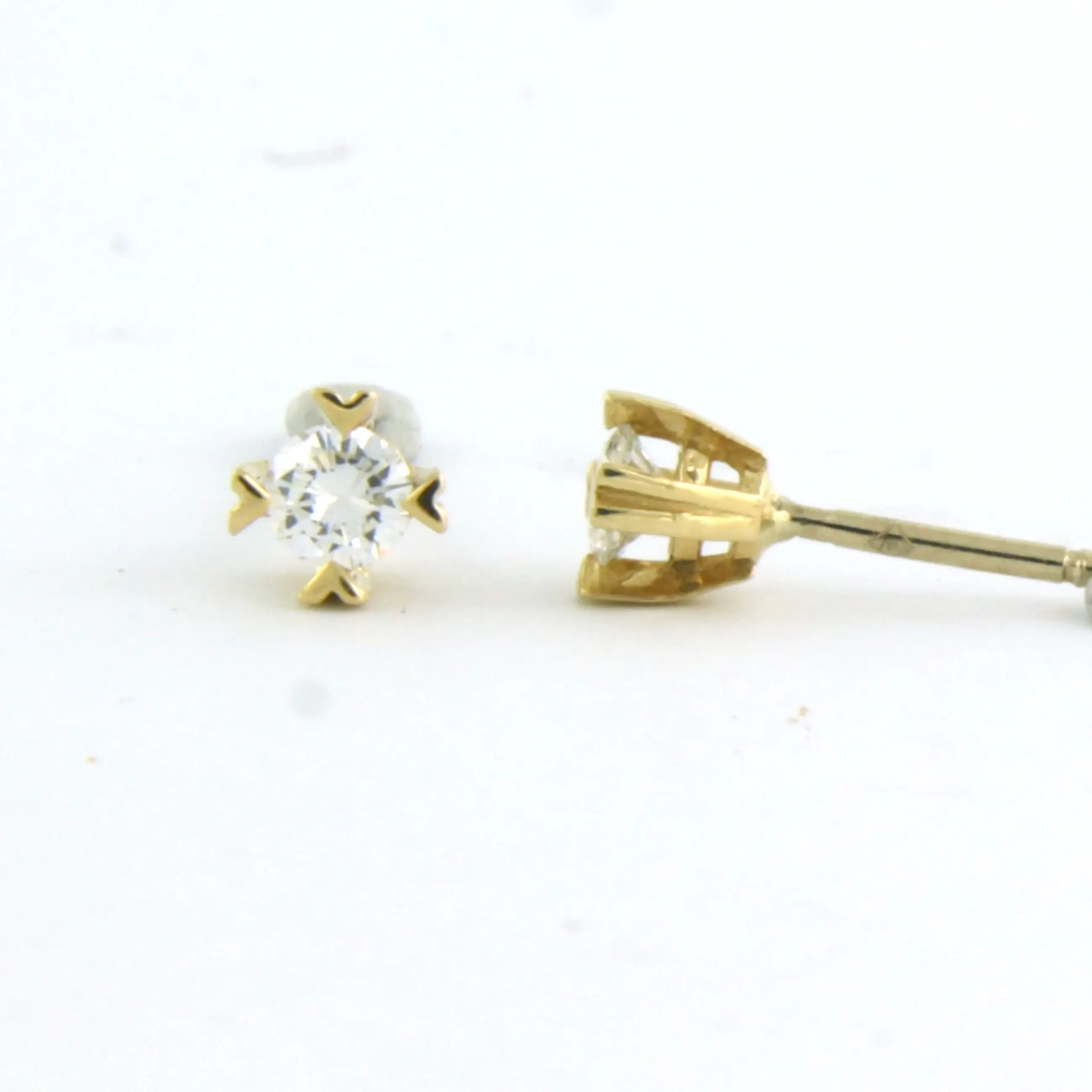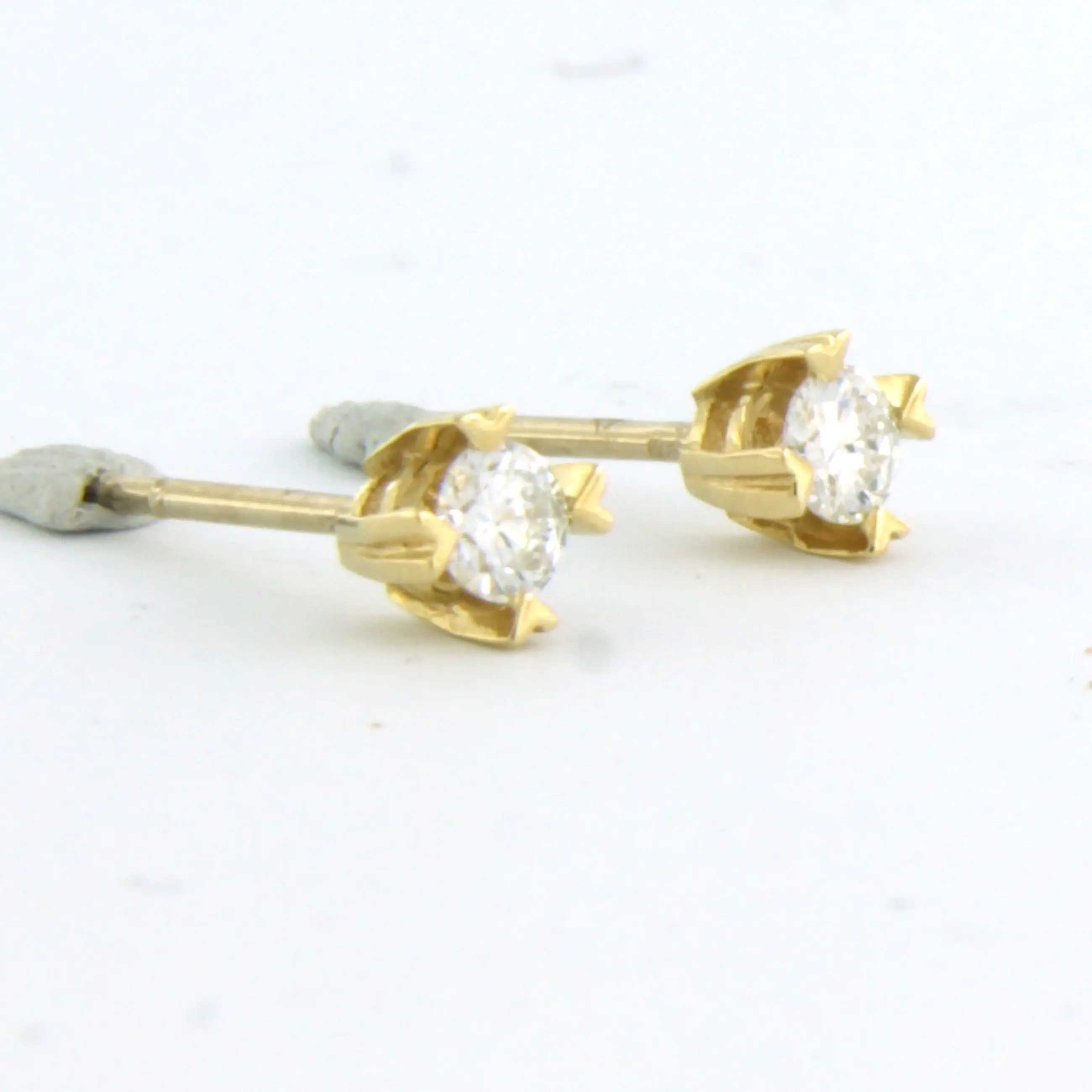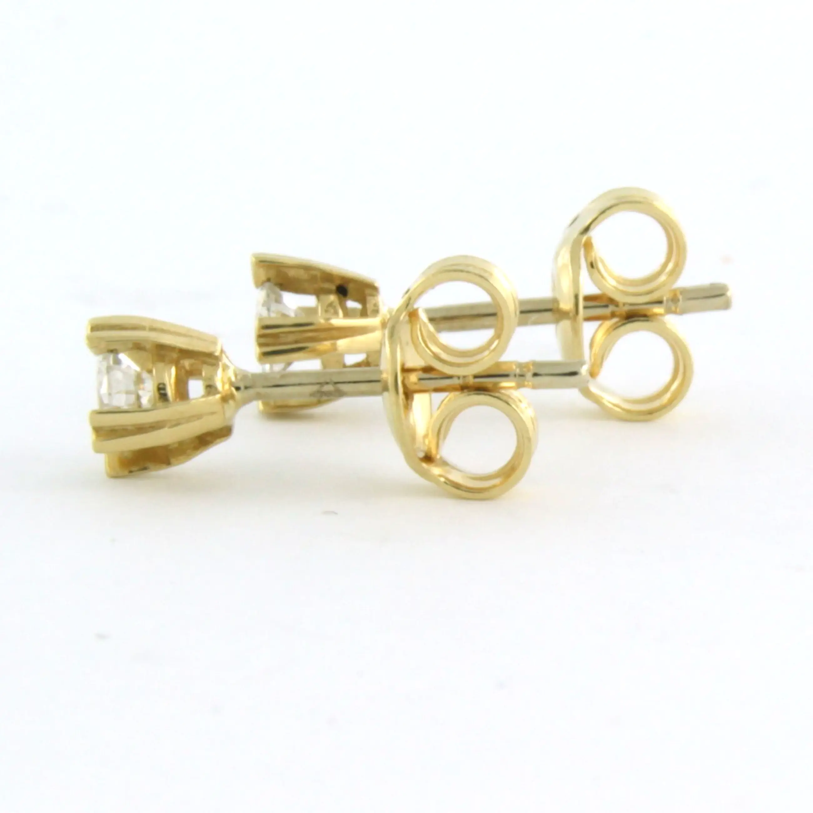 18k geel gouden solitair oorknoppen bezet met briljant geslepen diamant tot. 0,22ct - G/H - VS
