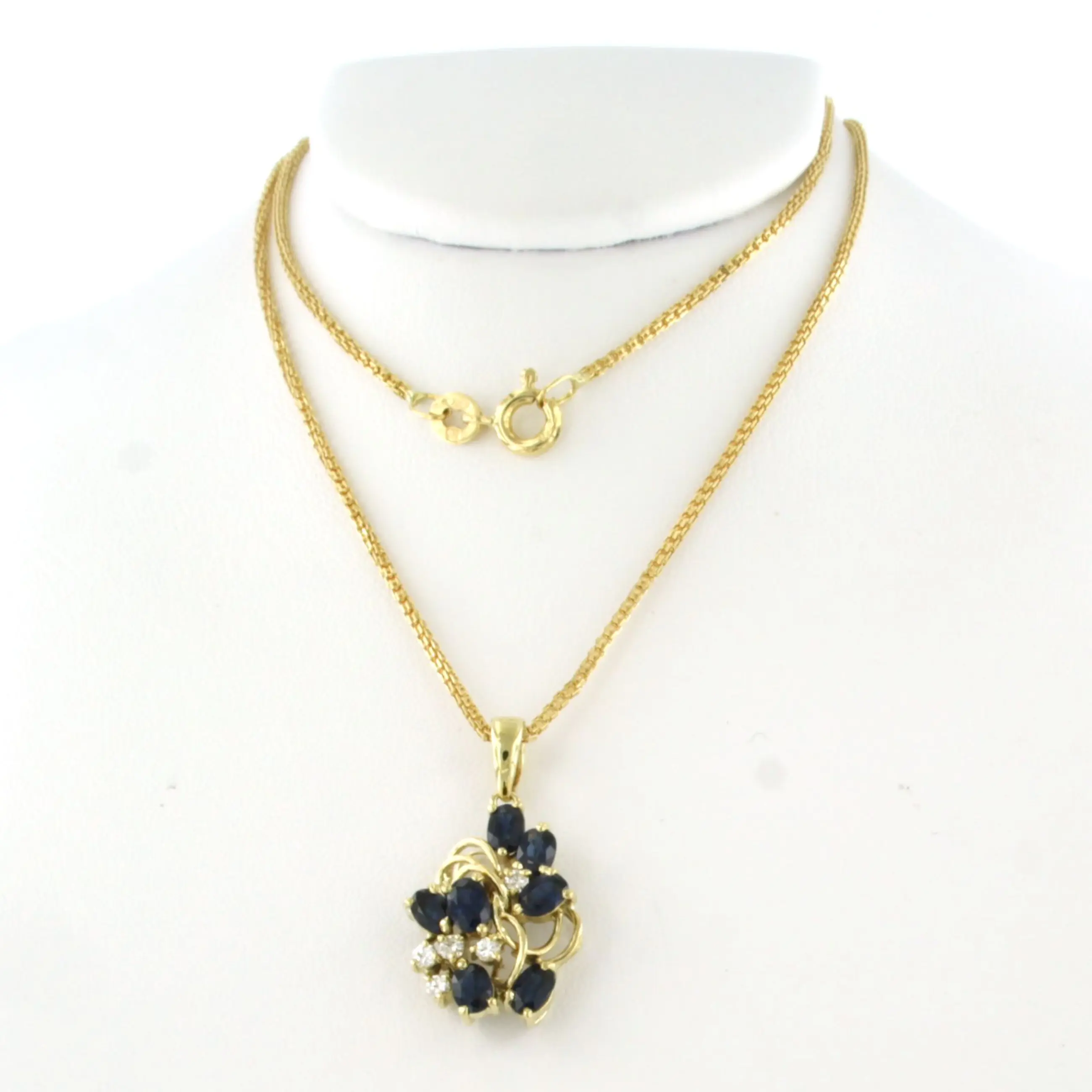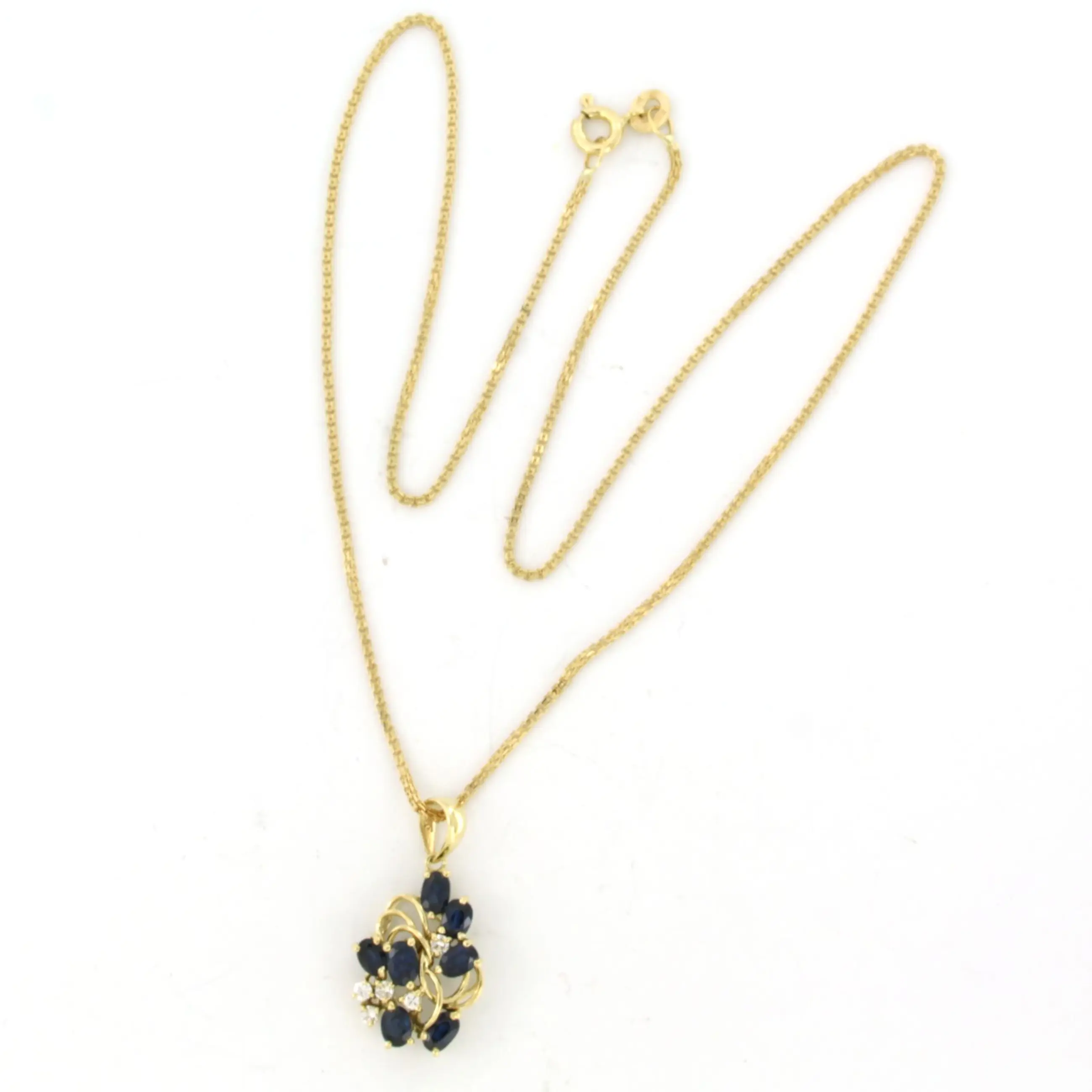 18k geel gouden collier met hanger bezet saffier tot. 1.53ct en briljant geslepen diamant tot. 0,12ct - F/G - VS/SI - 40 cm lang