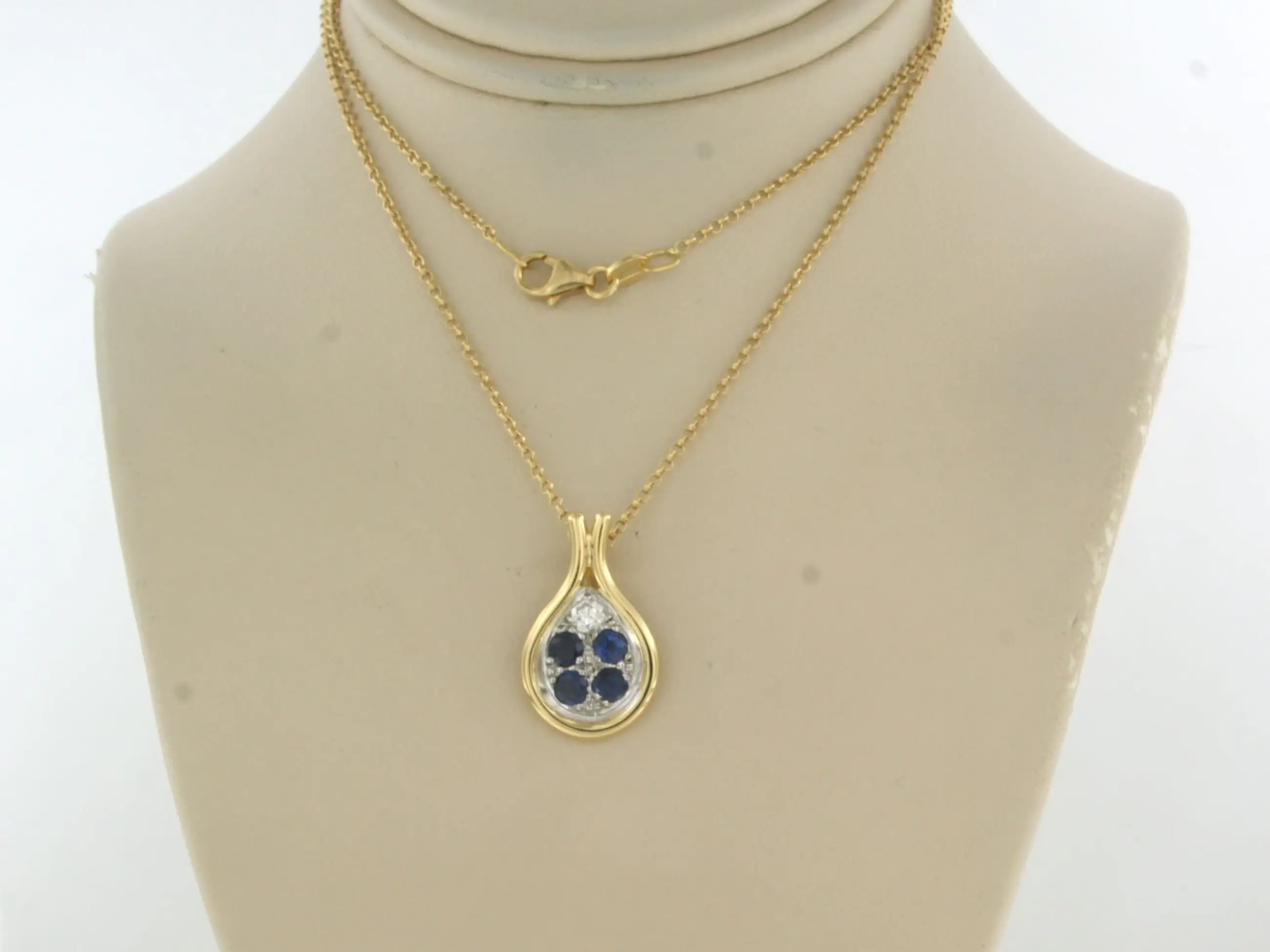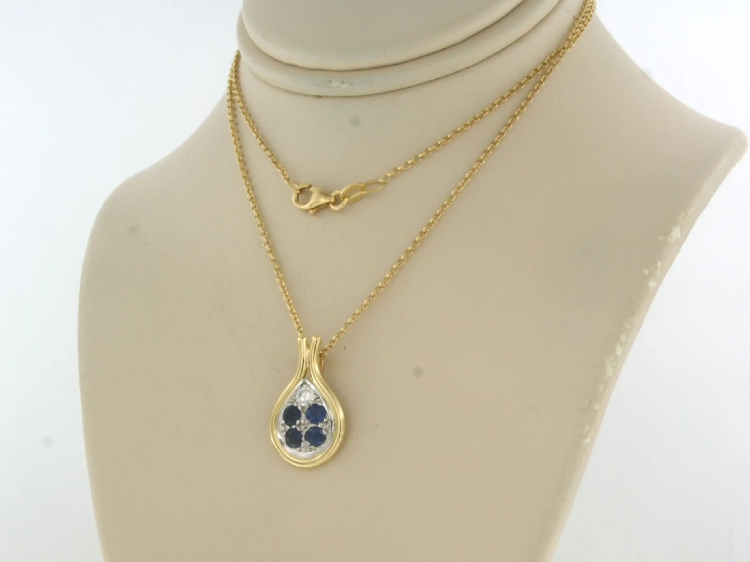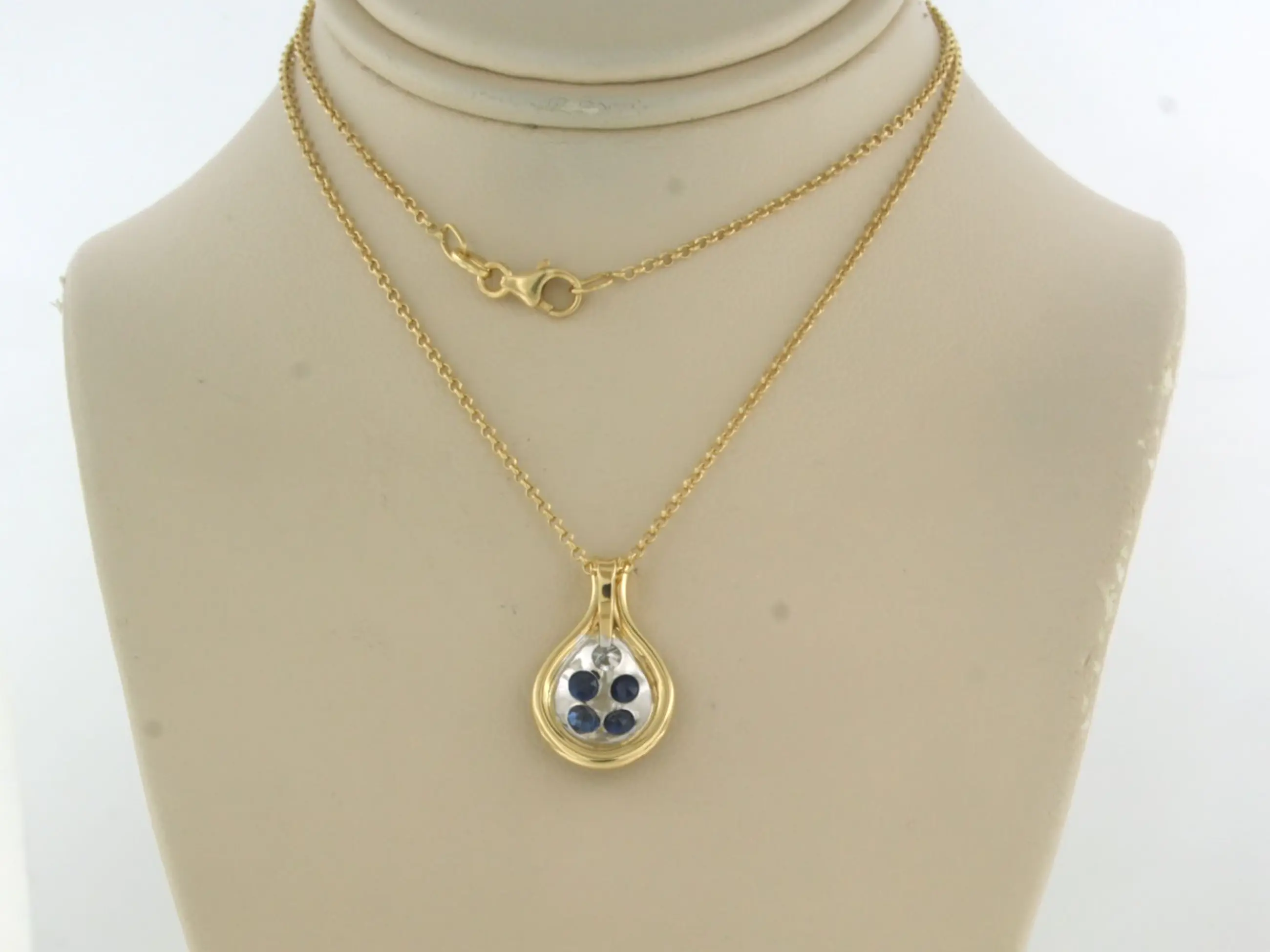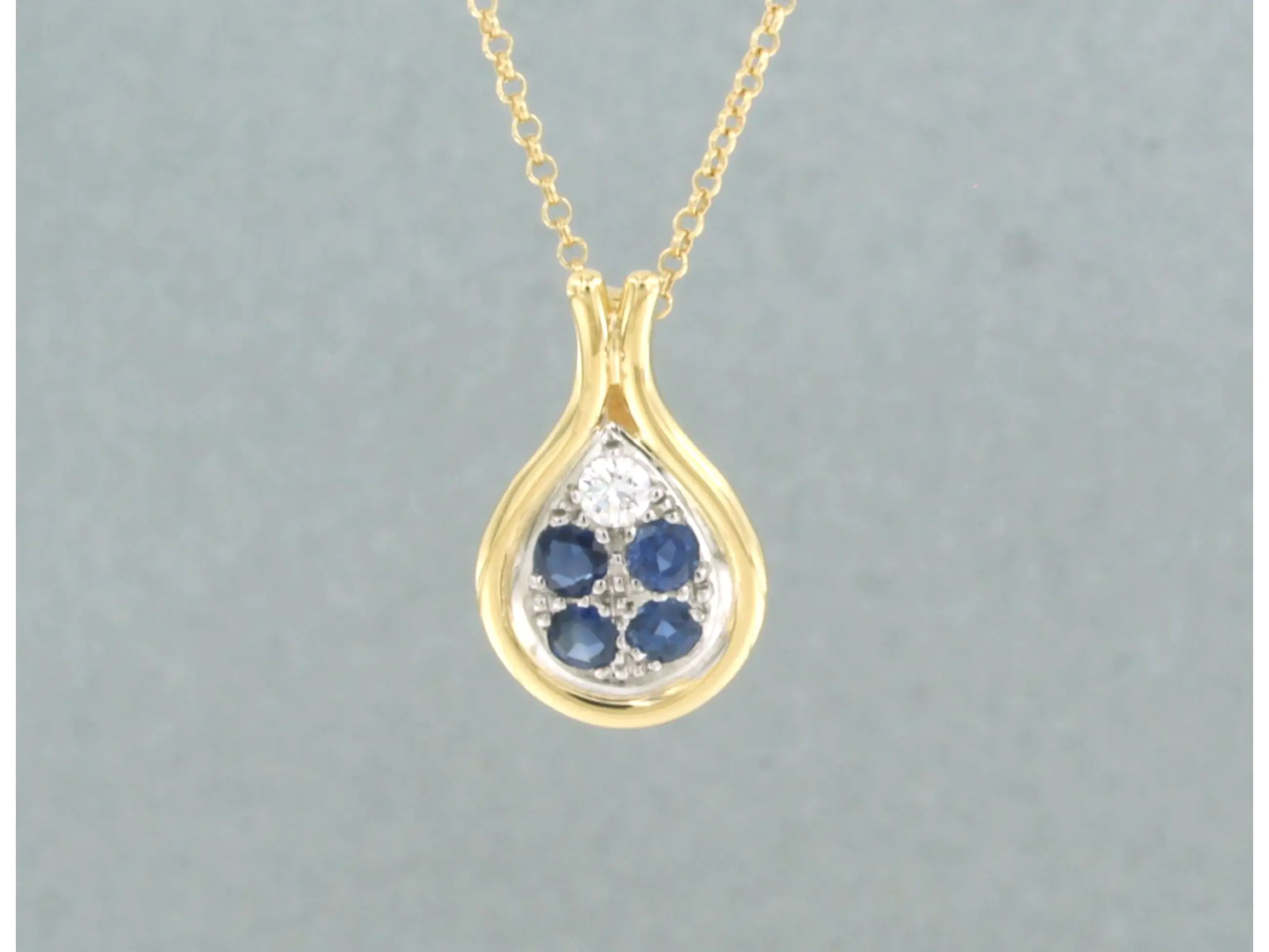 18k geel gouden collier met een bicolor gouden hanger met saffier en briljant geslepen diamant tot 0.12ct - F/G - VS/SI - 42 cm lang