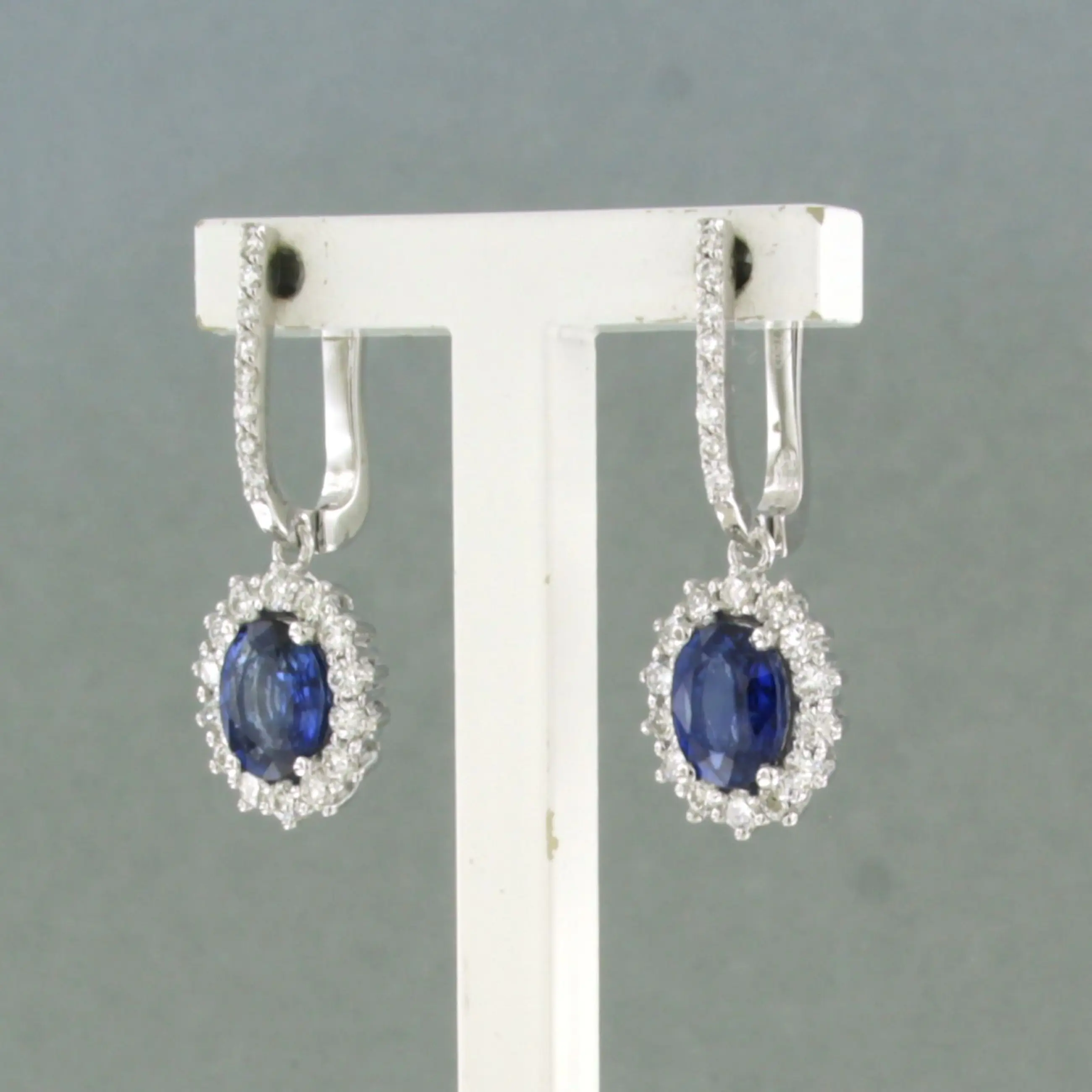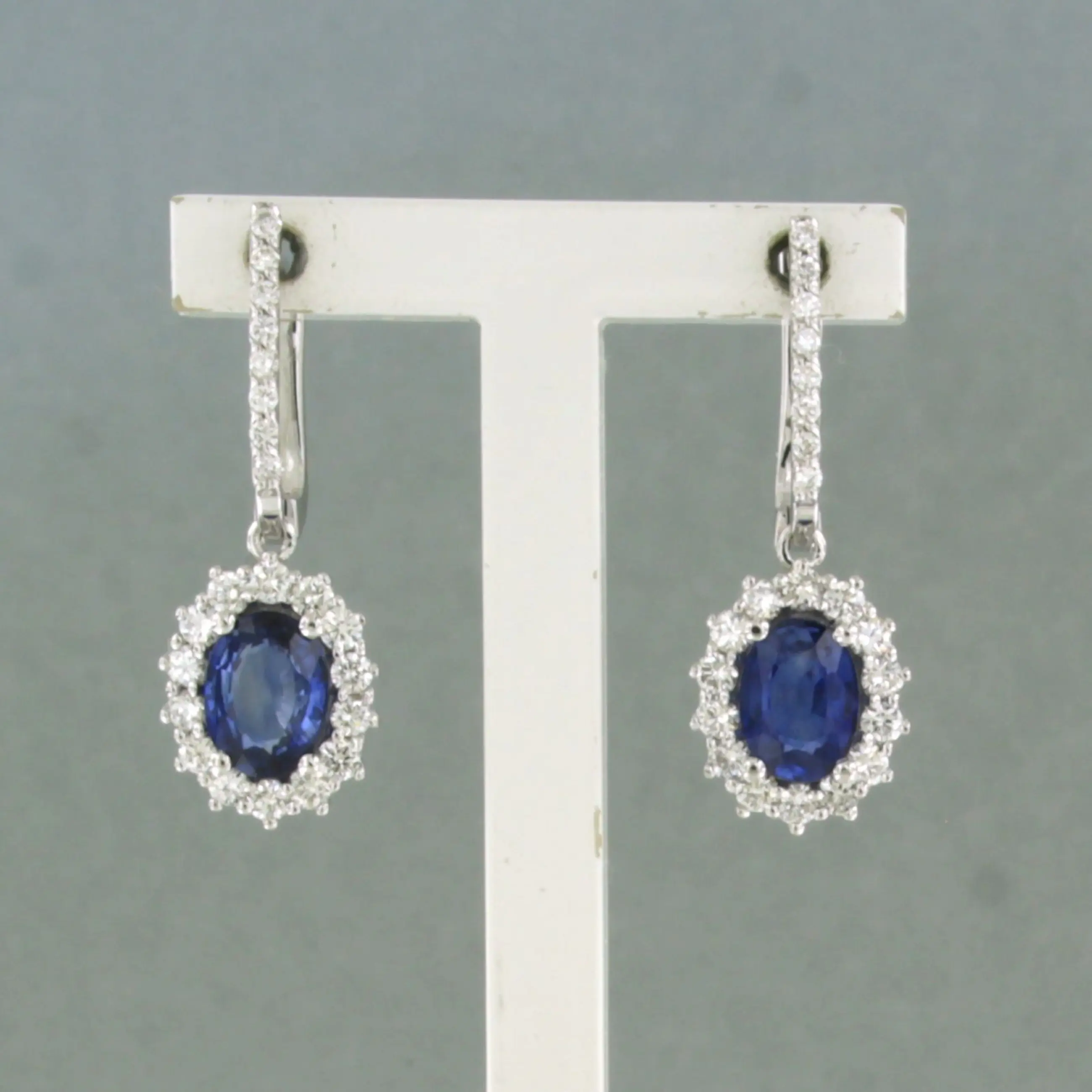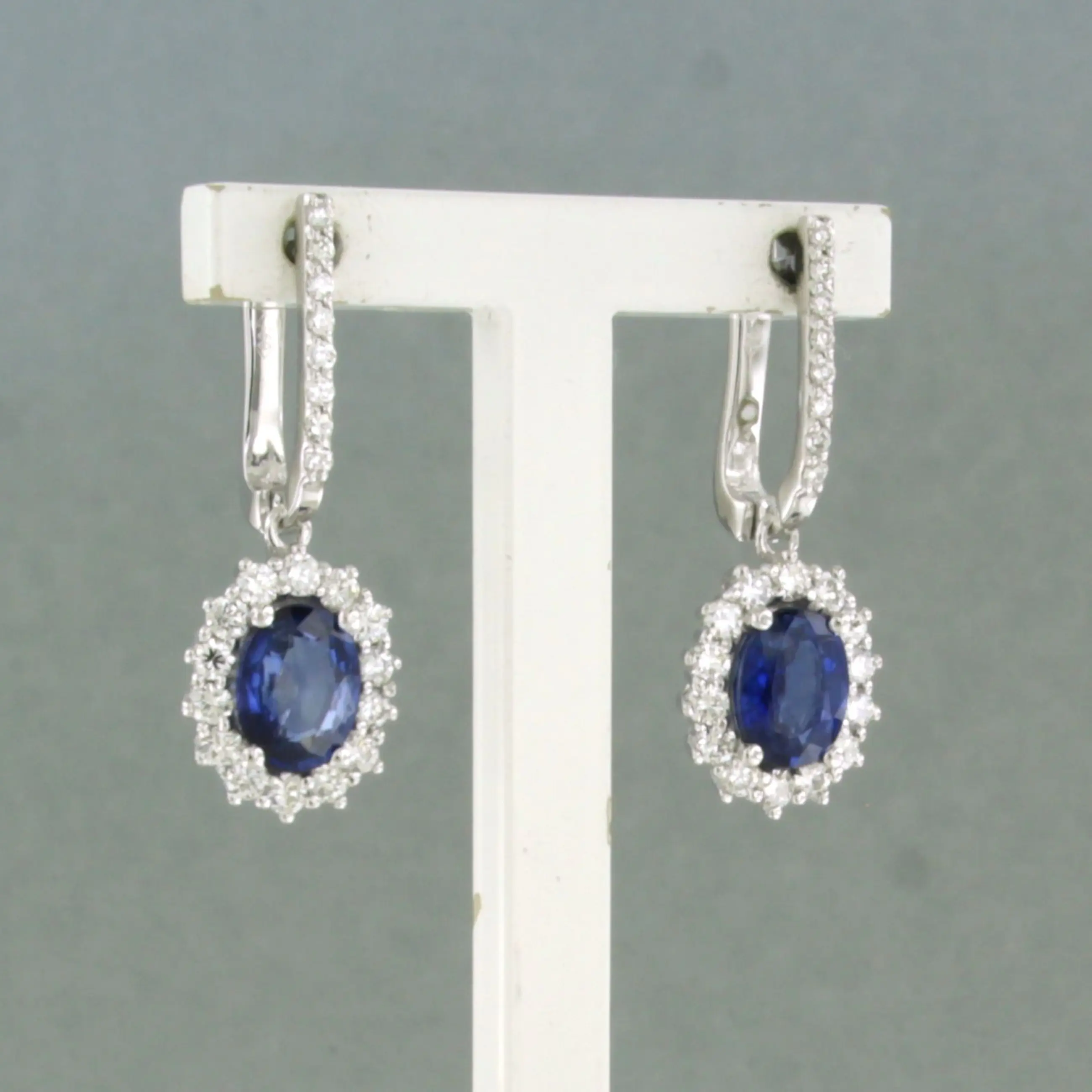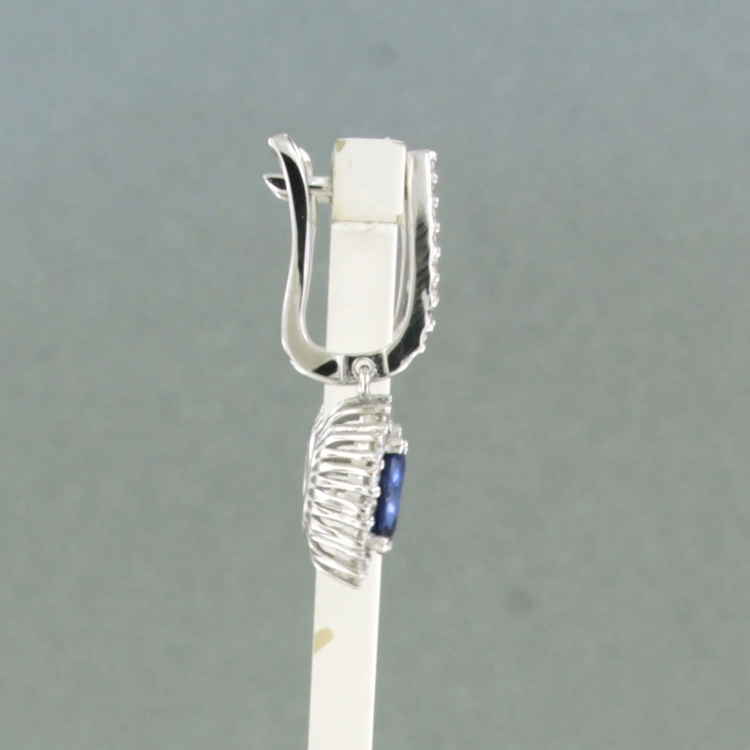 18k wit gouden oorhangers bezet met saffier tot. 1.70ct en briljant geslepen diamanten tot. circa 0.72 ct - F/G - VS/SI