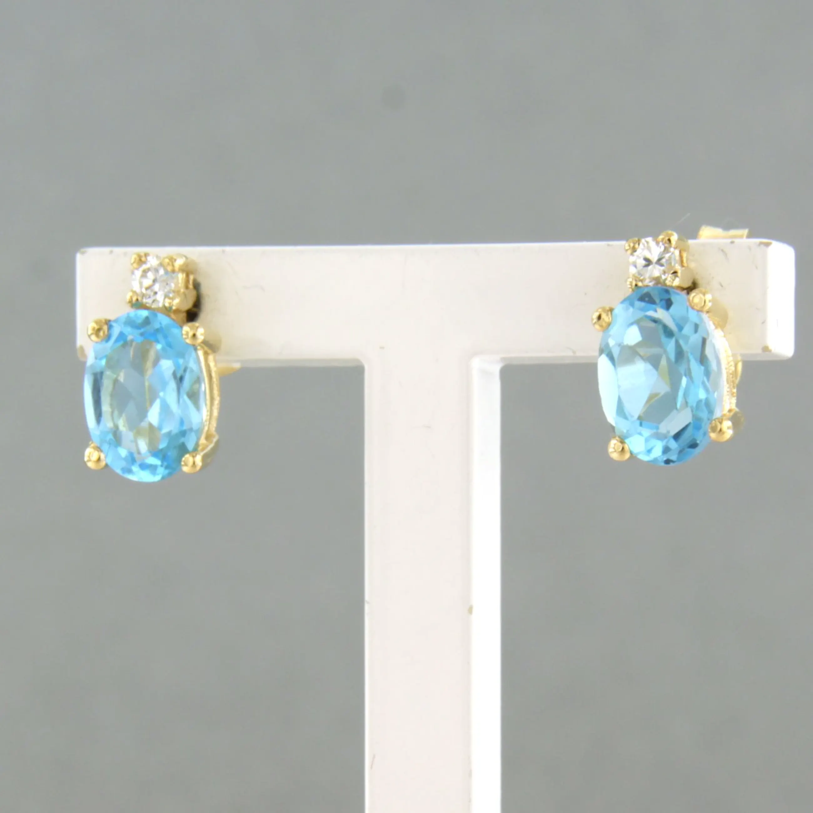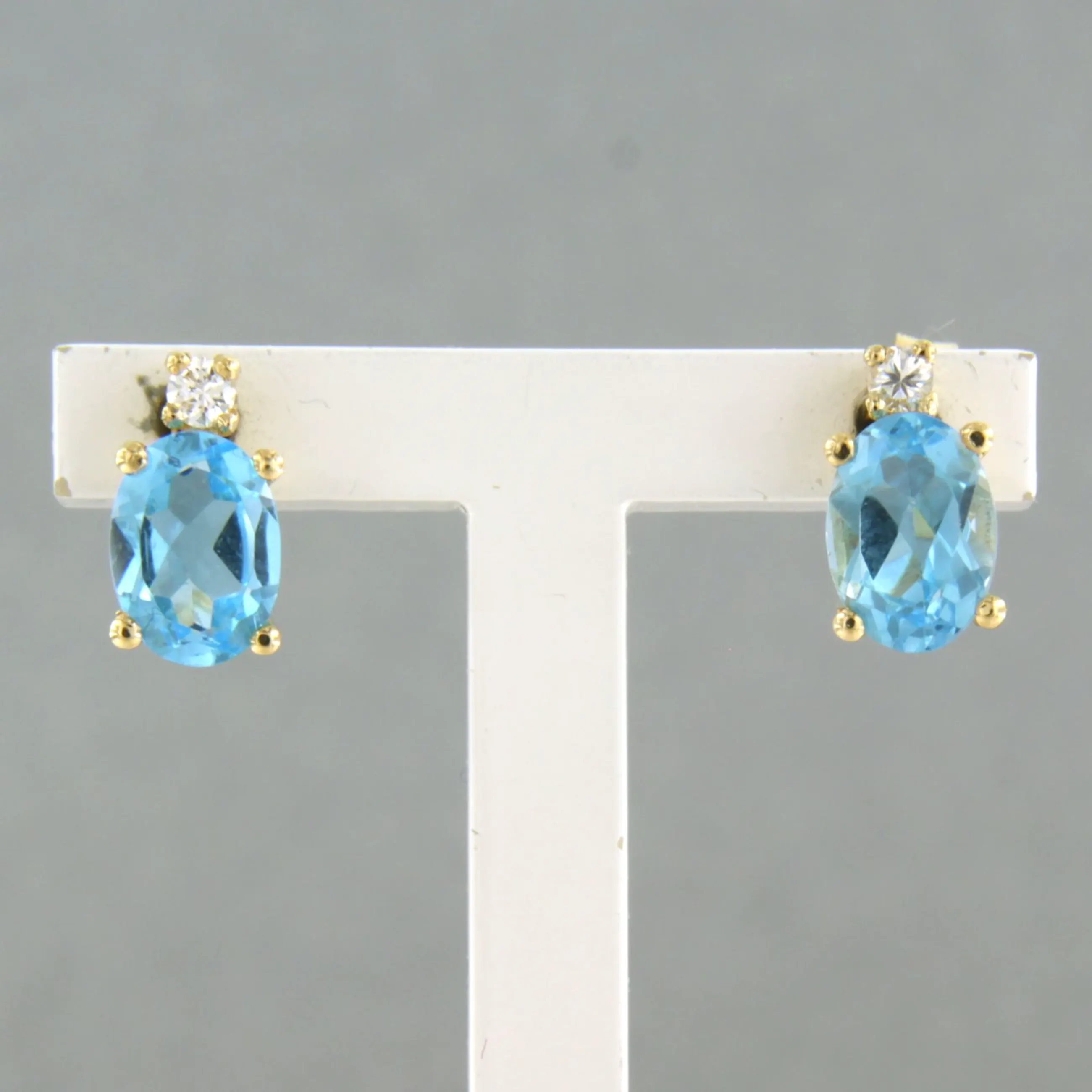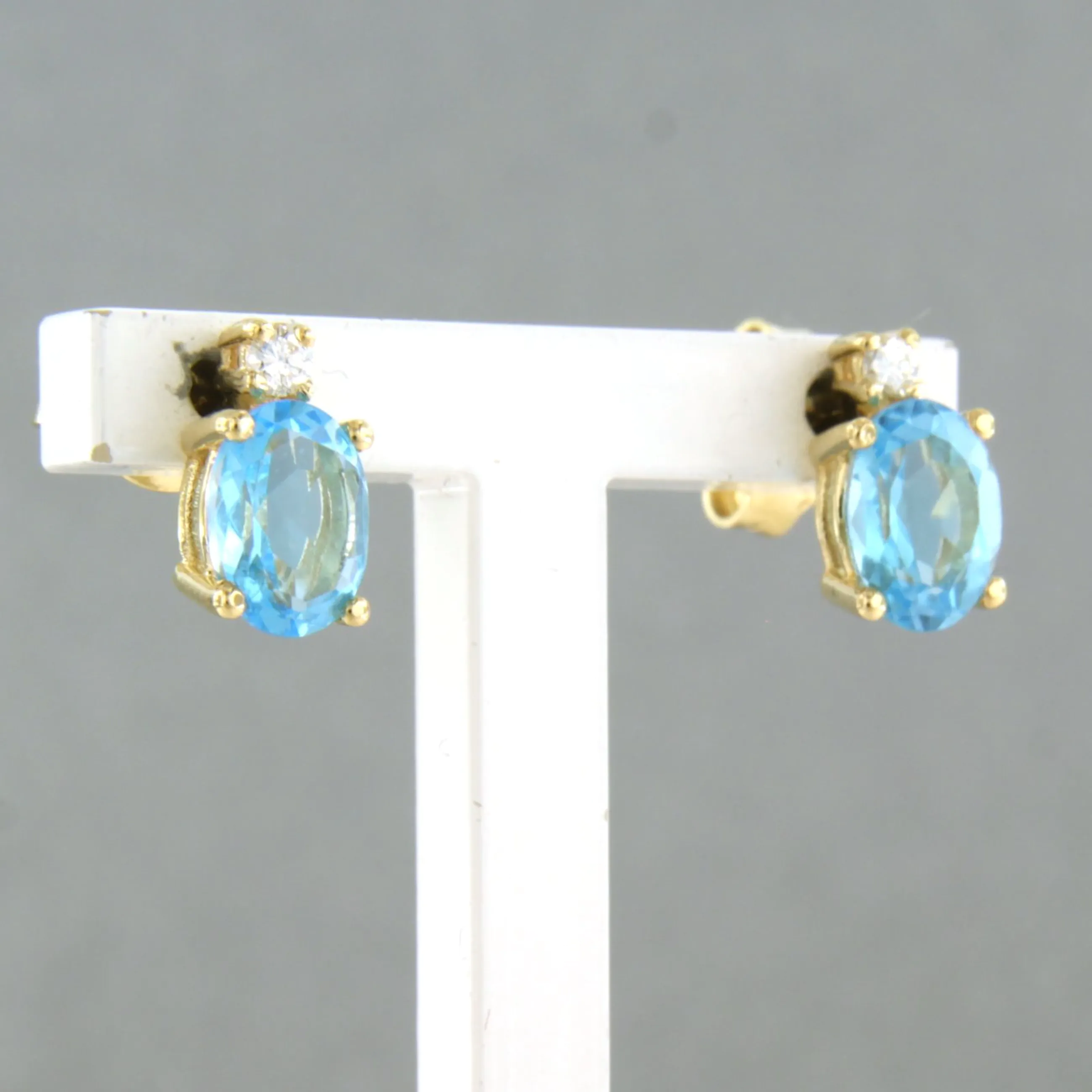 18k geel gouden oorknoppen bezet met topaas tot. 1,90ct en briljant geslepen diamant tot. 0,07ct - F/G - VS/SI