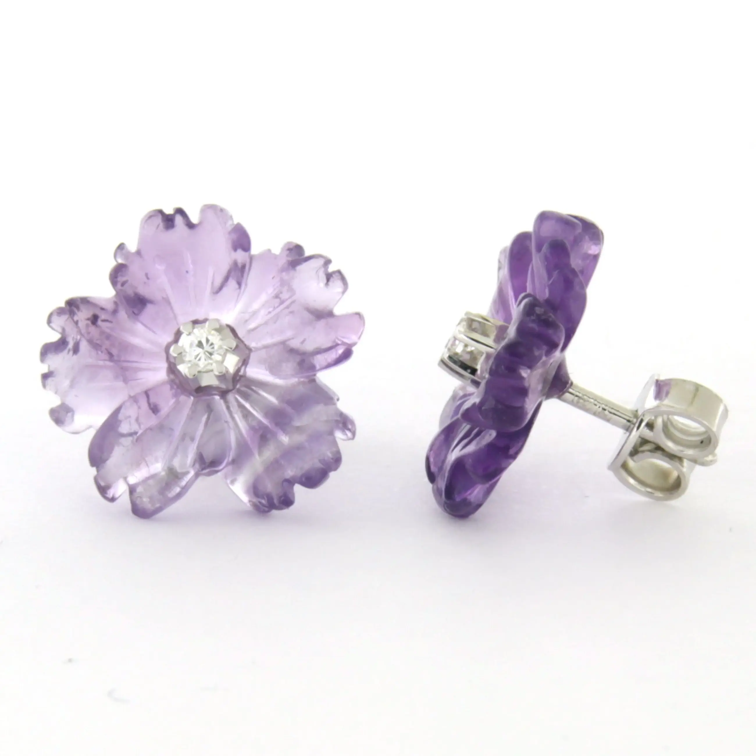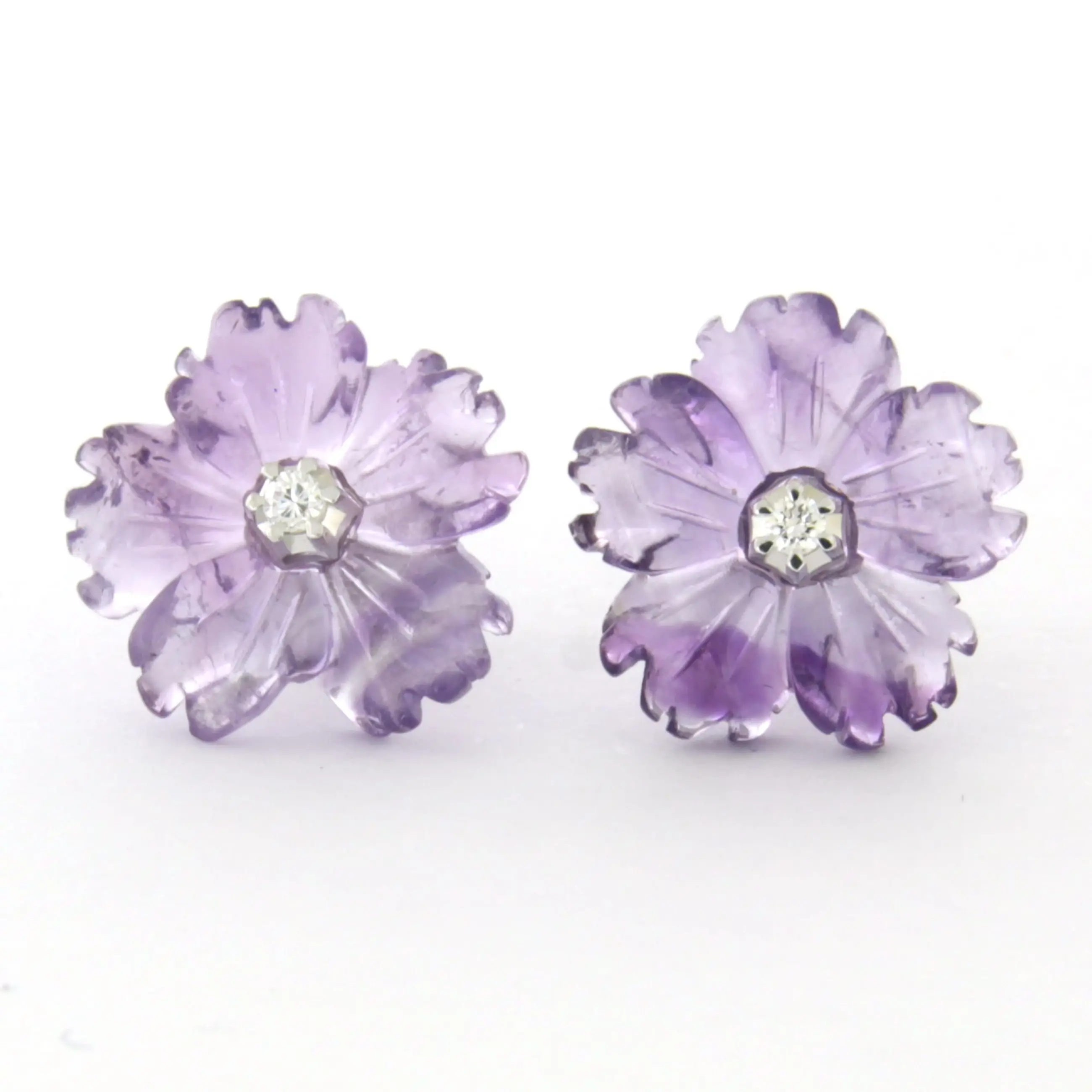 18k wit gouden oorknoppen bezet met bloemvorm geslepen amethist en briljant geslepen diamant tot. 0.05ct – F/G – VS/SI