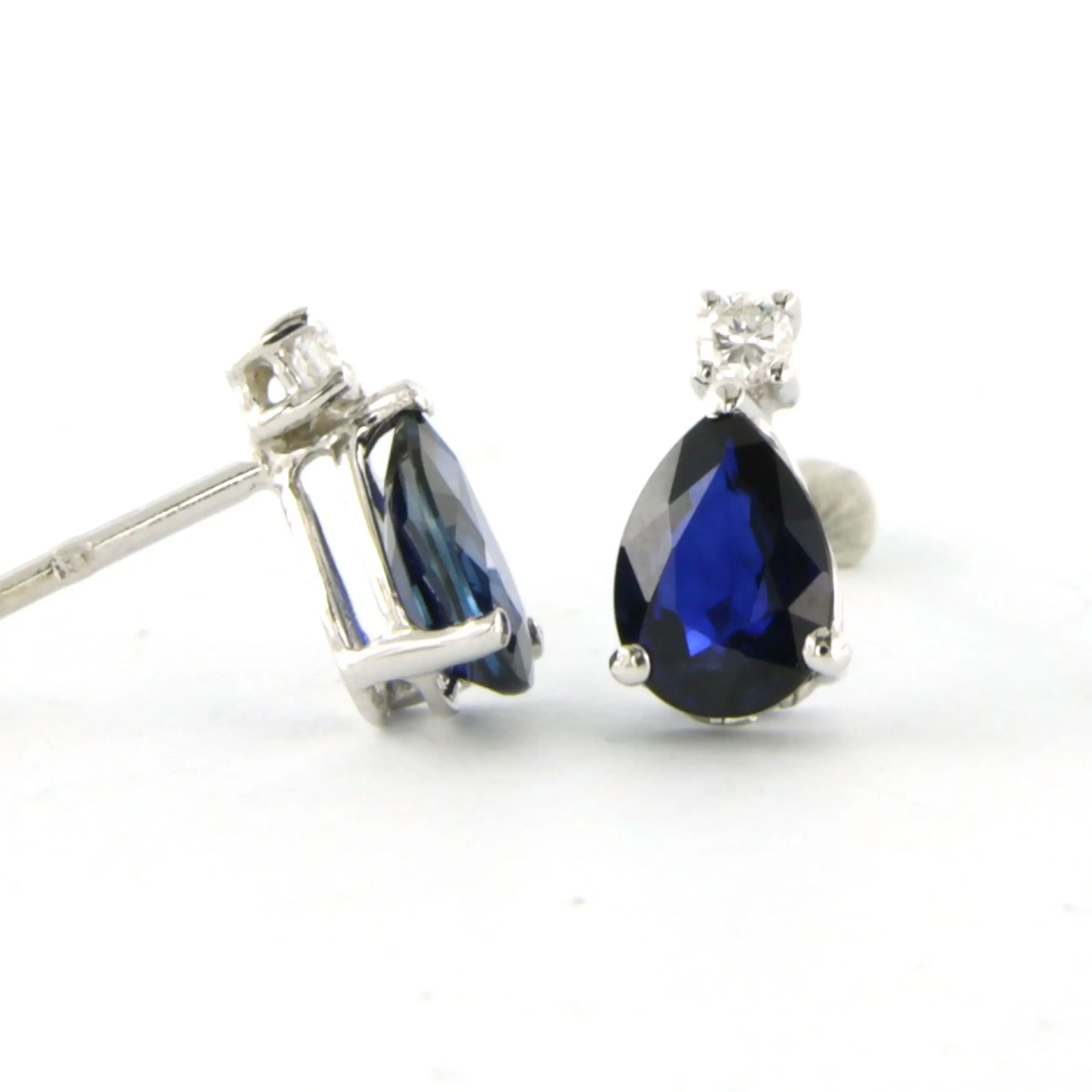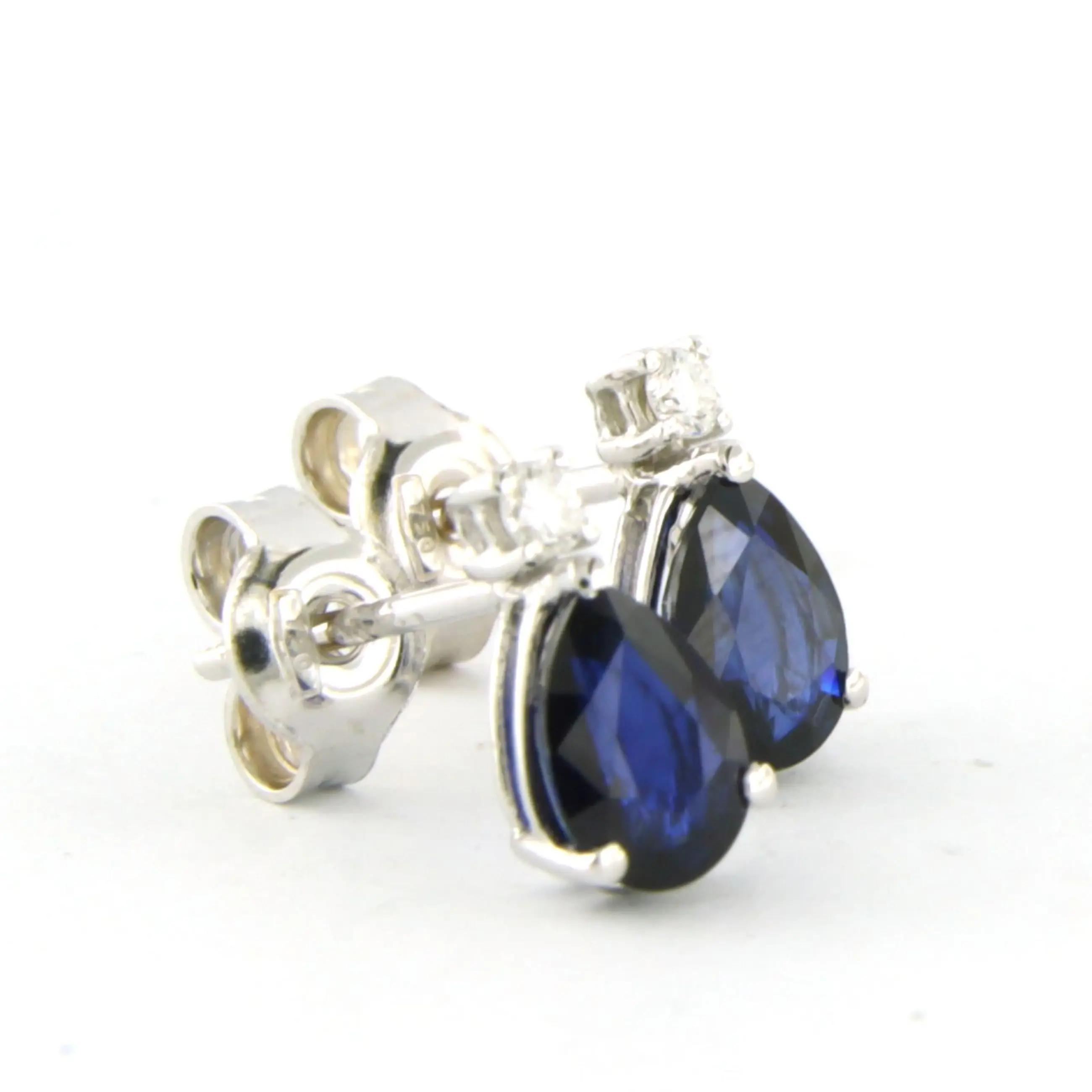 18k wit gouden oorknoppen bezet met saffier totaal circa 1.40ct en briljant geslepen diamant tot.0.08ct - F/G – VS/SI