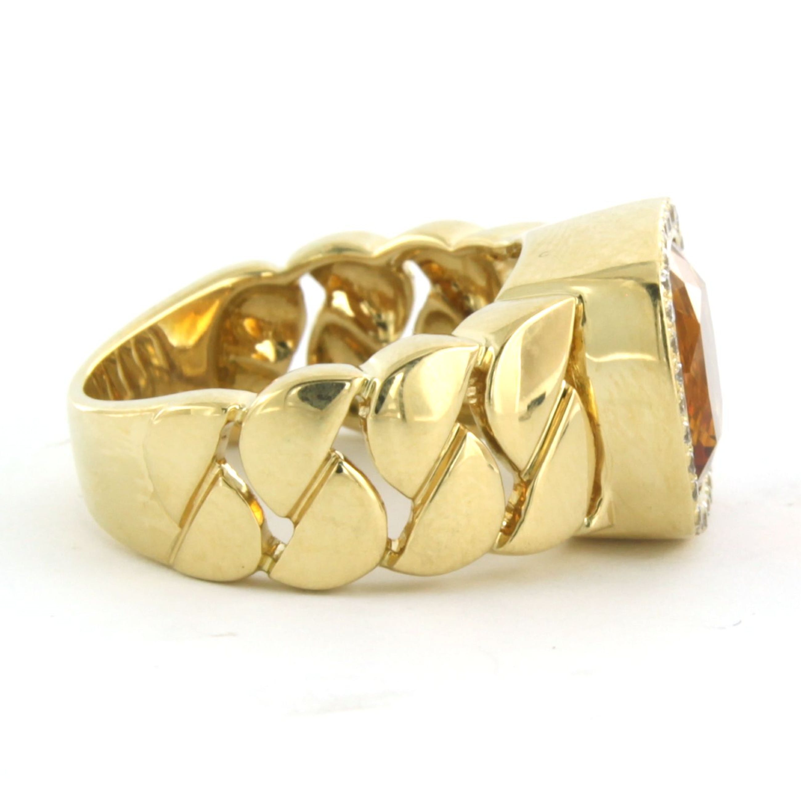 18k gouden ring bezet met citrien en aan entourage briljant geslepen diamant - Verkocht