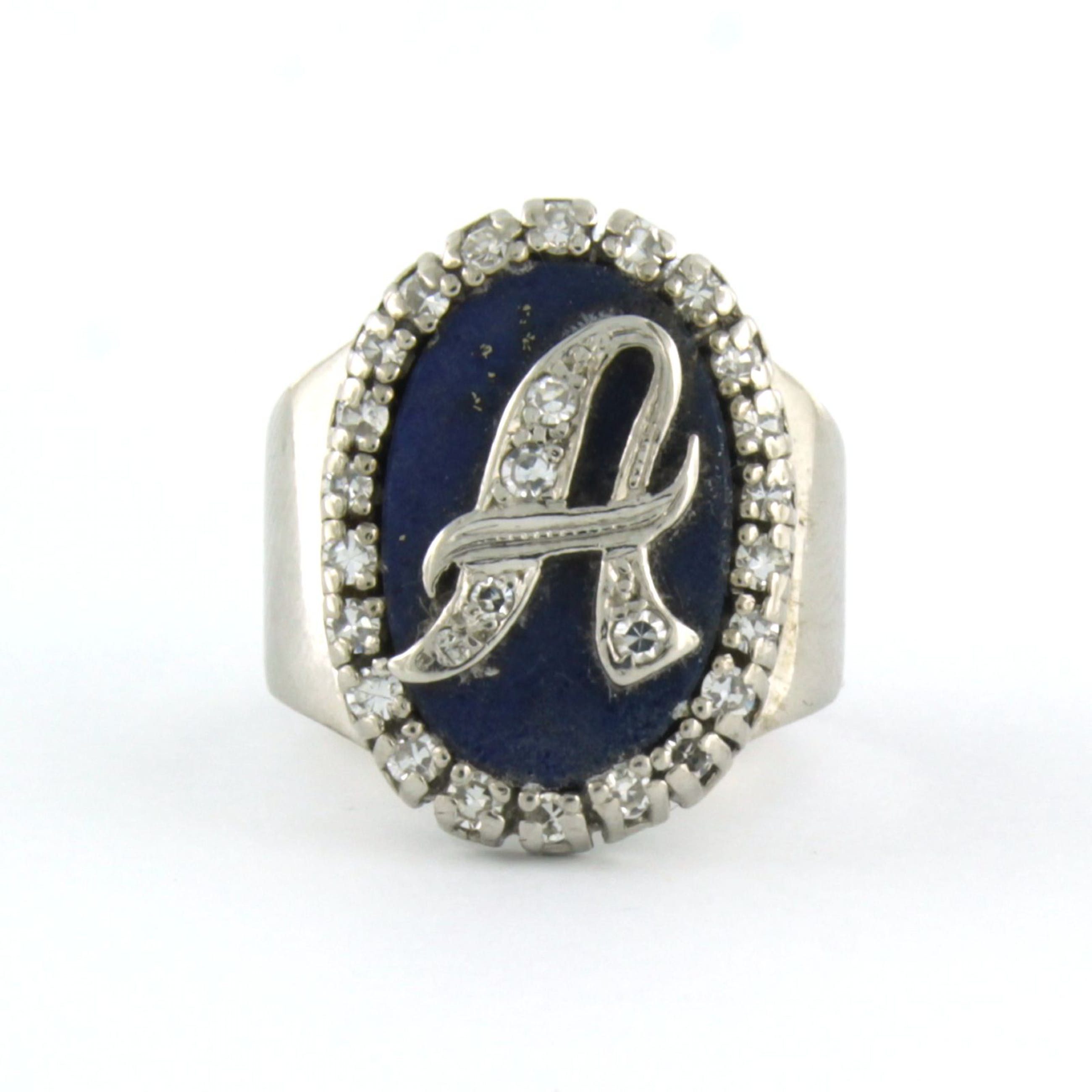 18k gouden ring bezet met lapis lazuli en 8 kant geslepen diamant tot. 0.15ct - F/G - VS/SI - ringmaat 15.5(48)