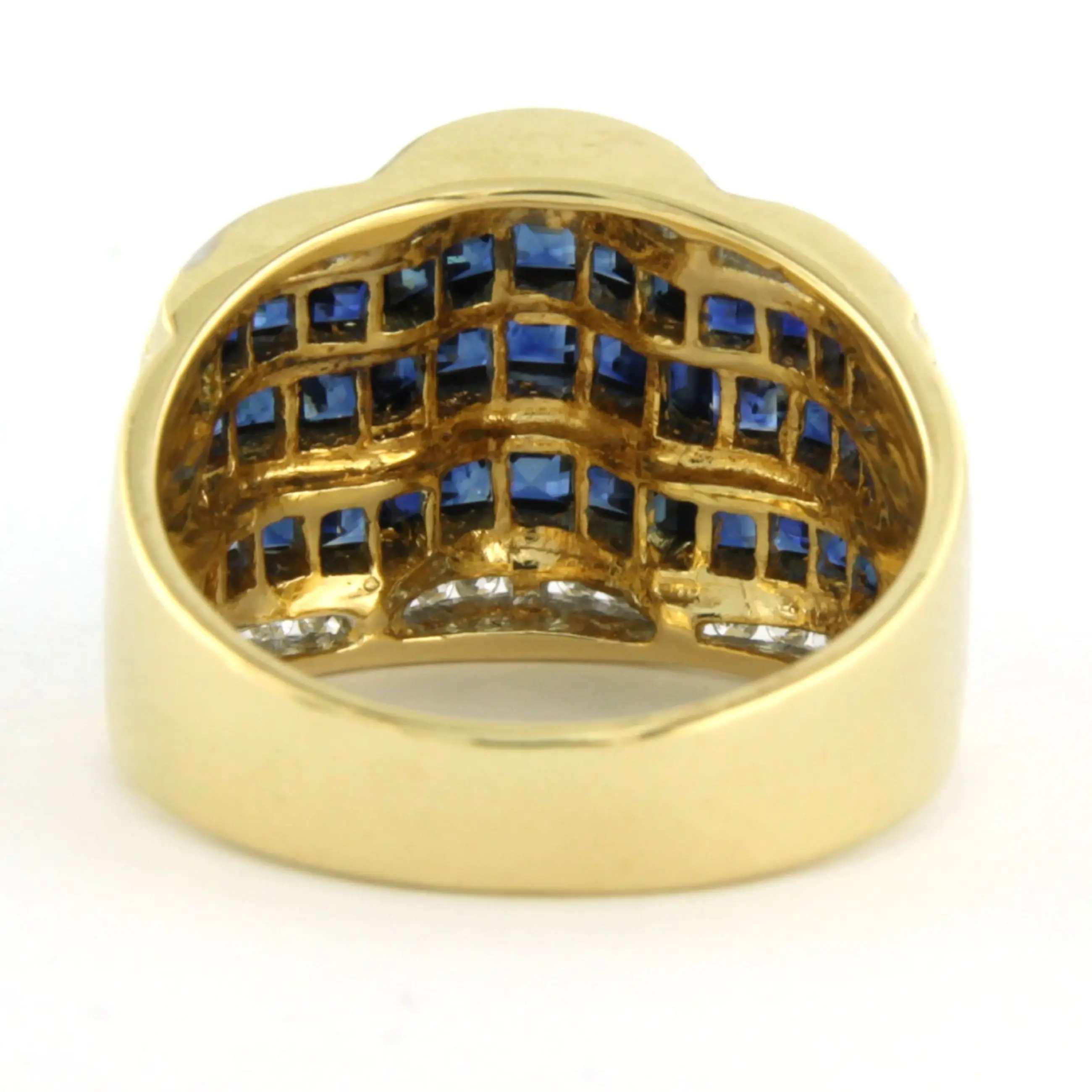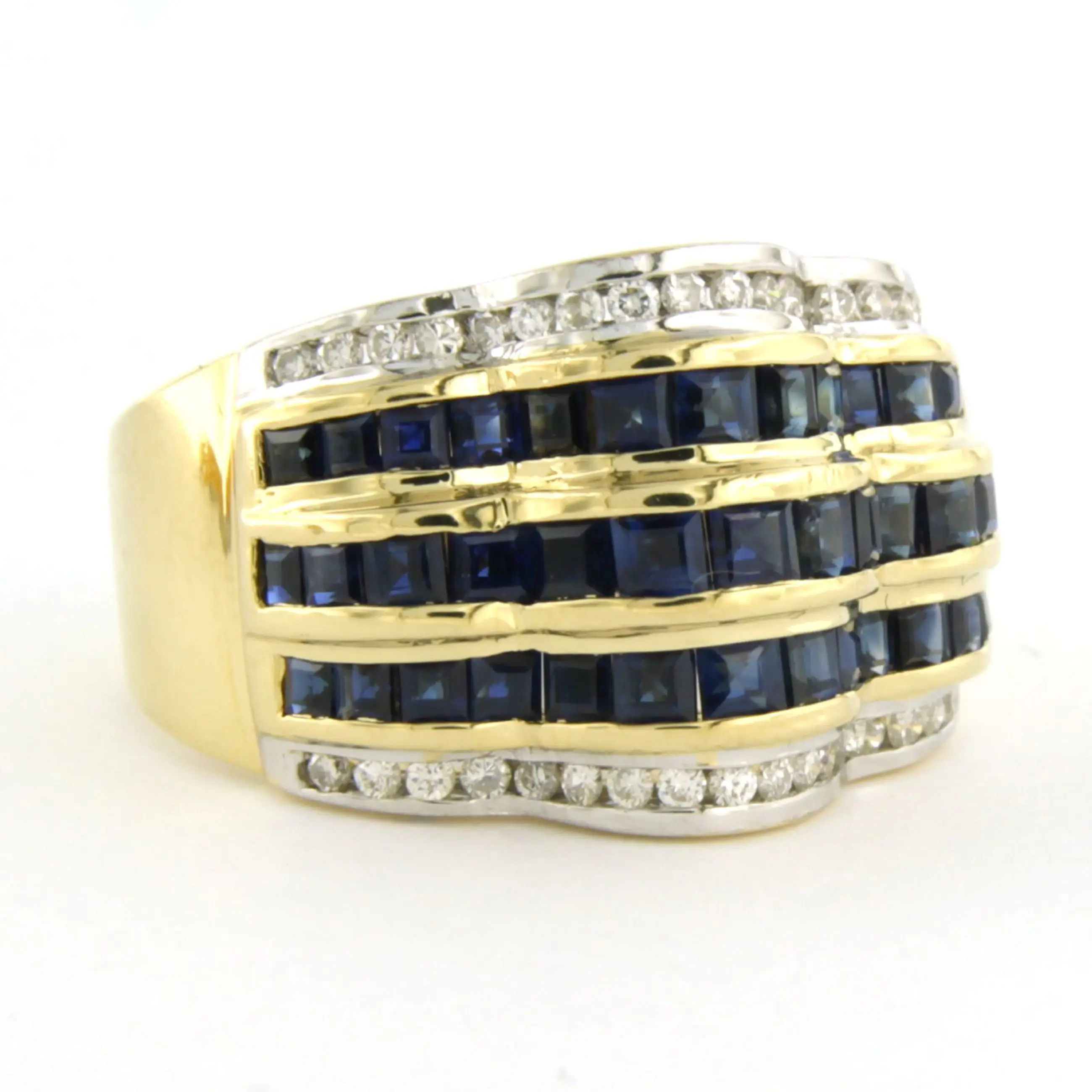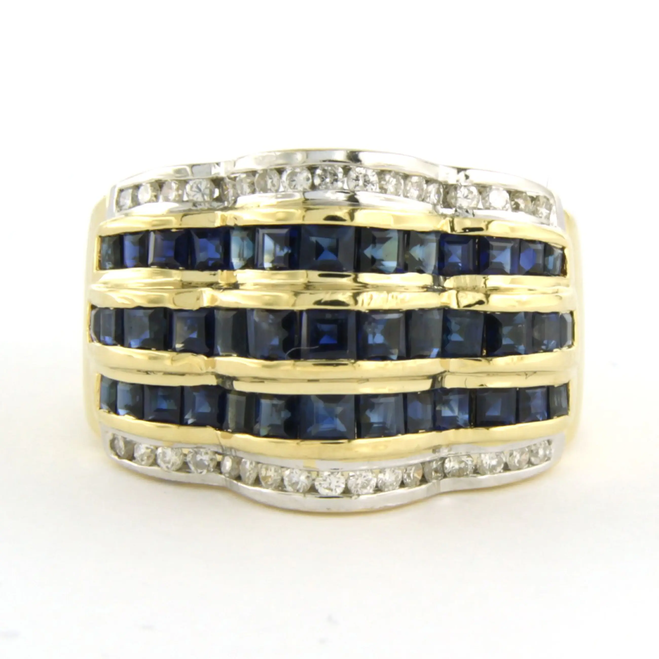 18k bicolour gouden ring bezet met saffier en briljant geslepen diamant tot. 0.20ct - F/G - VS/SI - ringmaat 17,25(54)