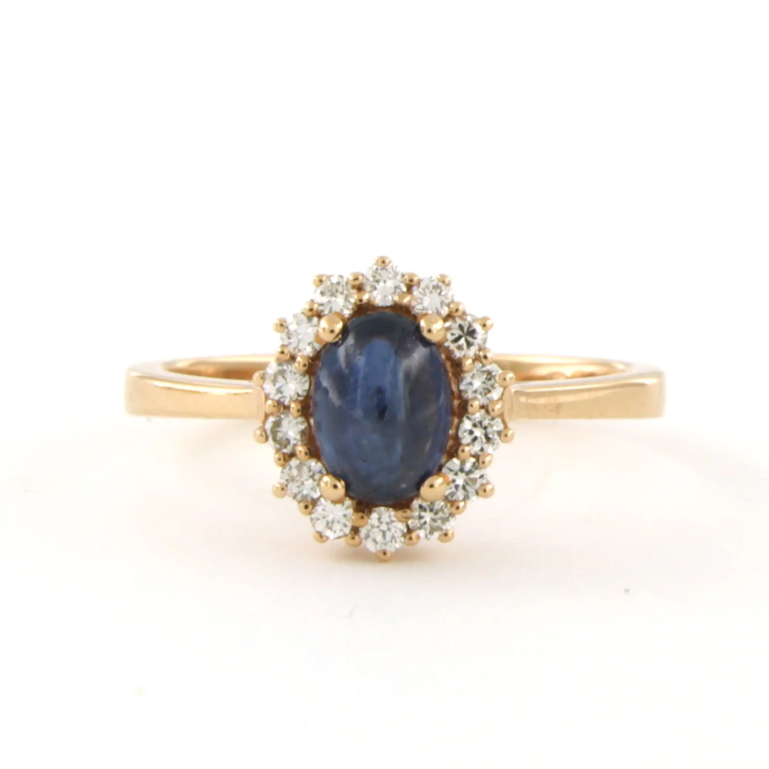 18k gouden ring met saffier en briljant geslepen diamant tot. 0.24ct