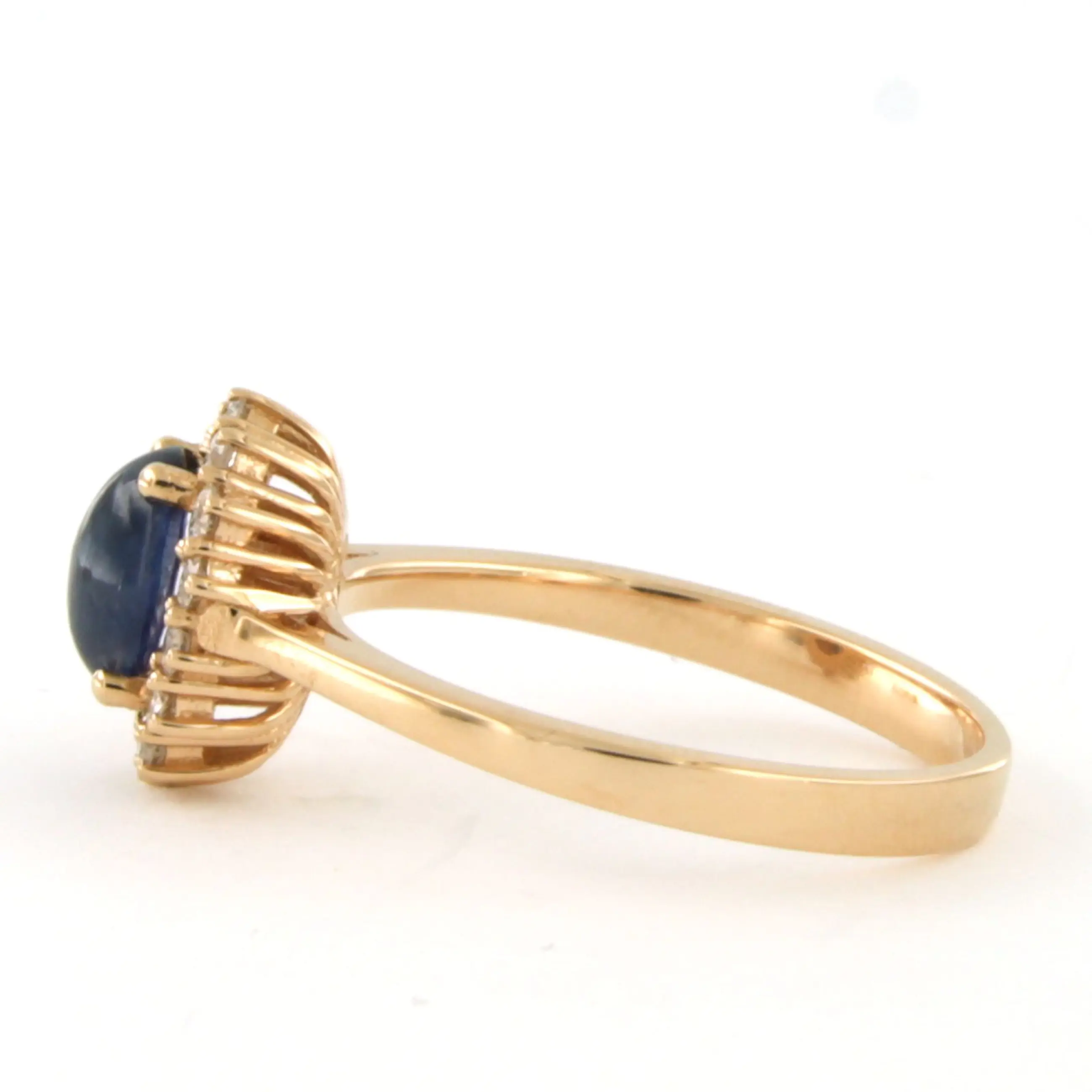 18k rosé gouden ring bezet met centraal een saffier tot. 1.04ct en erom heen briljant geslepen diamant tot. 0.24ct - F/G - VS/SI - ringmaat 17.5(55)