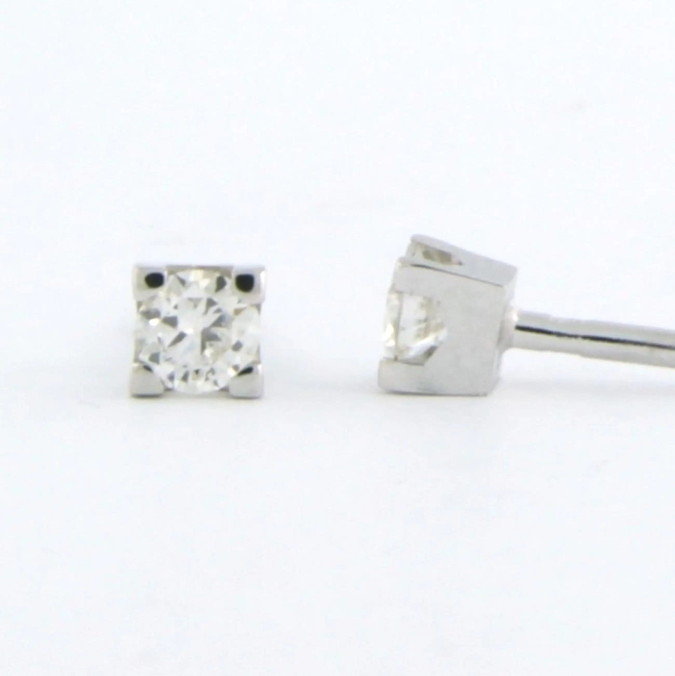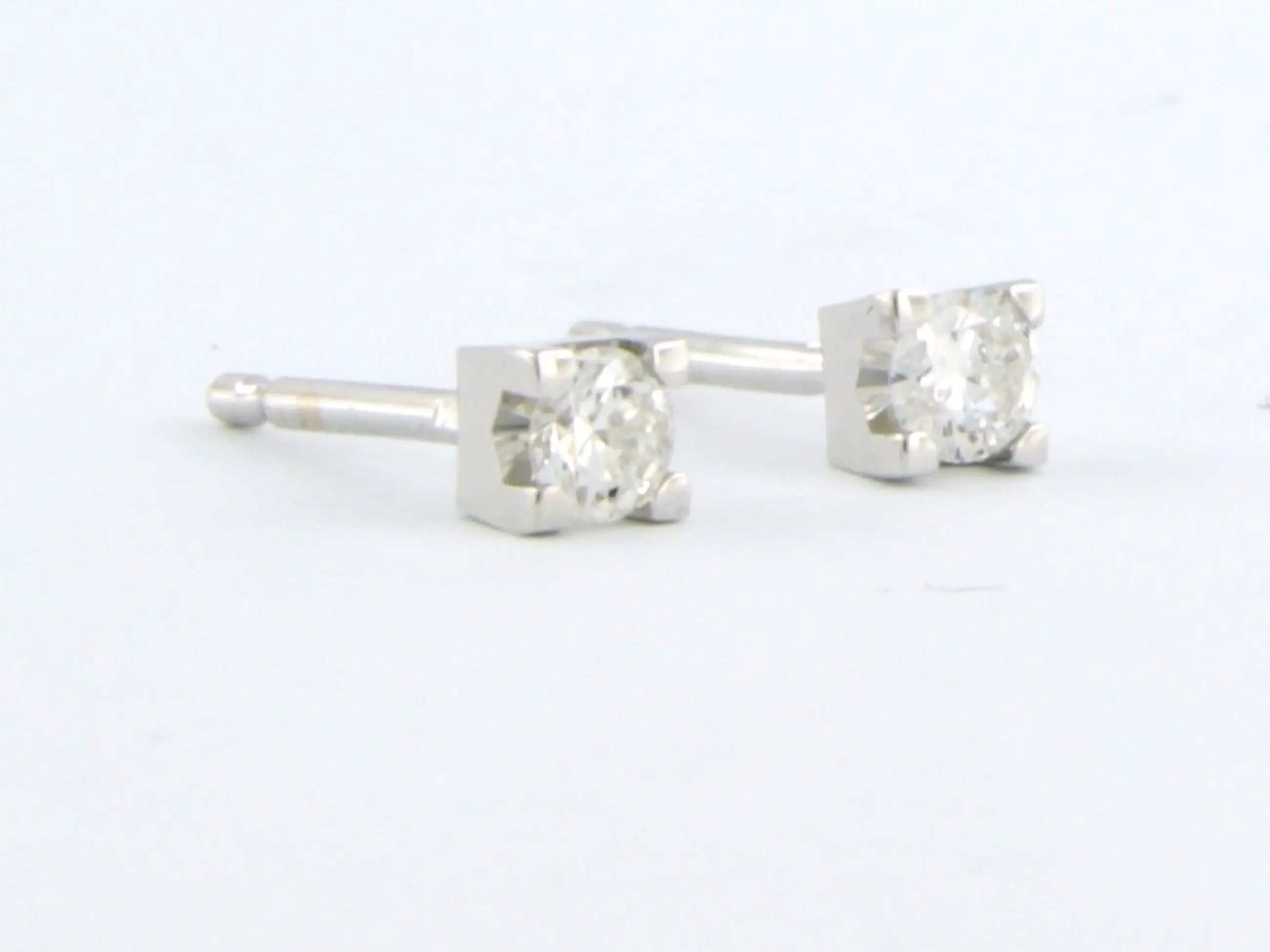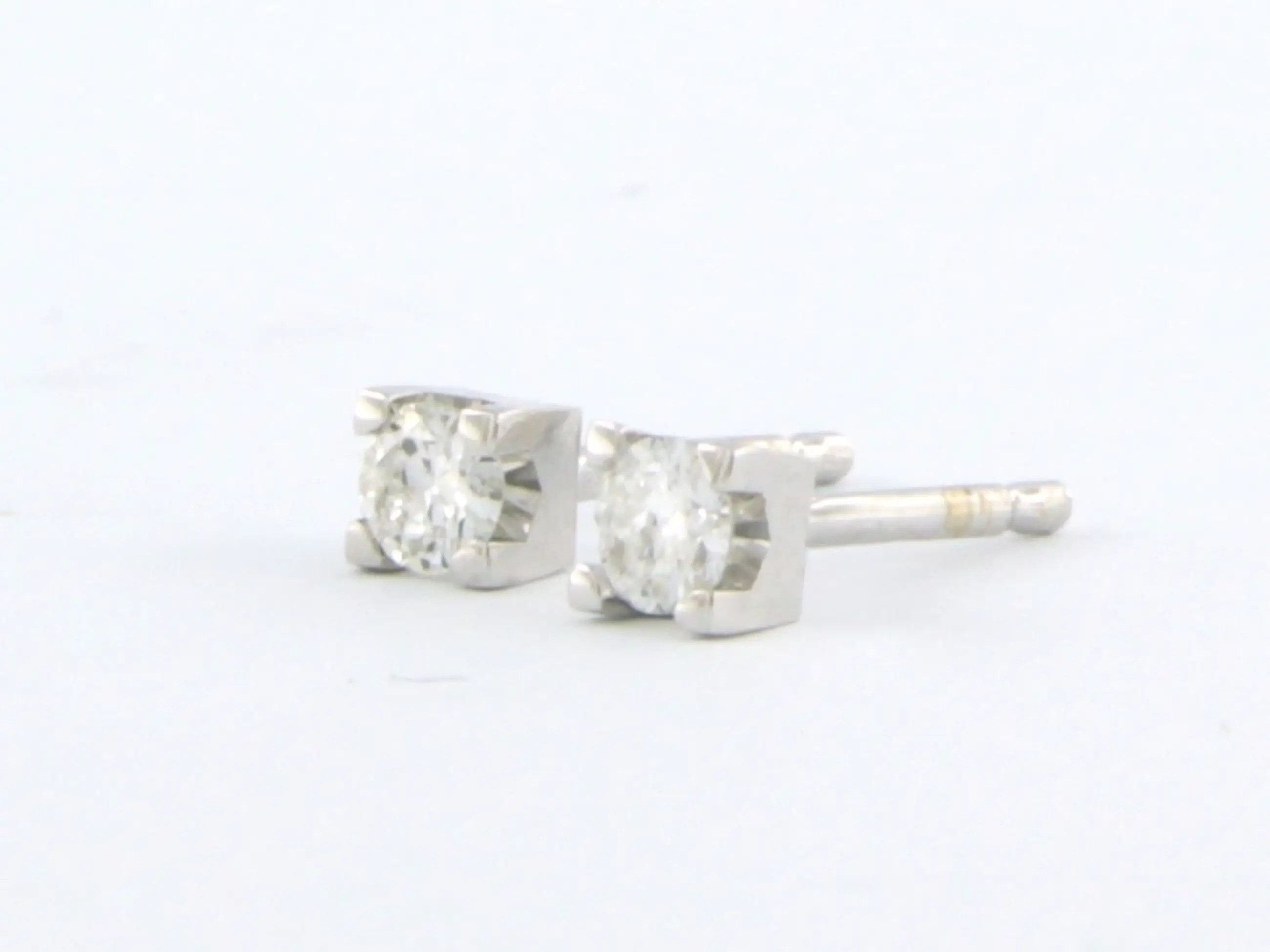 18k wit gouden solitair oorknoppen bezet met briljant geslepen diamant tot. 0,12ct - G/H - VS/SI