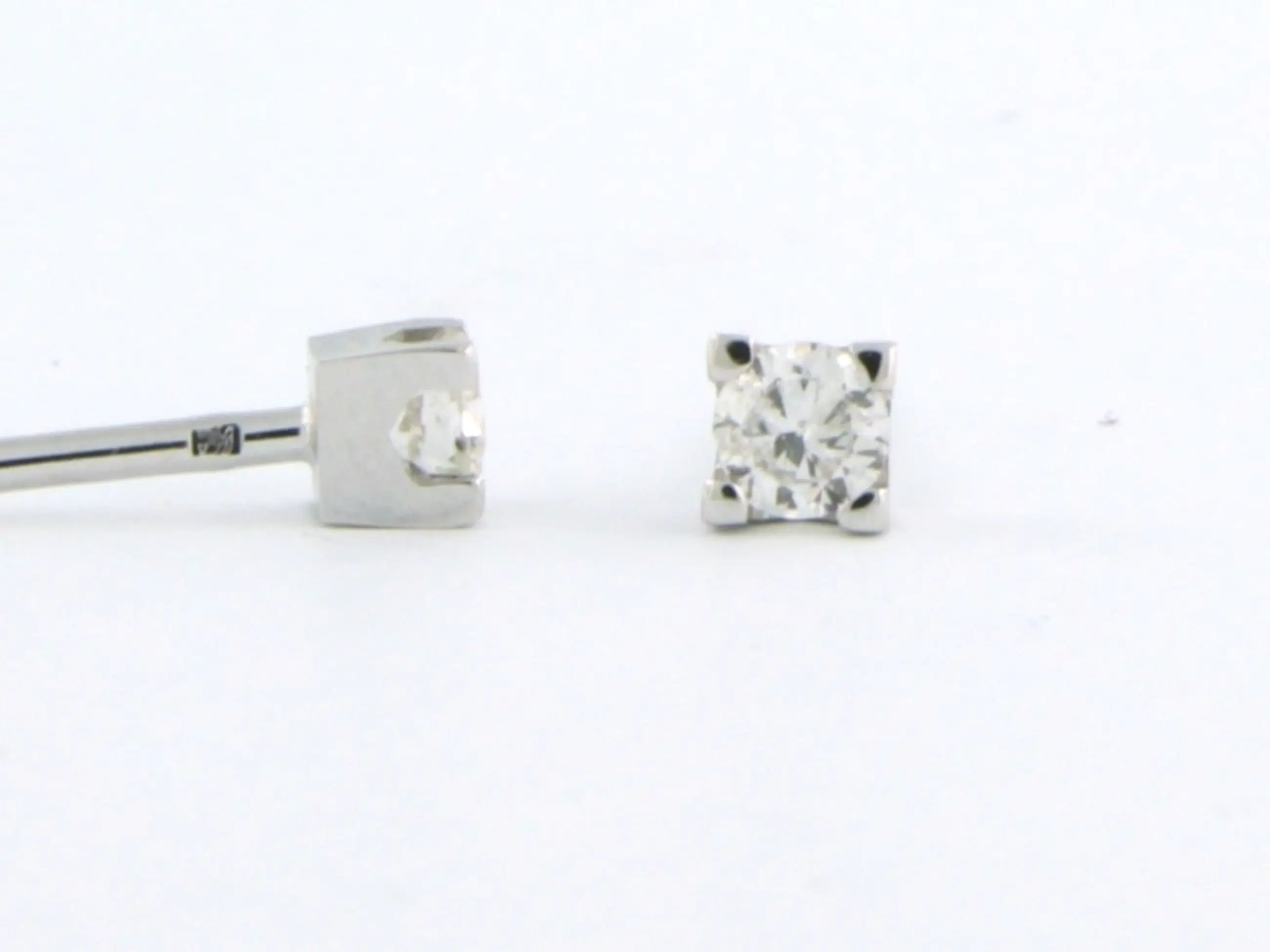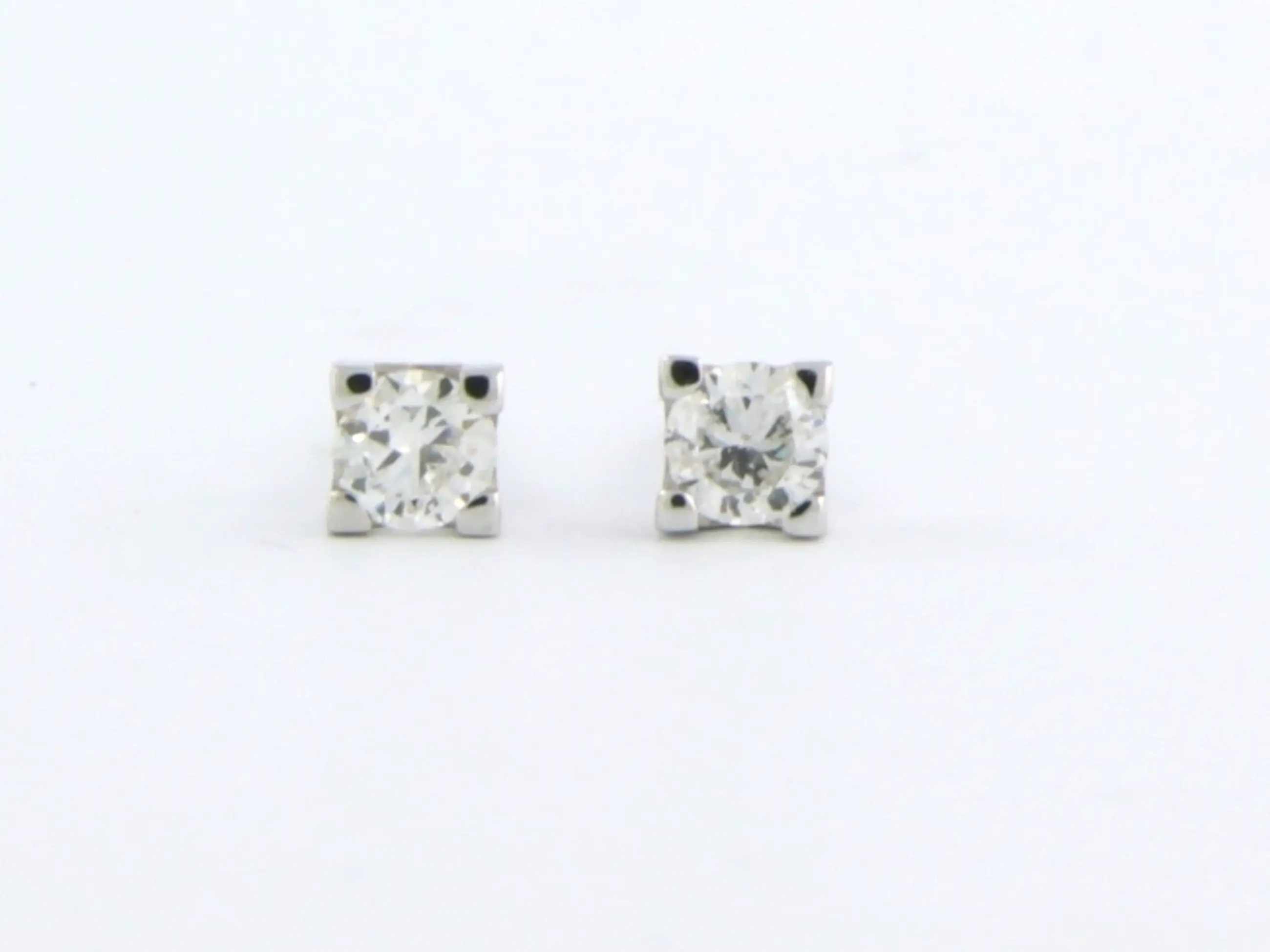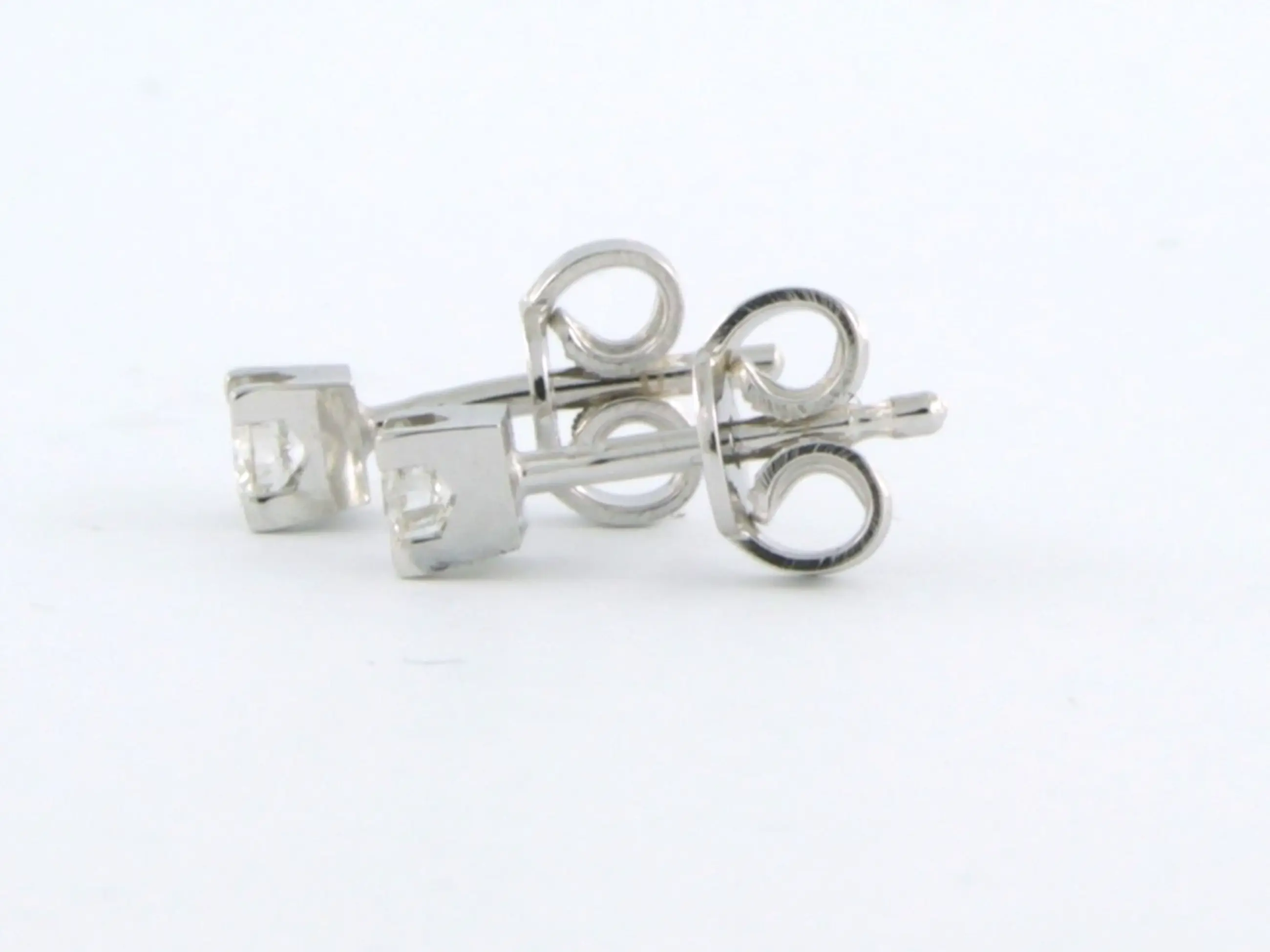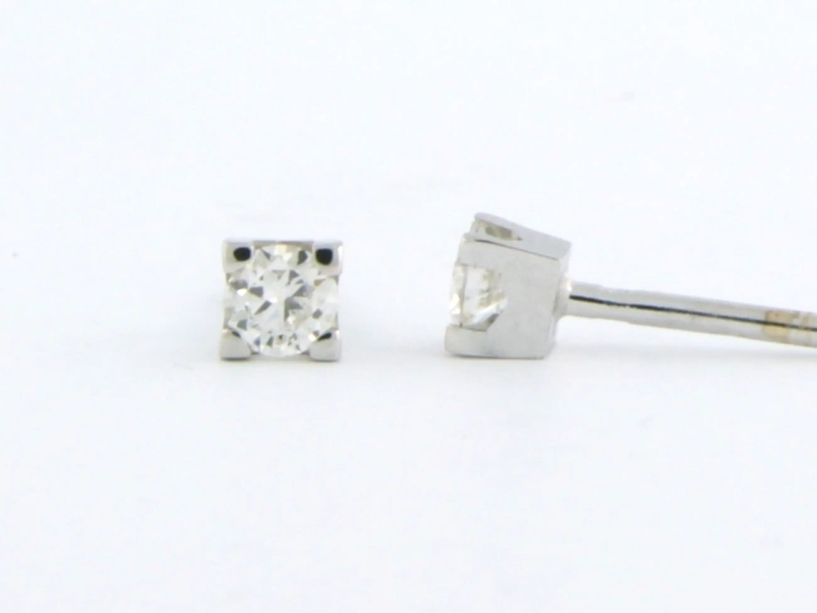 18k wit gouden solitair oorknoppen bezet met briljant geslepen diamant tot. 0,12ct - G/H - VS/SI