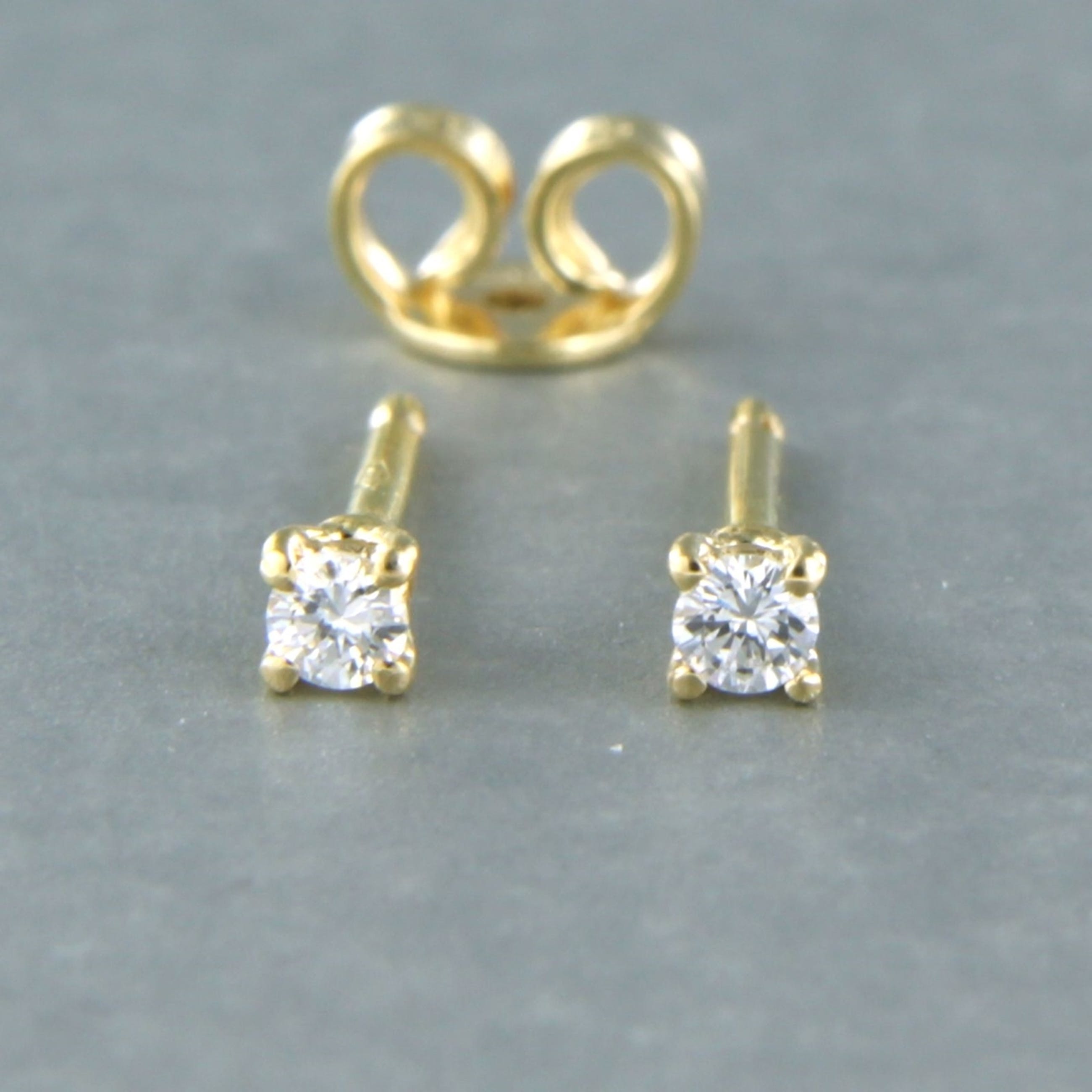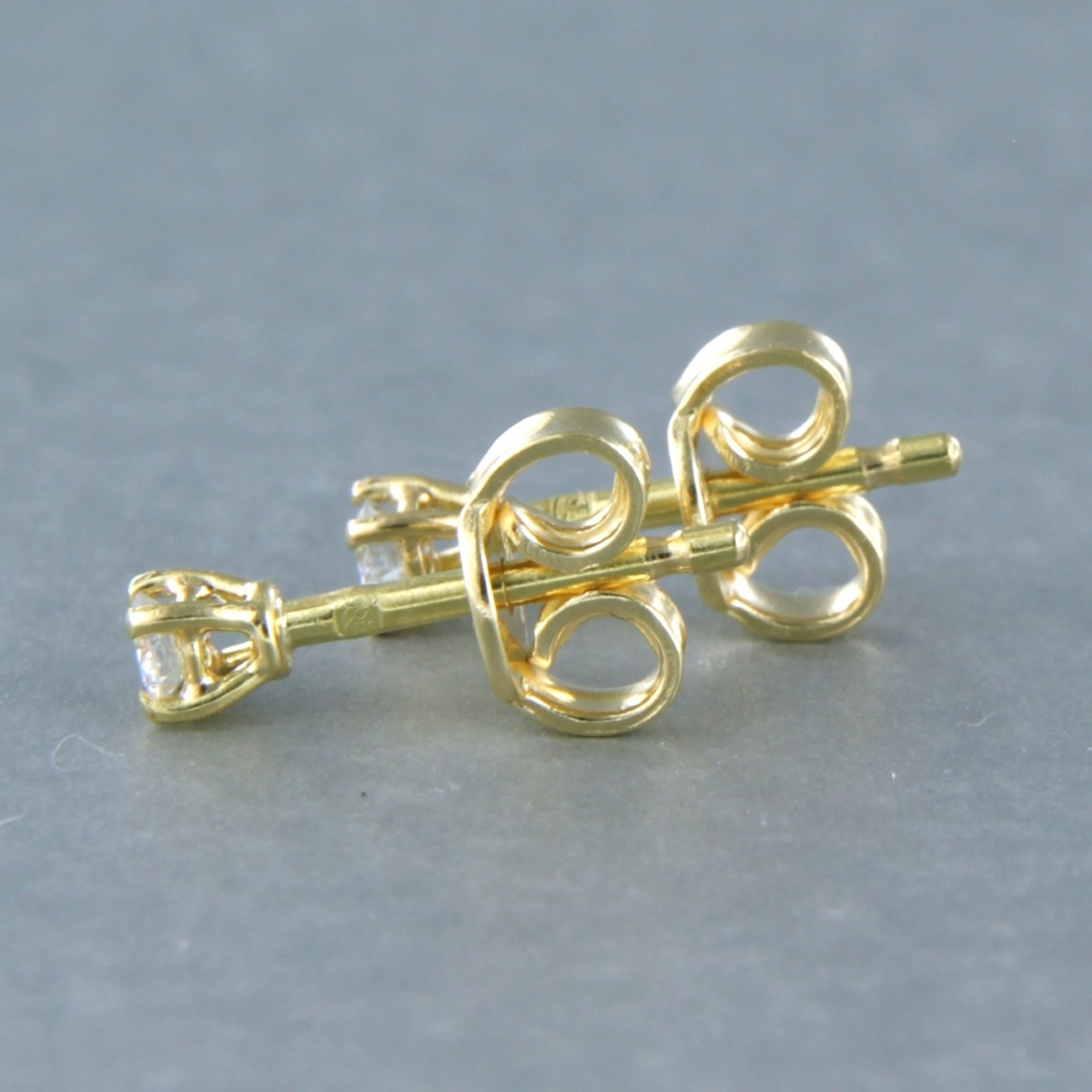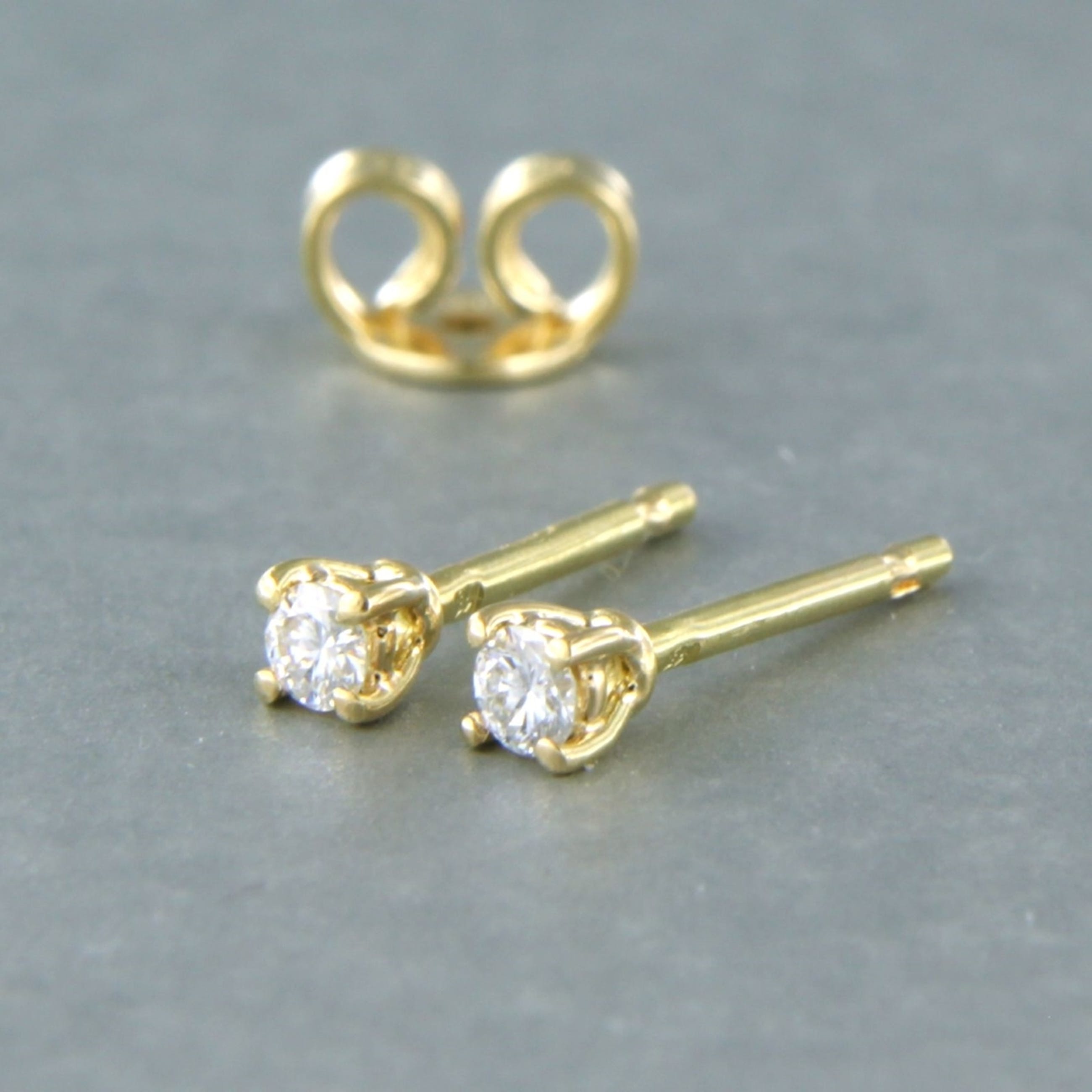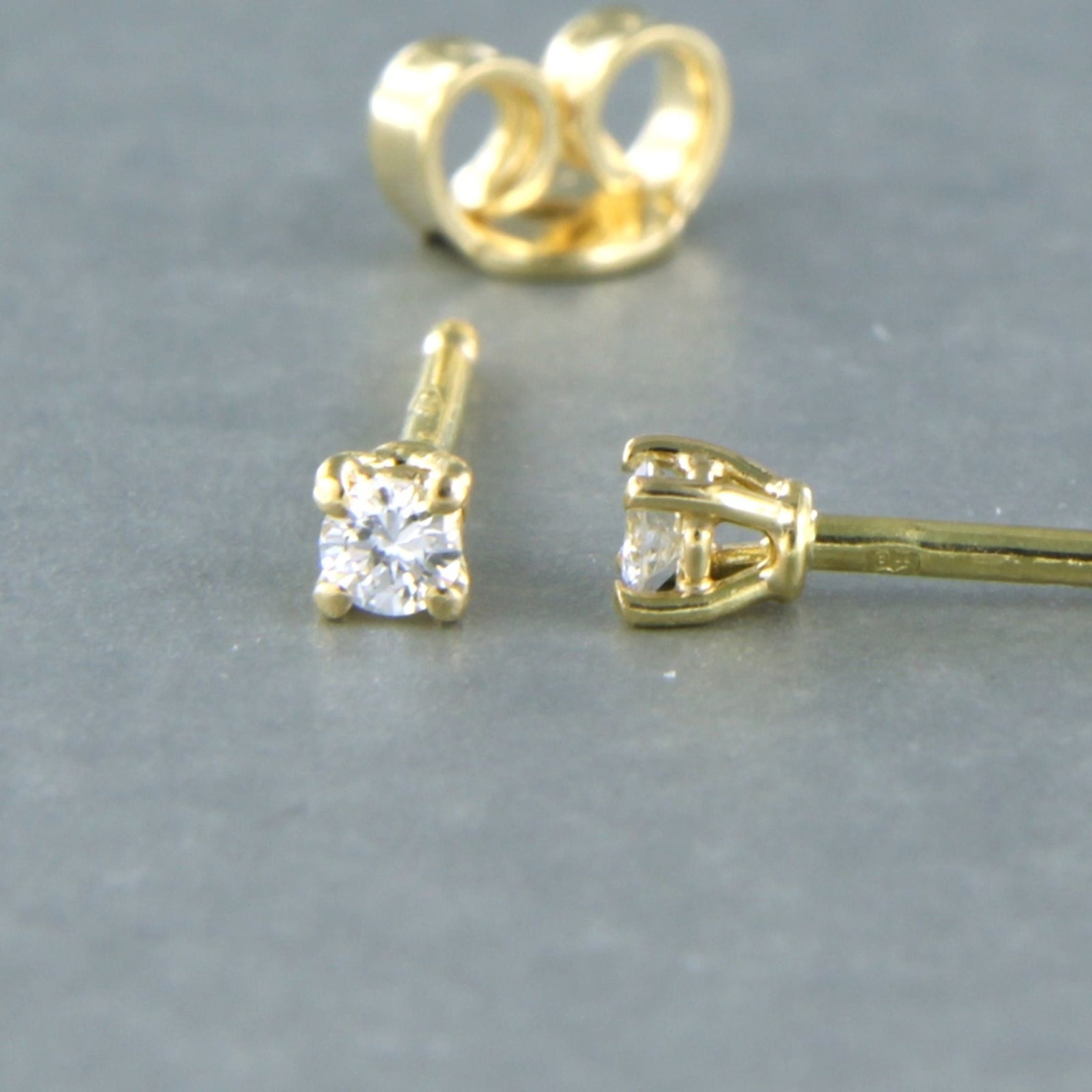 18k geel gouden solitair oorknoppen bezet met briljant geslepen diamant tot. 0,14ct - G/H - VS/SI