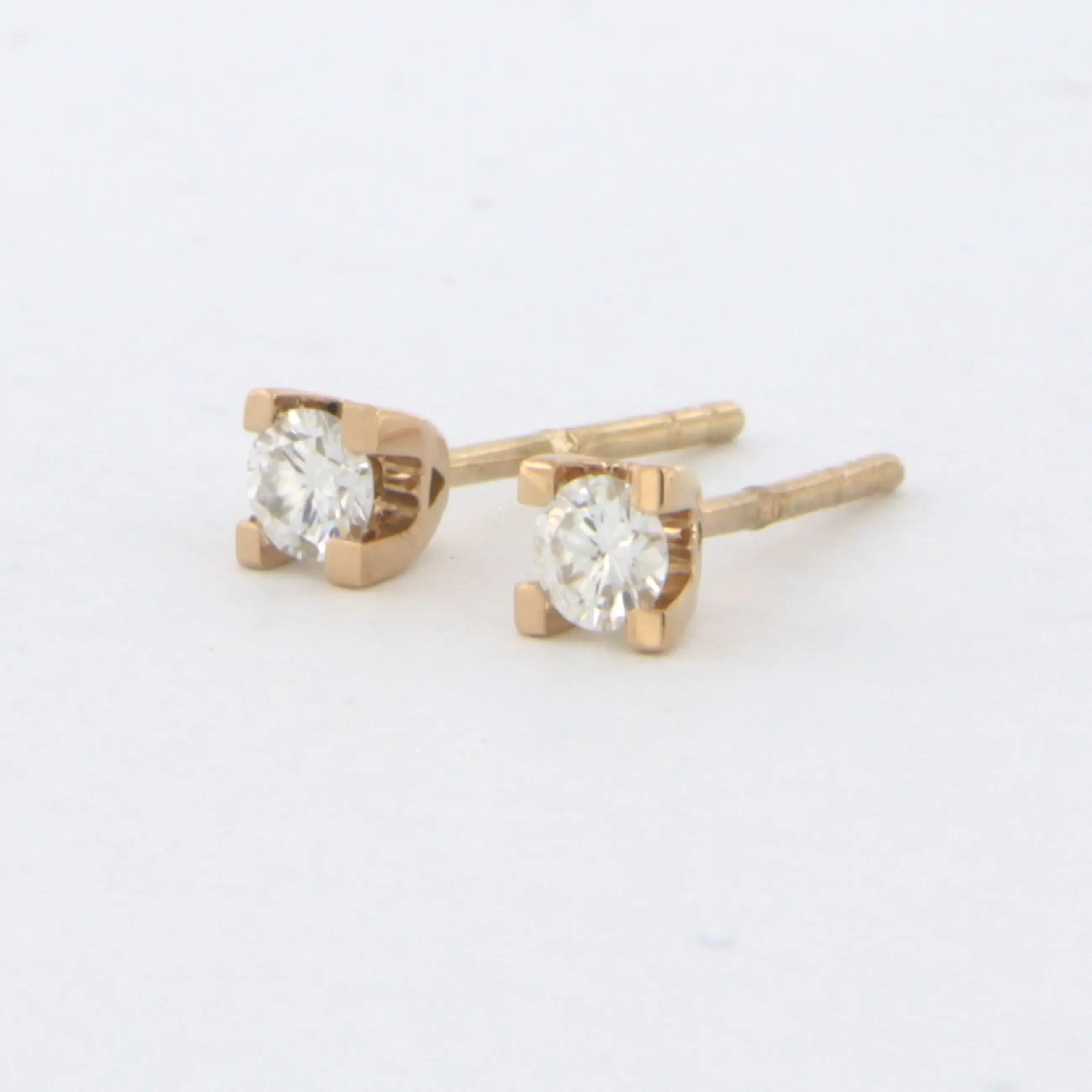 18k rood gouden oorknoppen bezet met briljant geslepen diamant 0.26ct F/G - VS/SI