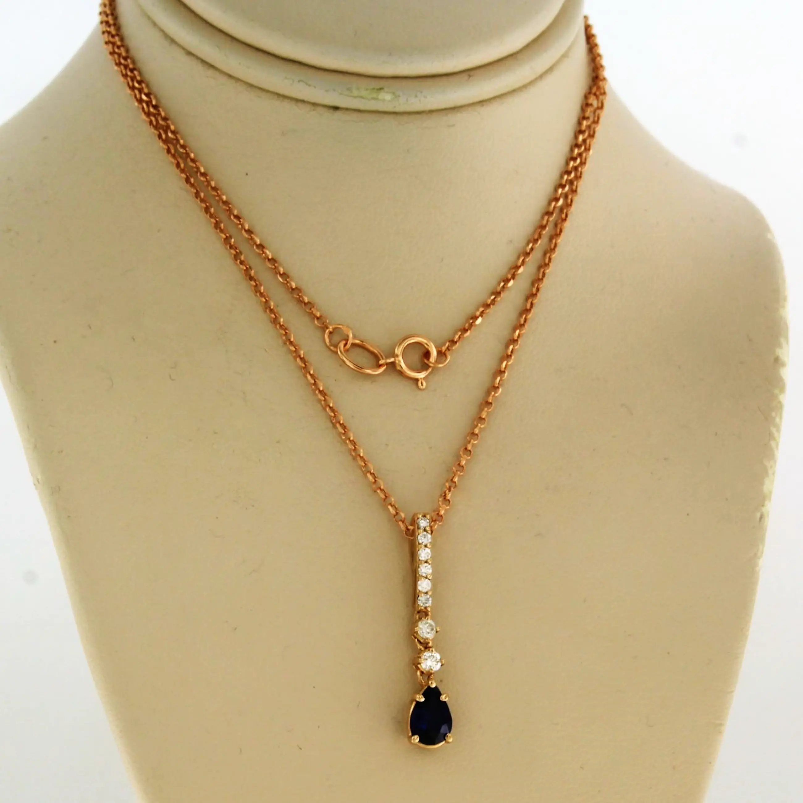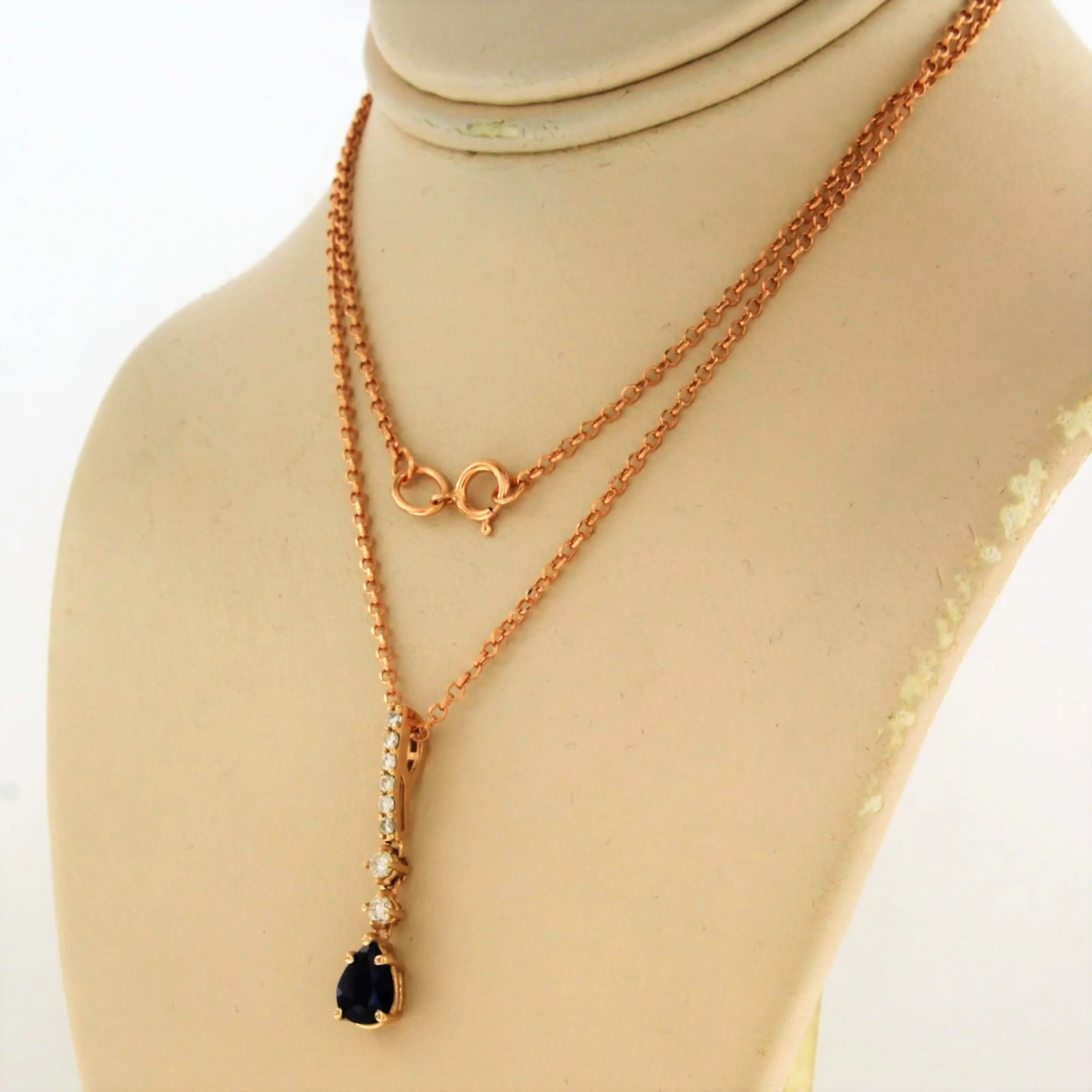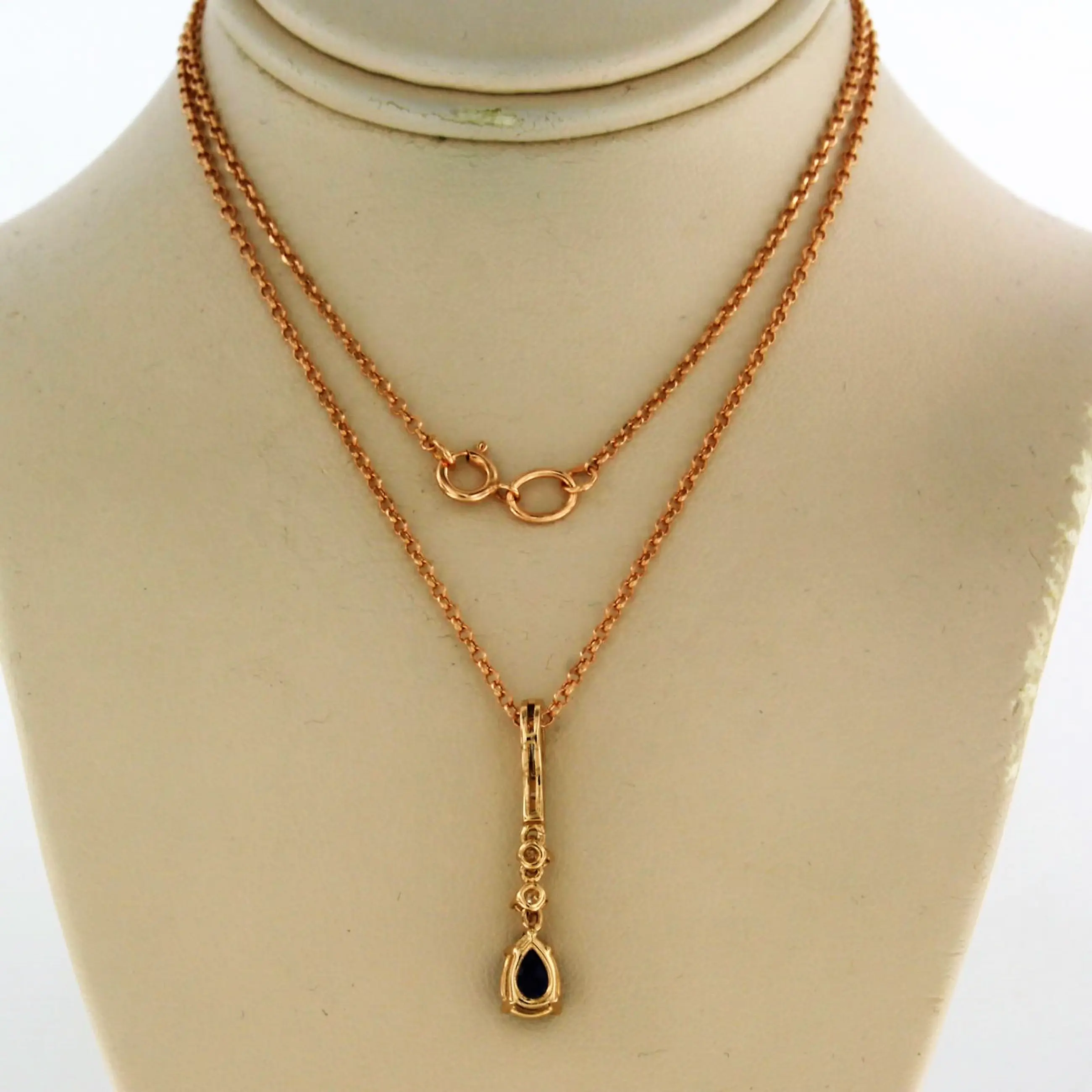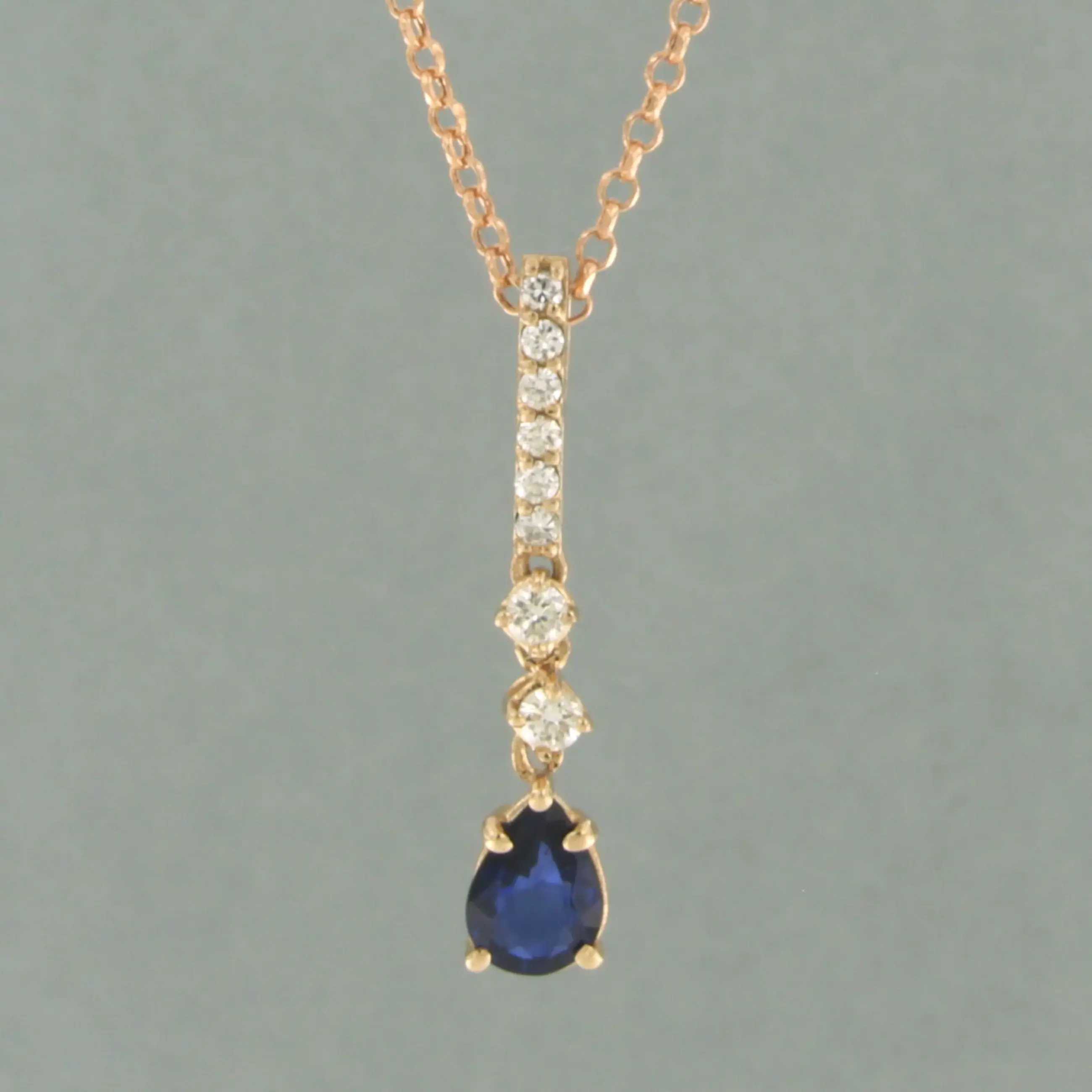 18k rosé gouden collier en hanger bezet met saffier tot. 0.60ct en briljant geslepen diamant 0.16ct - F/G - VS/SI - 45cm lang