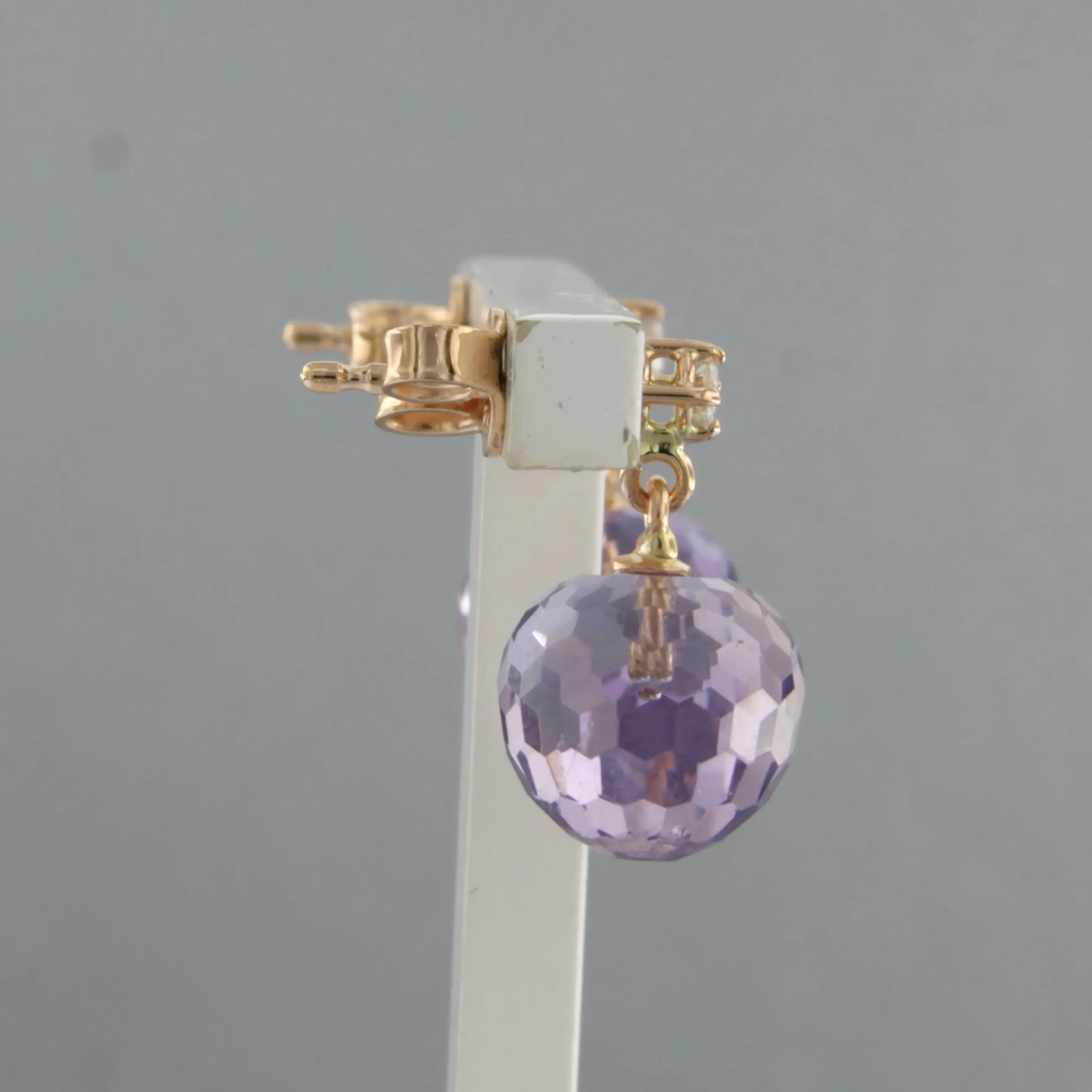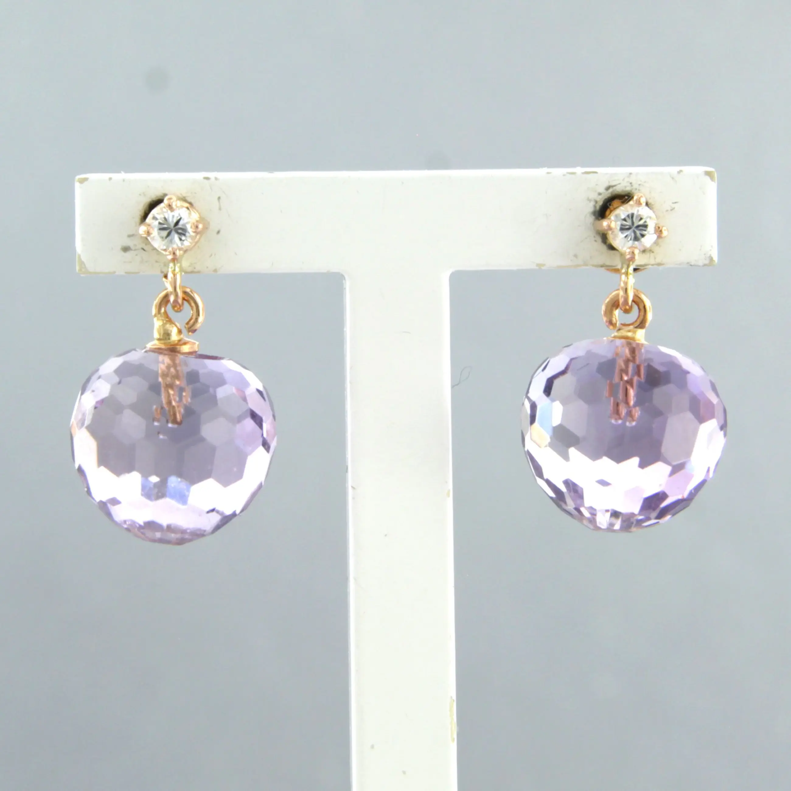 18k rosé gouden oorhangers bezet met amethist en briljant geslepen diamant tot.0.09ct – F/G – VS/SI