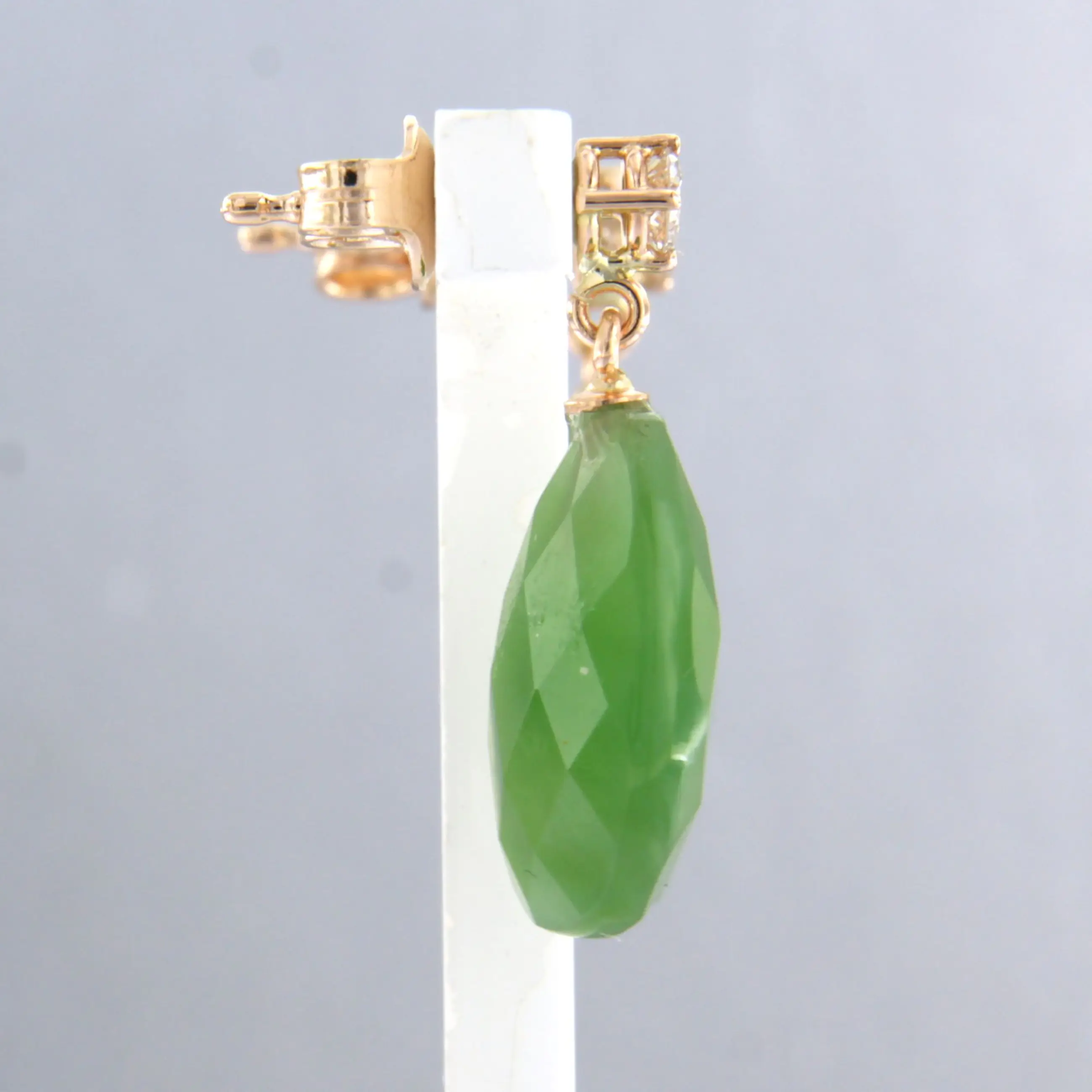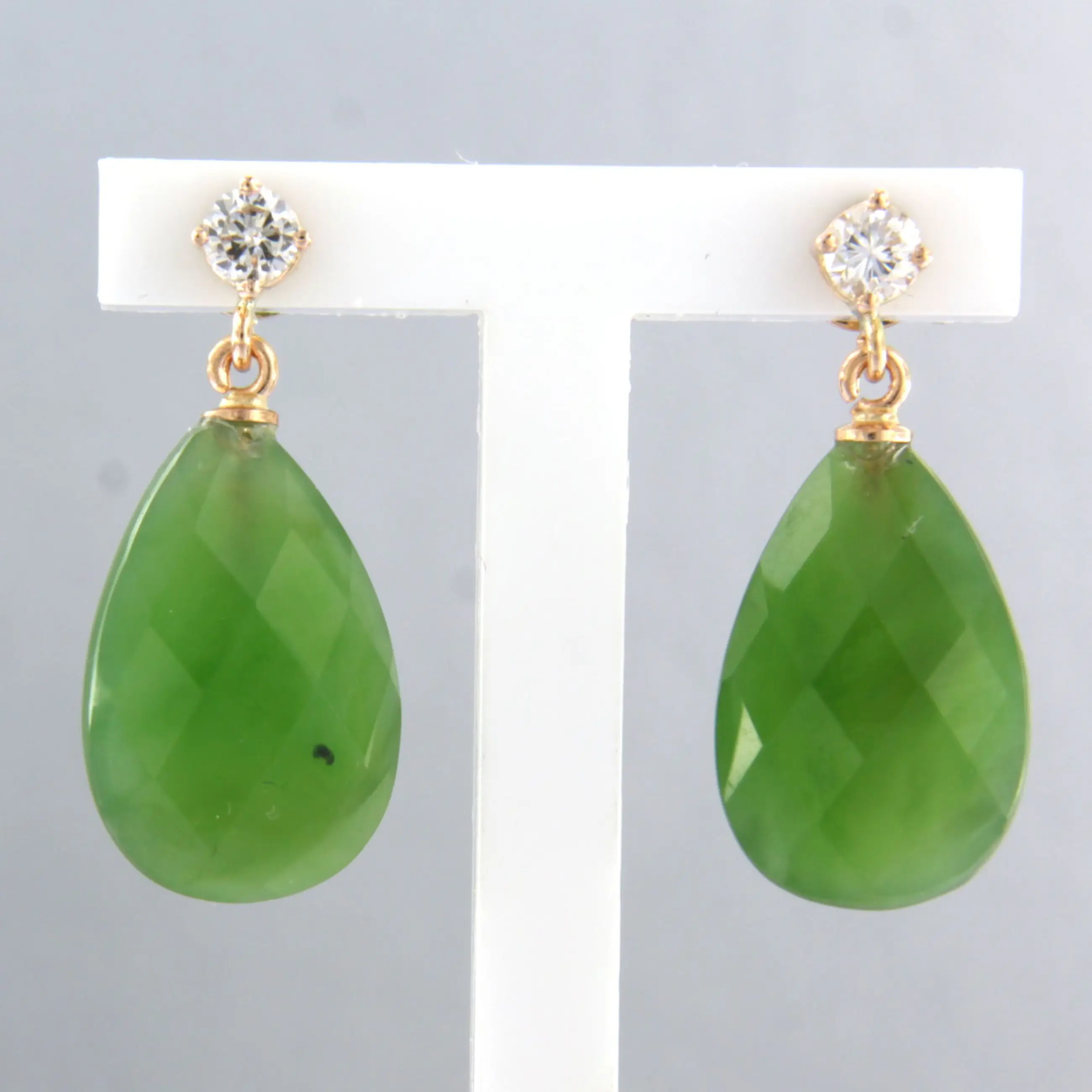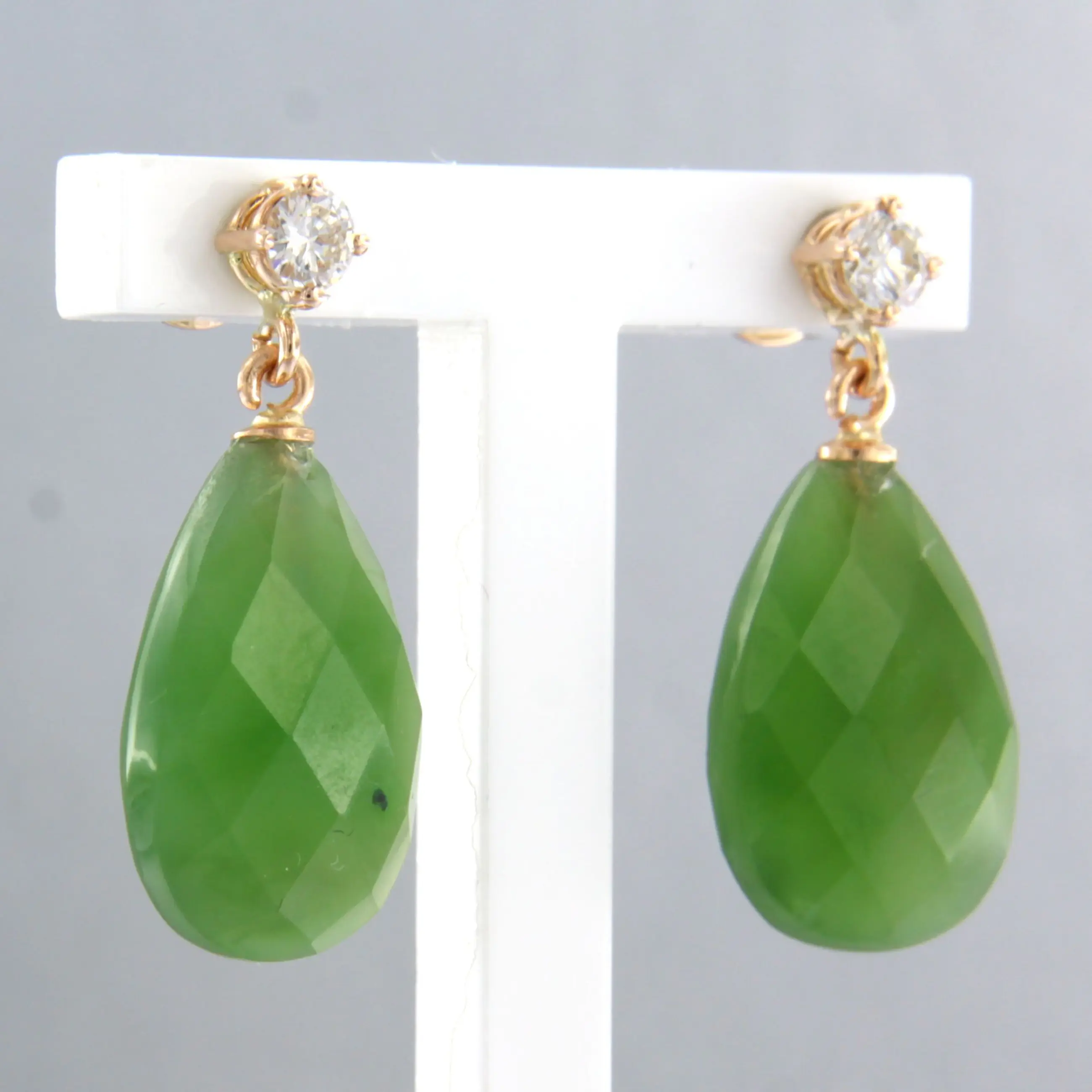 18k rosé gouden oorhangers met jade en briljant geslepen diamant tot. 0.22ct