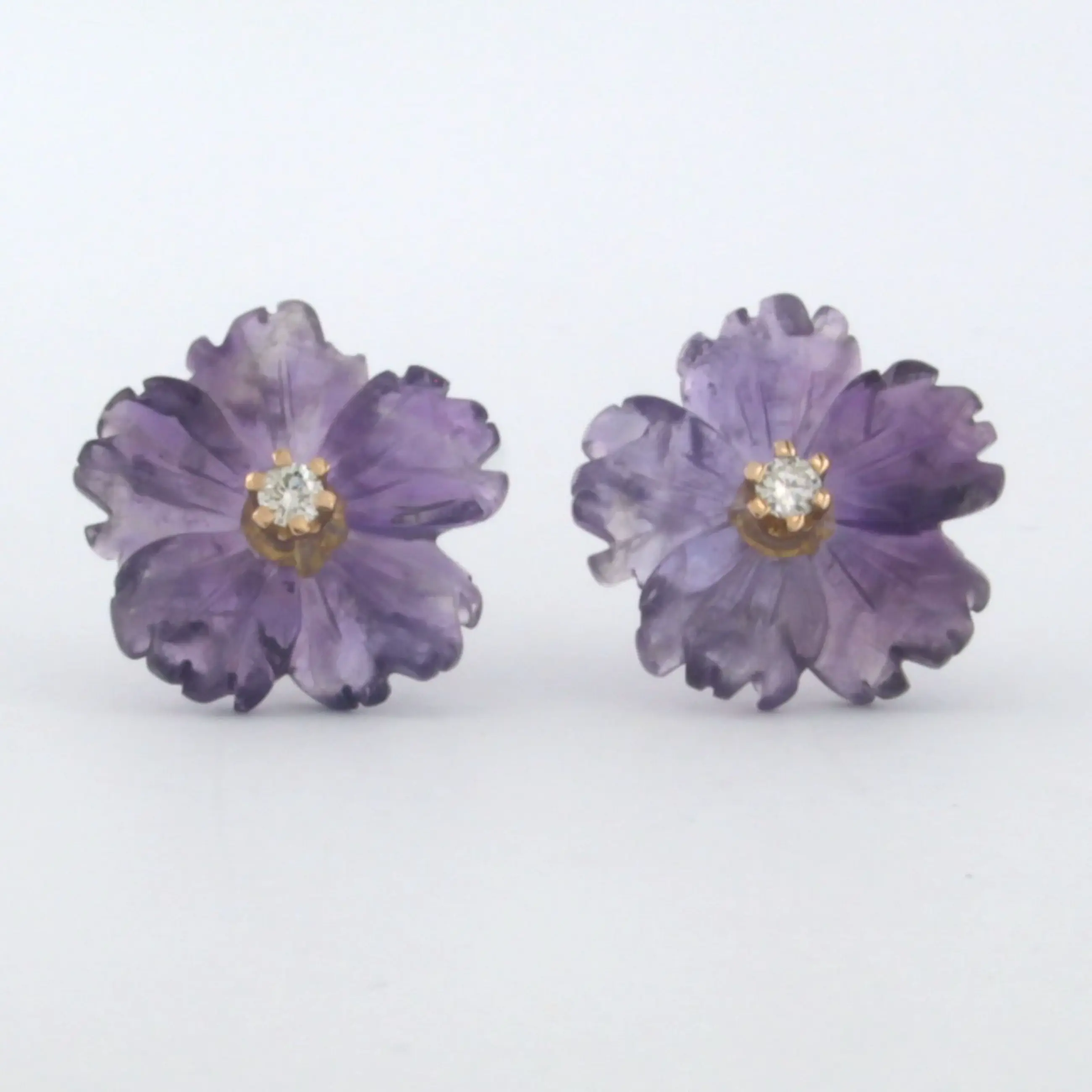 - 2 x 1.4 cm x 1.4 cm bloem motief geslepen amethists