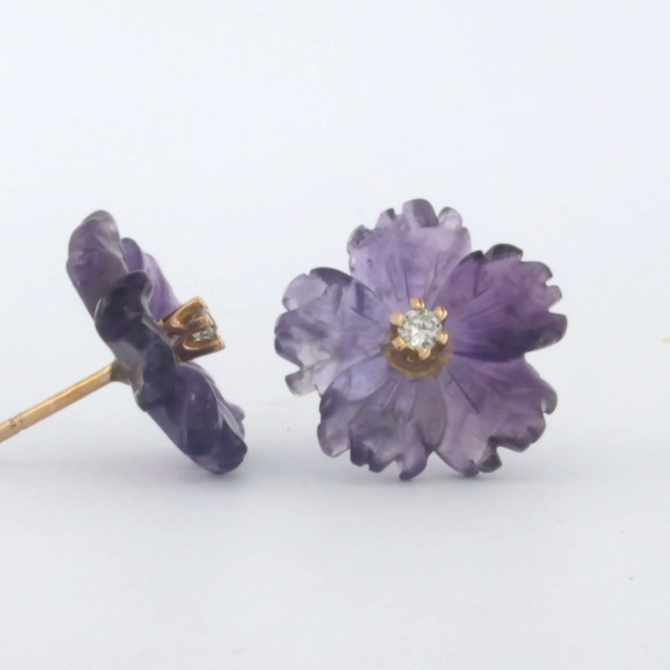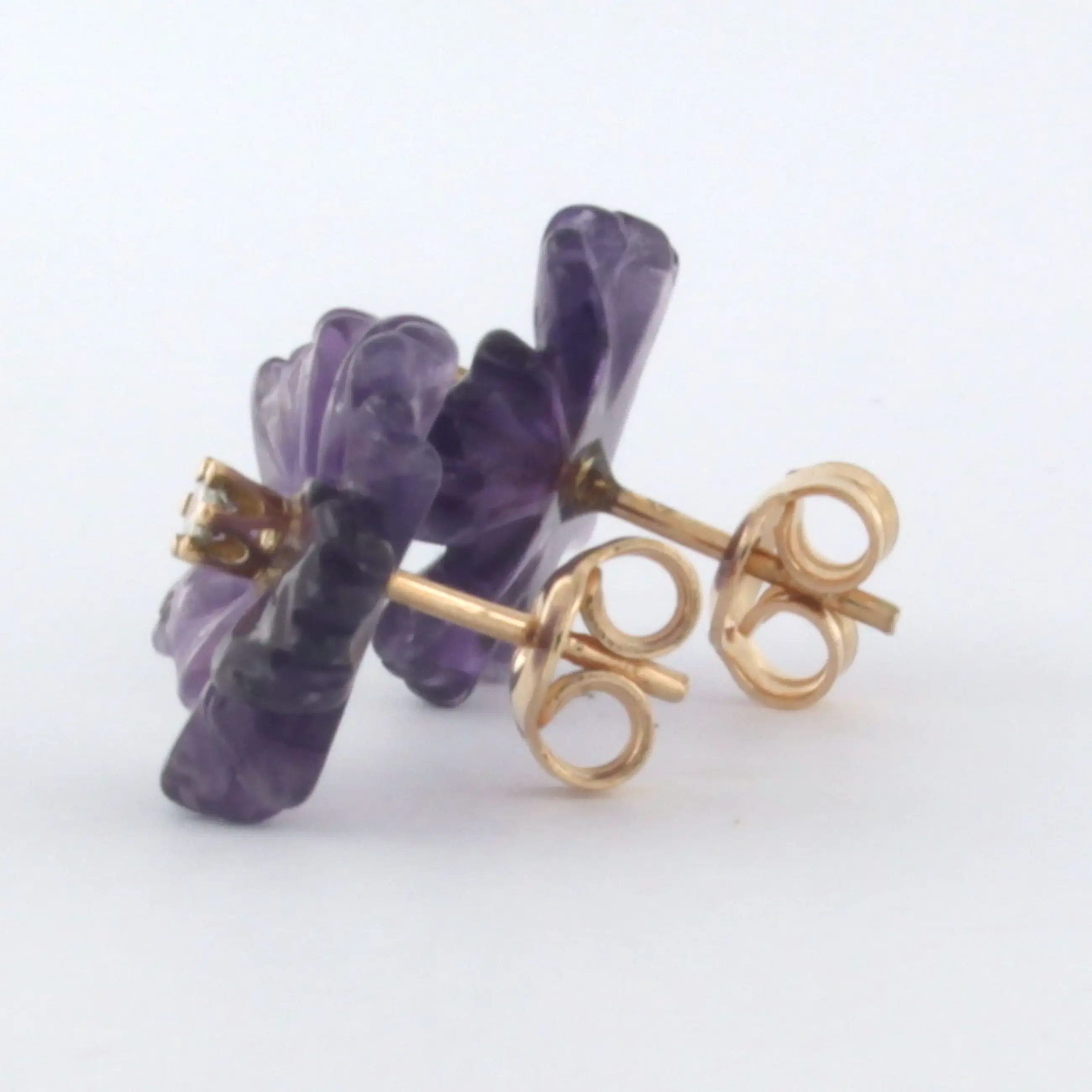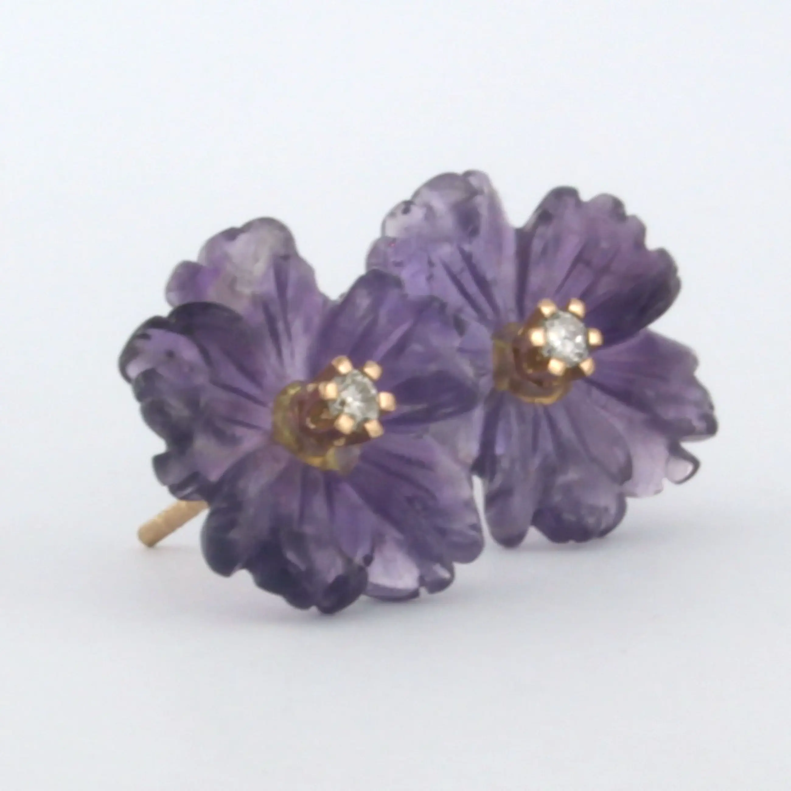 14k rose gouden entourage oorknoppen bezet met amethist en briljant geslepen diamanten tot. 0,08ct - G/H - VS/SI