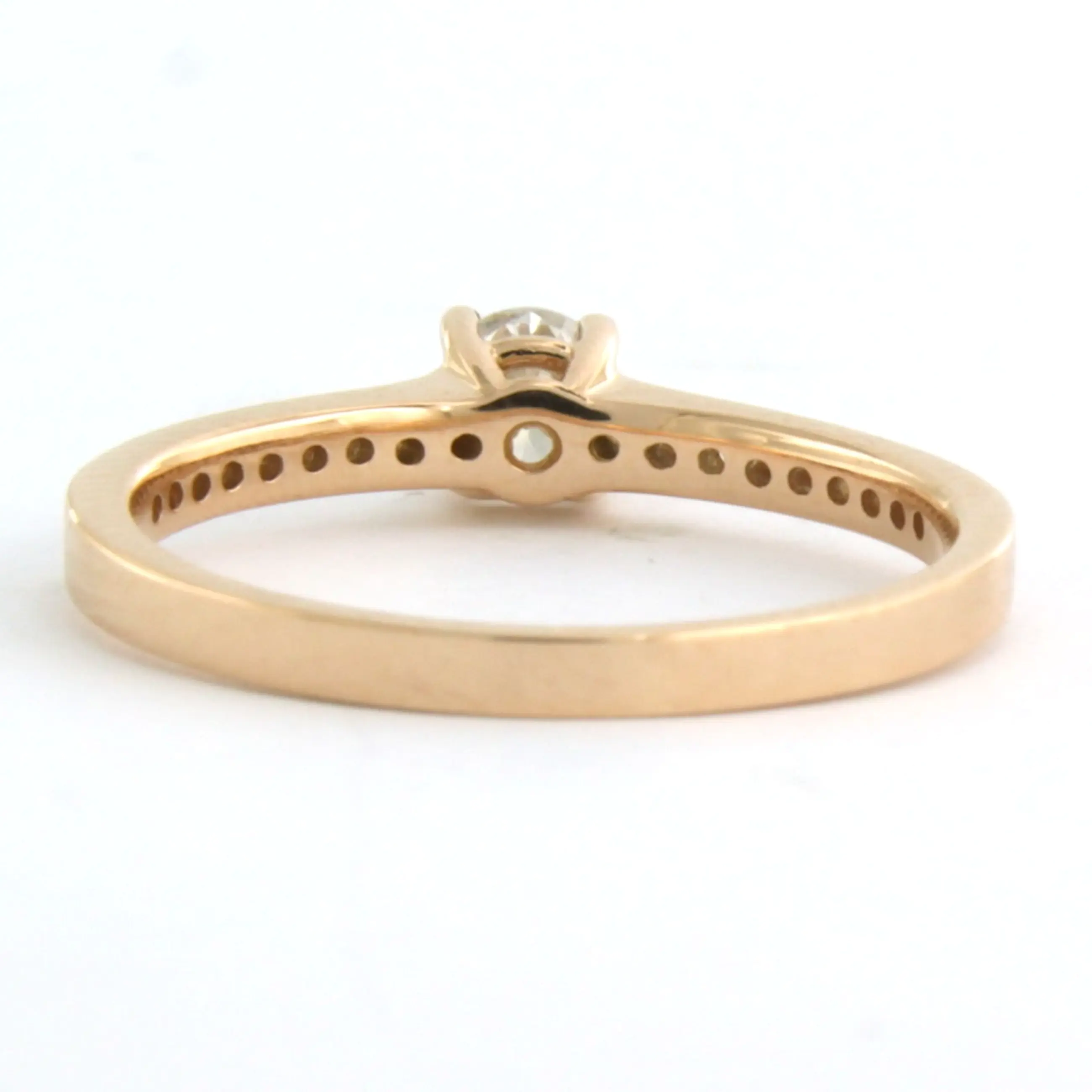 18k rose gouden ring bezet met centraal een briljant geslepen diamant tot. 0,26ct - G/H - VS/SI en op de scheen briljant geslepen diamanten tot.0,09ct - F/G - VS/SI - rm 17,5(55)