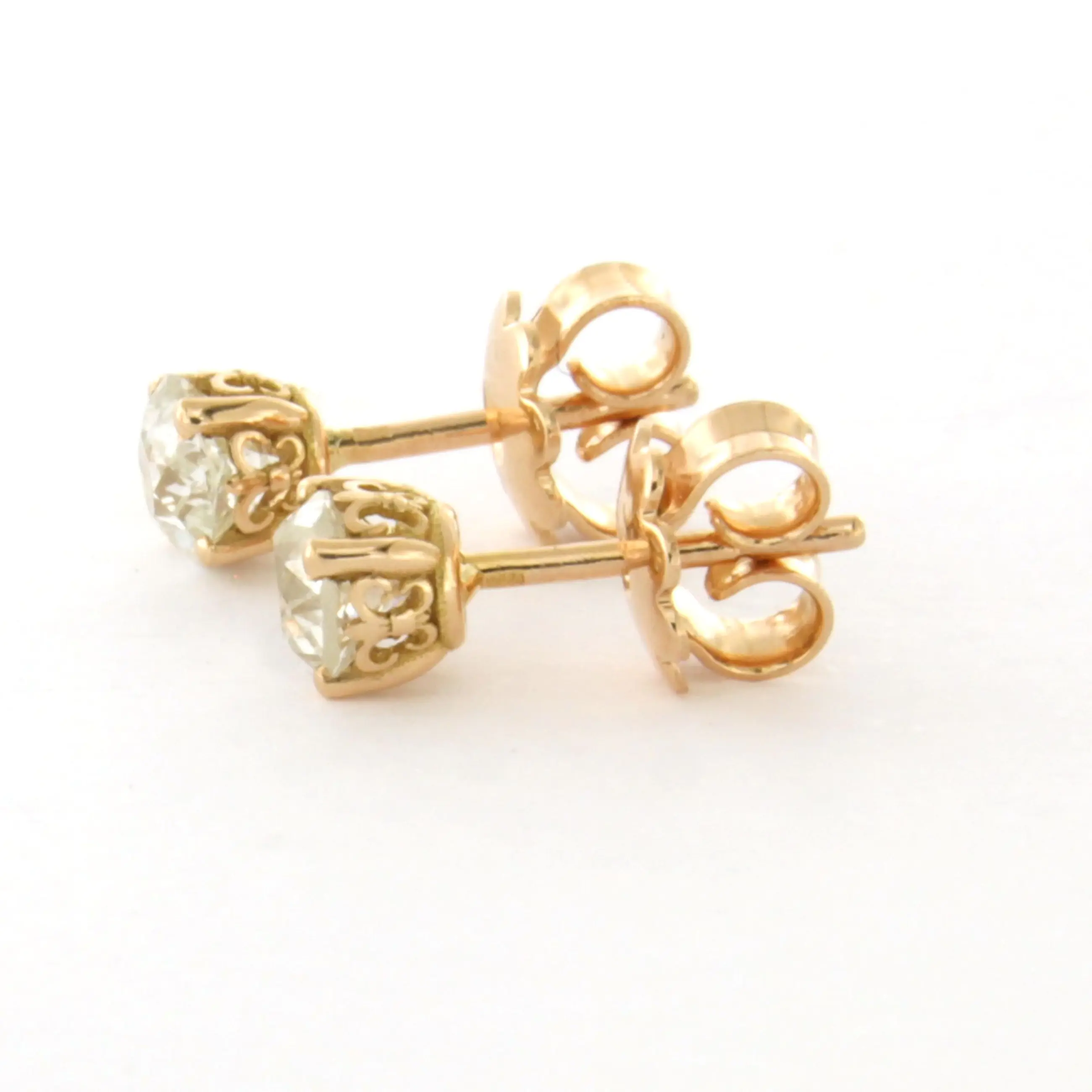 18k rosé gouden solitair oorknoppen bezet met Bolsjewiek geslepen diamant tot. 0,84ct – G/H - SI