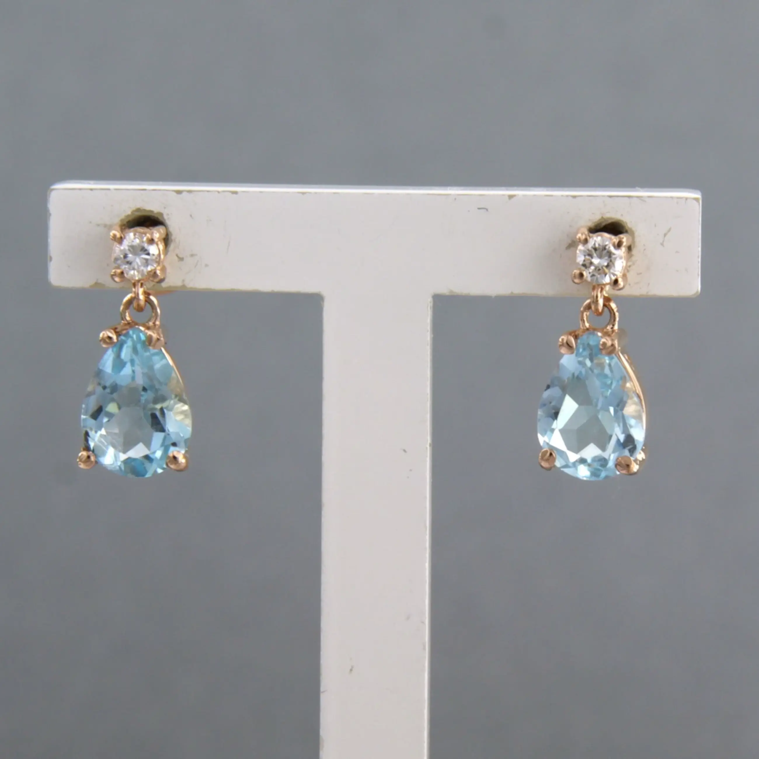 18k rosegouden oorhangers bezet met topaas en briljant geslepen diamant tot. 0.08 ct - F/G - VS/SI