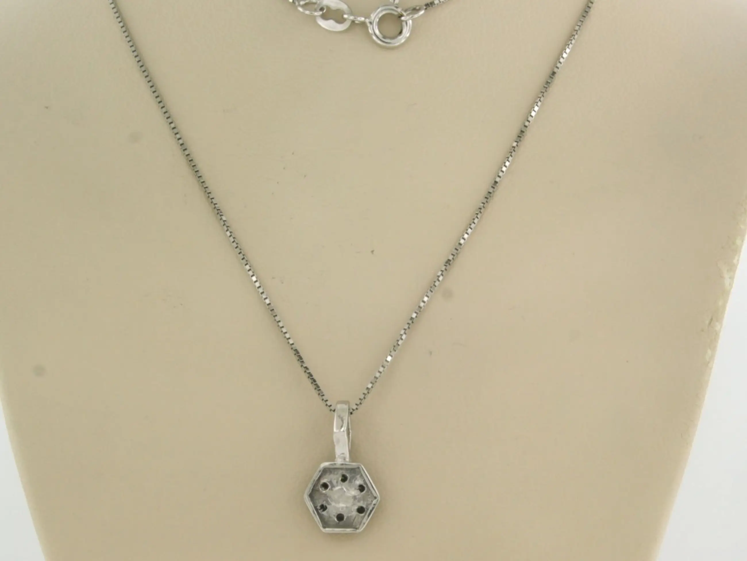 18k wit gouden collier met hanger met single cut geslepen diamant tot. 0.30ct