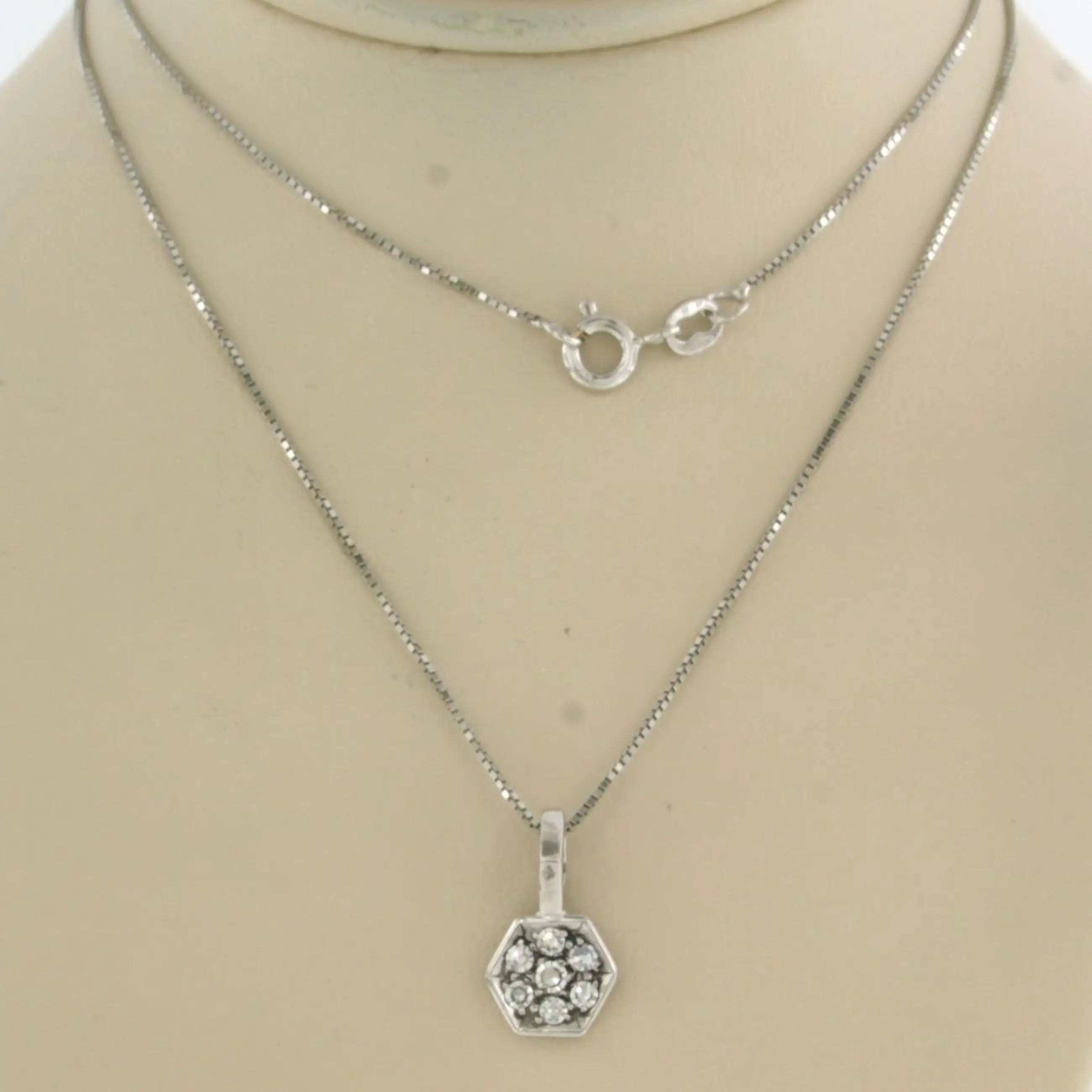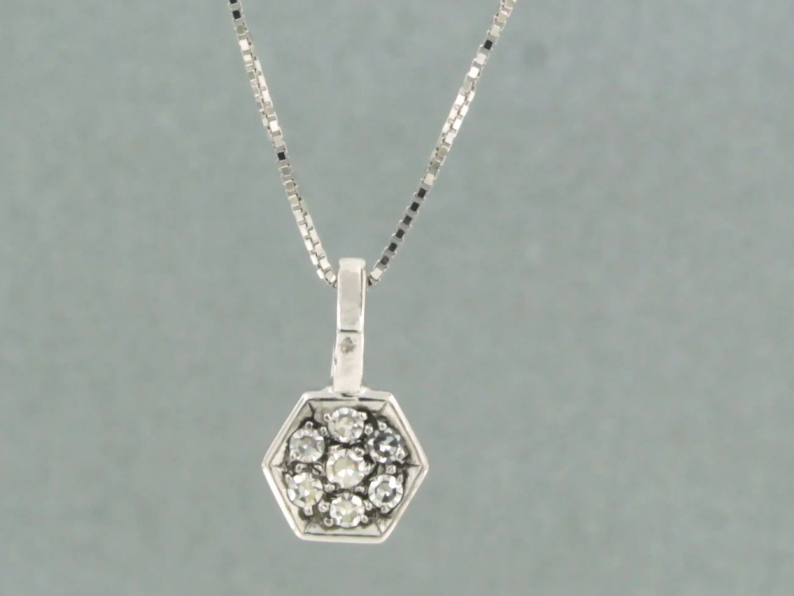 18k wit gouden collier met hanger met single cut geslepen diamant tot. 0.30ct - F/G - VS/SI - 42 cm lang