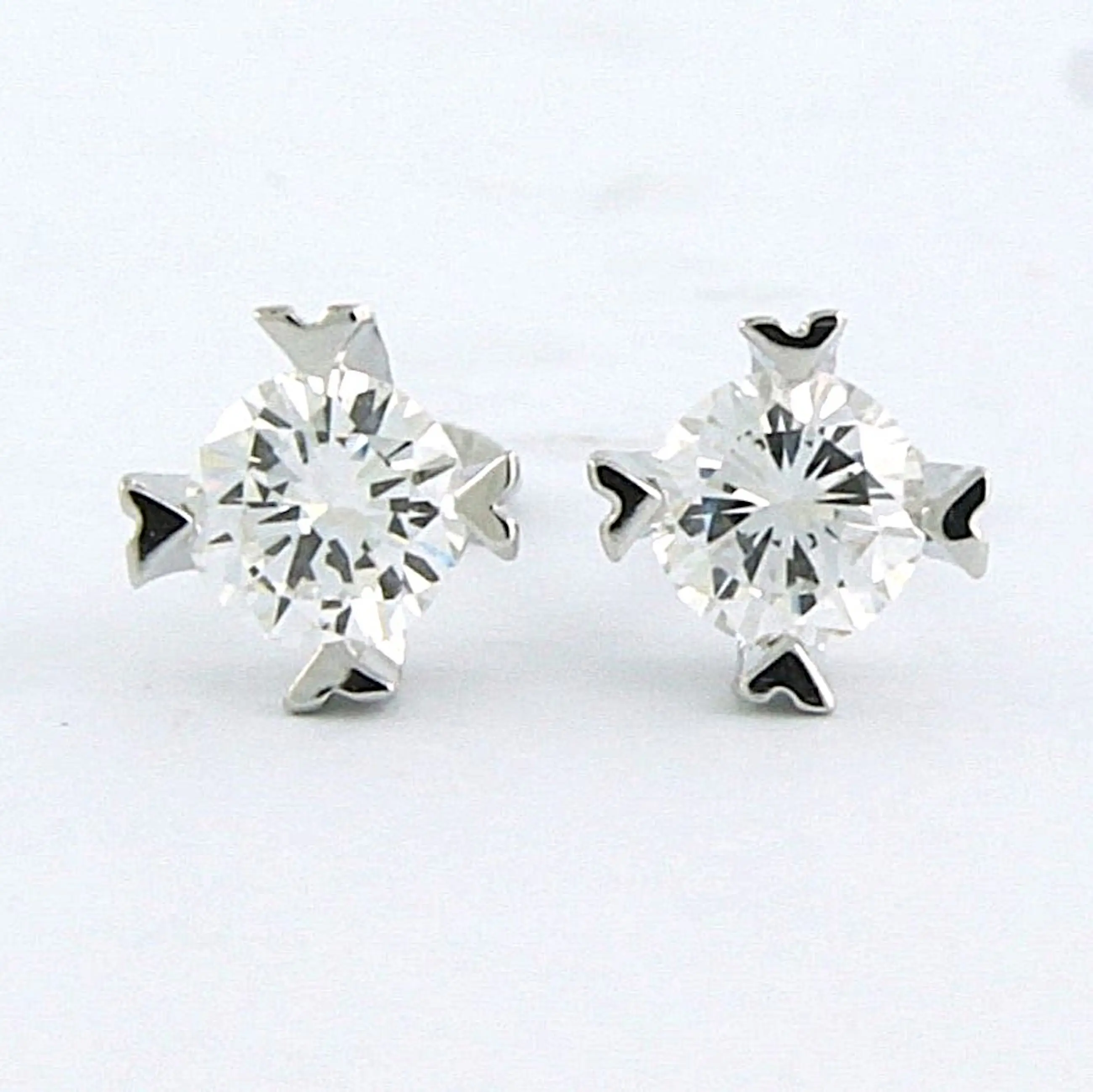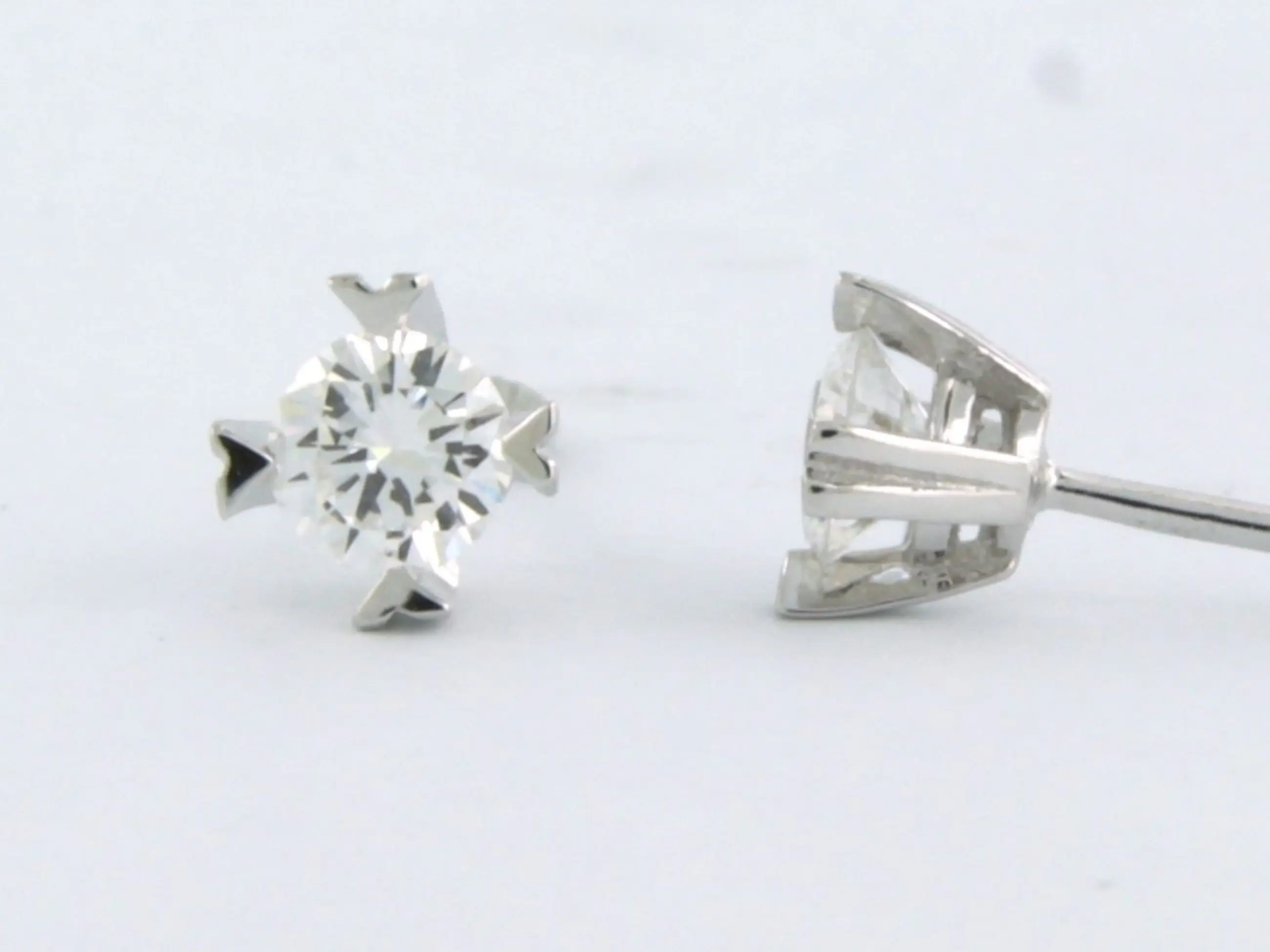 18k wit gouden solitair oorknoppen bezet met briljant geslepen diamant tot. 0,22ct - F/G - VS/SI