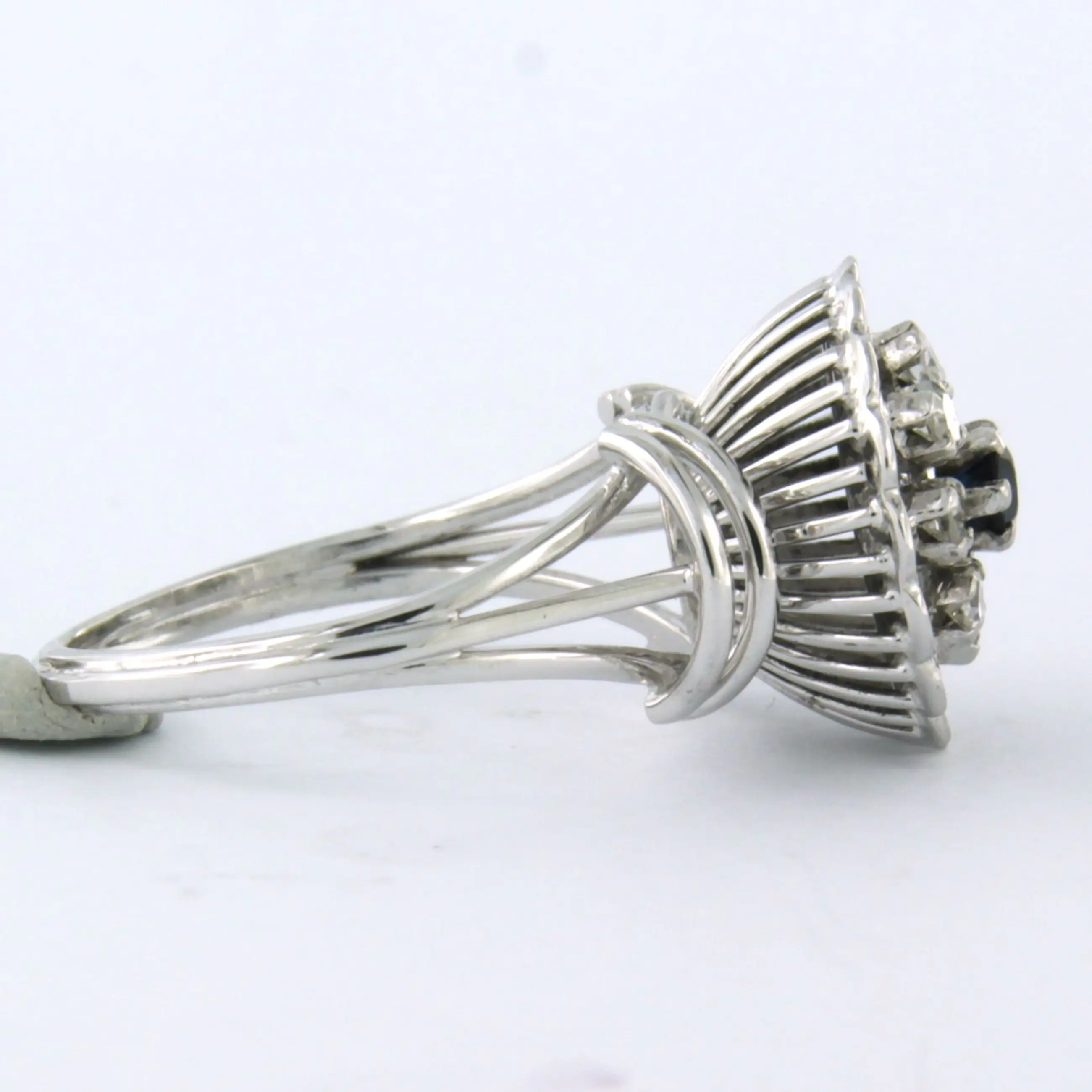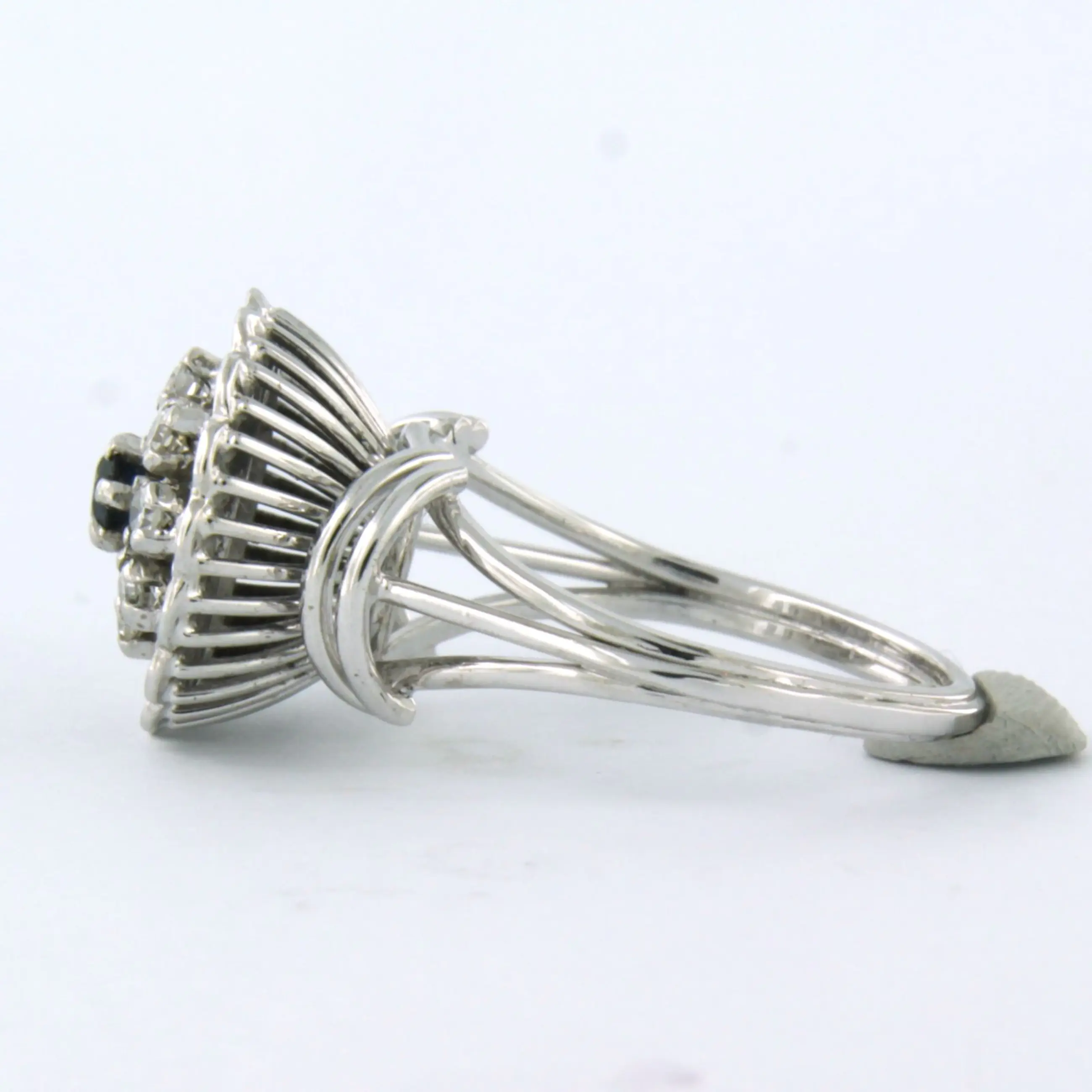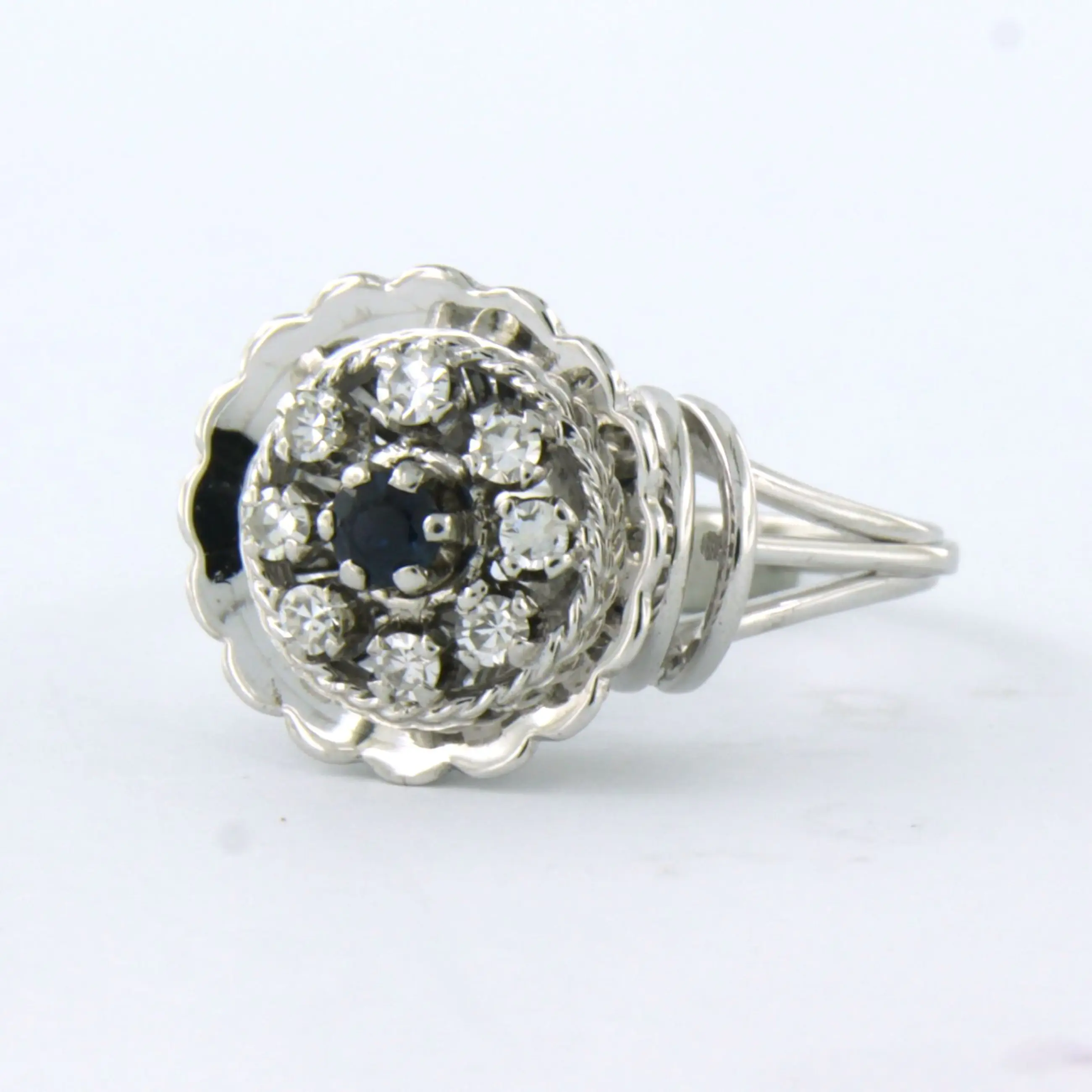 18k witgouden ring bezet met saffier en single cut geslepen diamanten tot. 0,25ct - F/G - VS/SI - ringmaat 17,75(56)