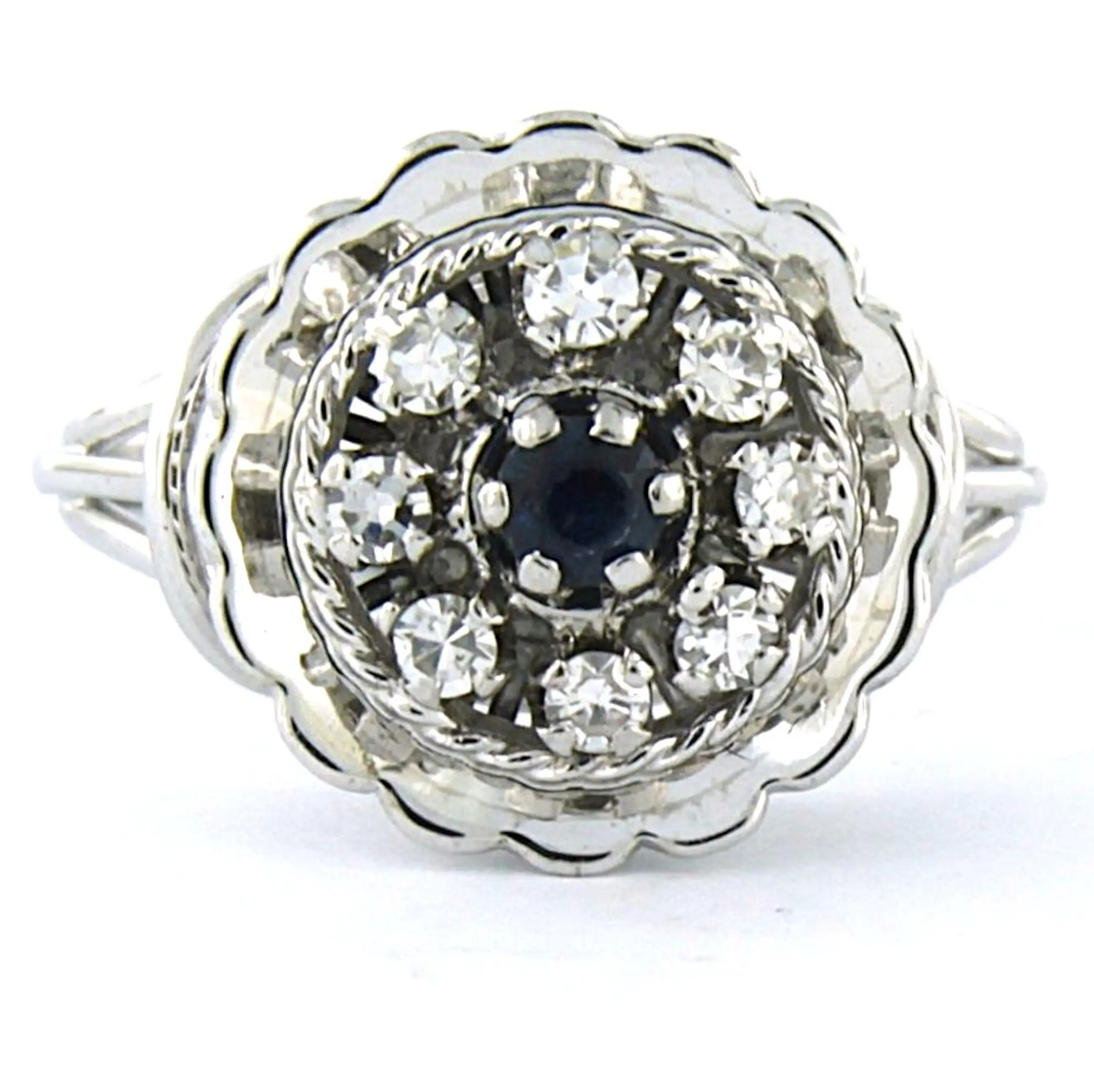 18k witgouden ring bezet met saffier en single cut geslepen diamanten tot. 0,25c kopen? Bied vanaf 750!