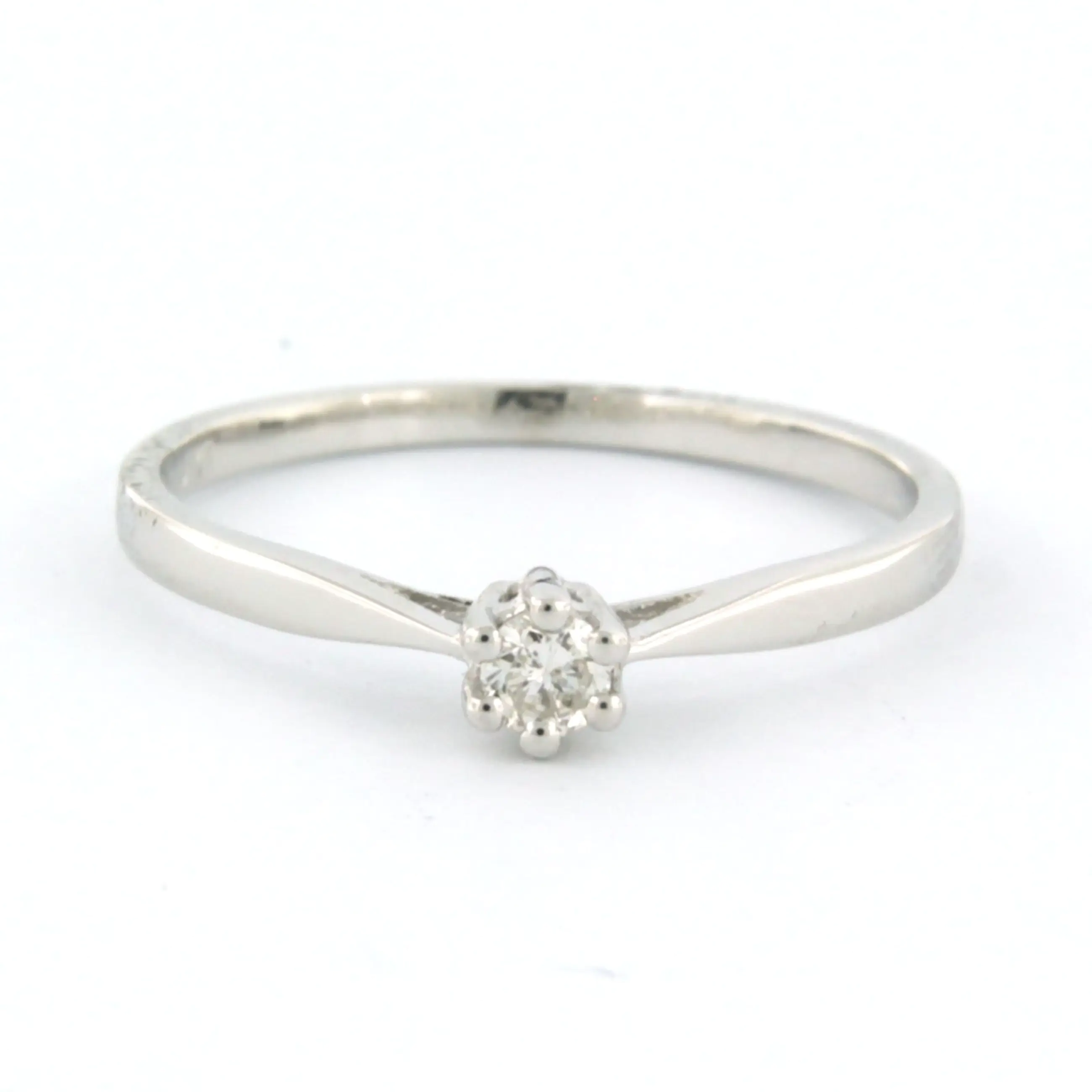 18k witgouden solitair ring bezet met briljant geslepen diamant tot. 0,08ct - G/H - VS/SI - ringmaat 16,5(52)