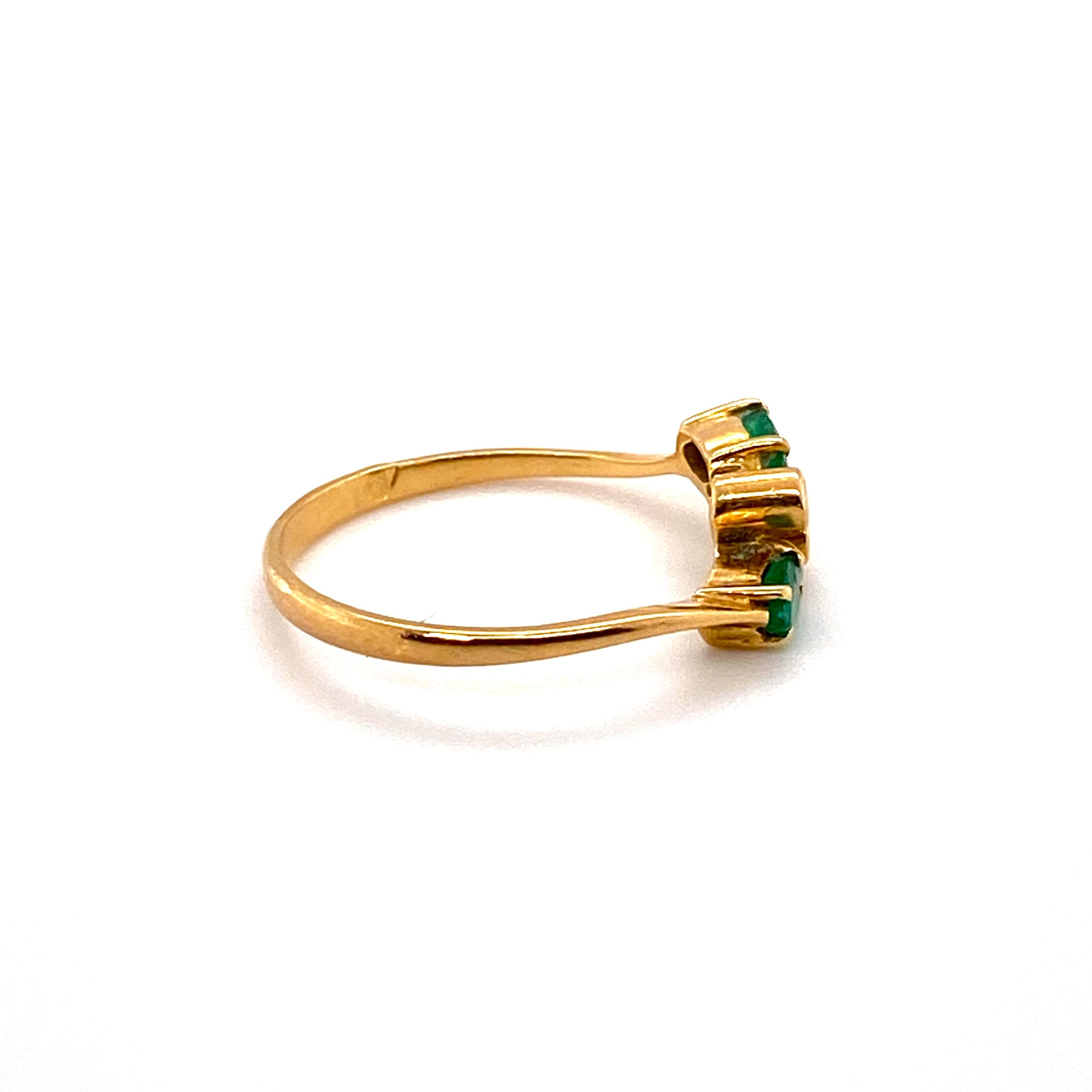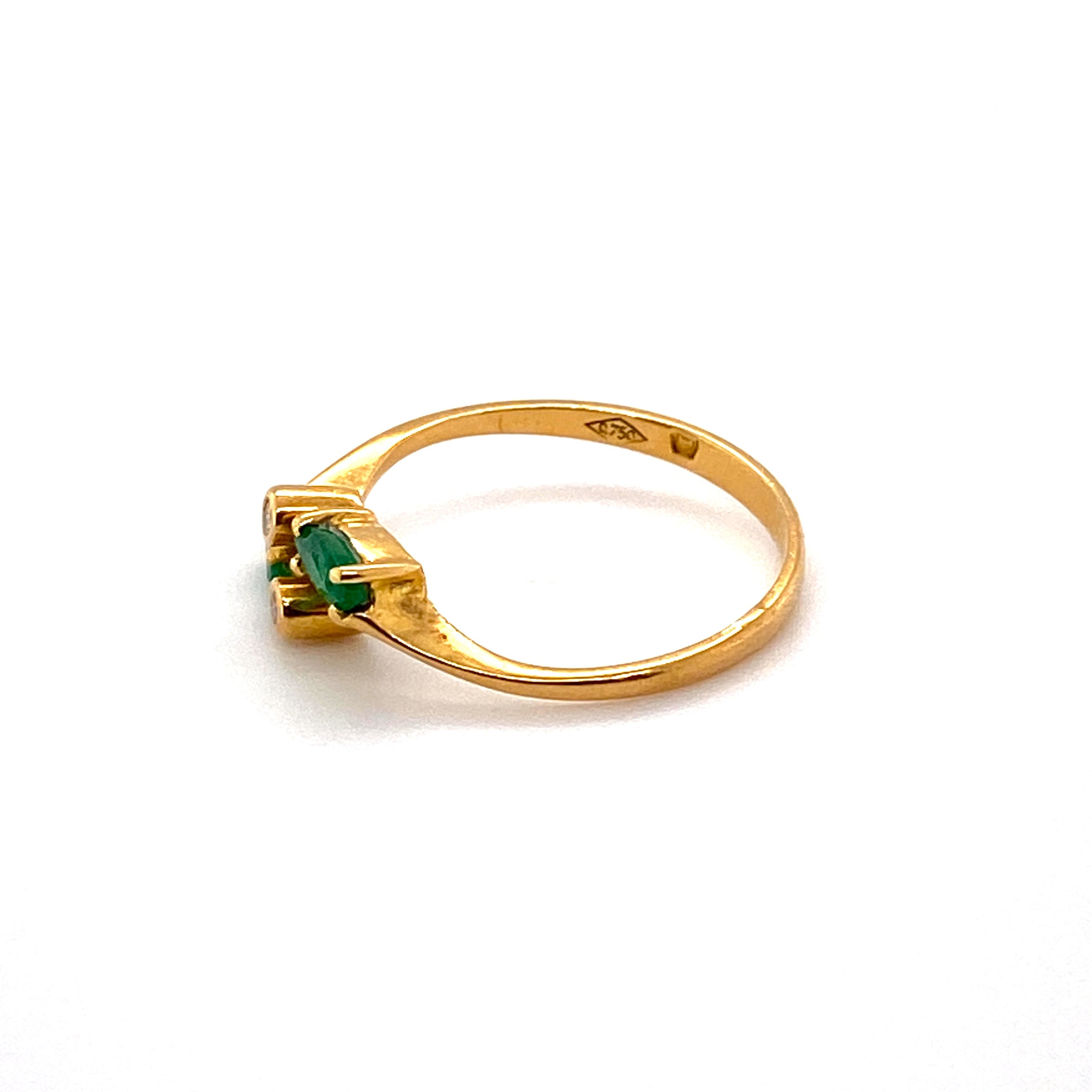 bezet met 2 x 1.7 mm briljant geslepen diamant met een totaal van circa 0,04 caraat en 2x markies geslepen smaragd 5x2mm, beide licht beschadigd.