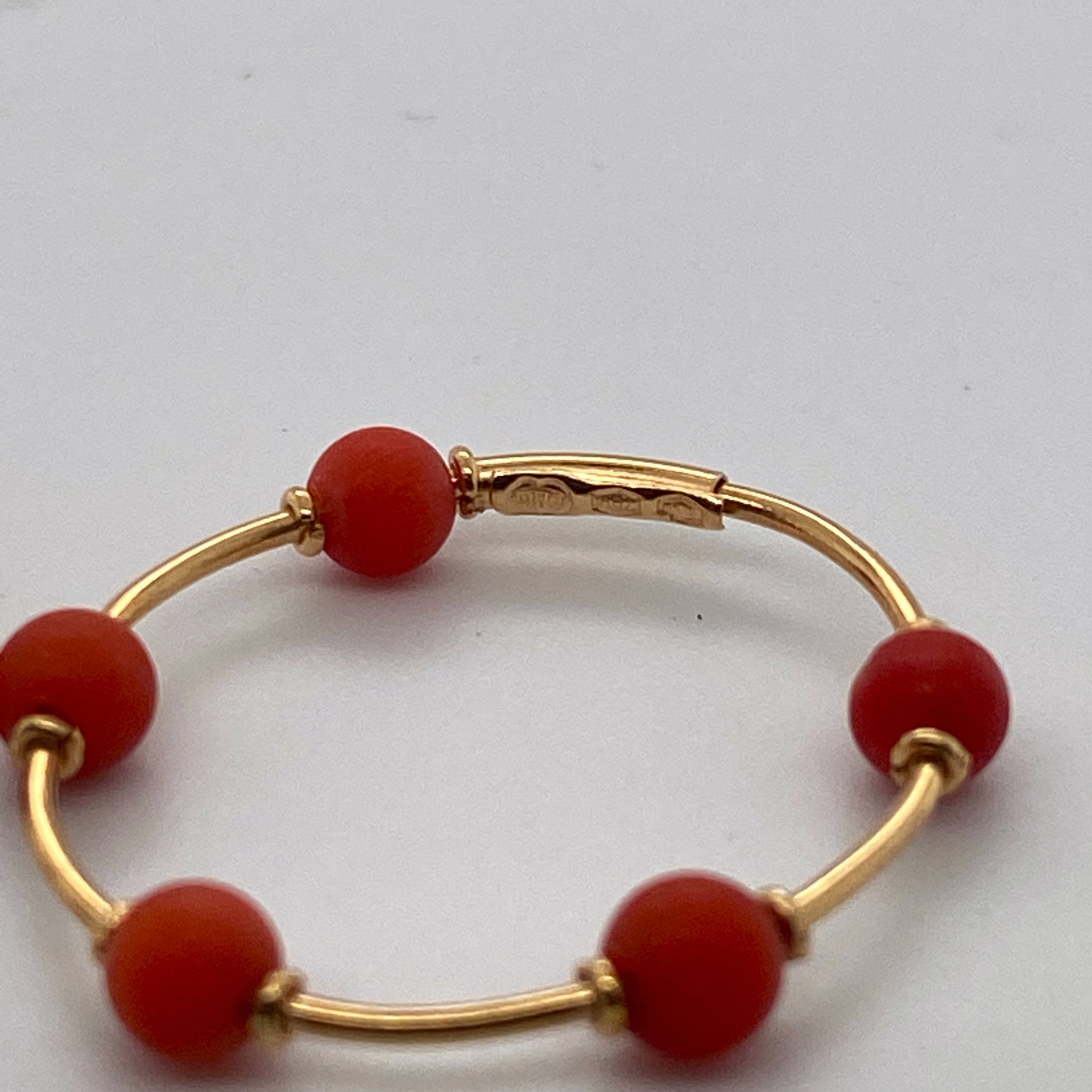 bezet met 10 x 5mm bloedkoraal kralen