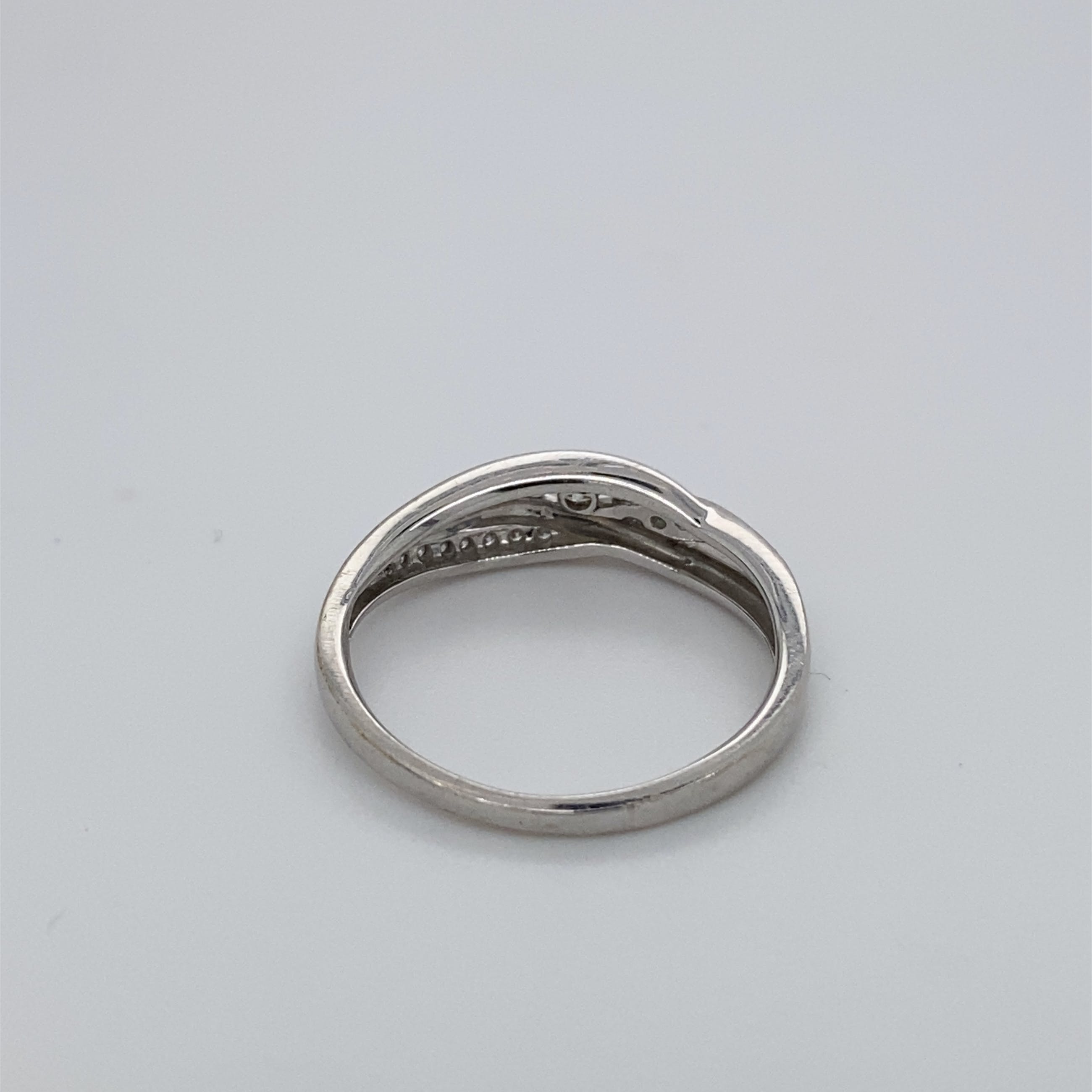 bezet met 18 briljant geslepen diamant, 15x 1,0mm, 1x 2,0mm en 2x 1,3mm, met een totaal van circa 0,15 caraat