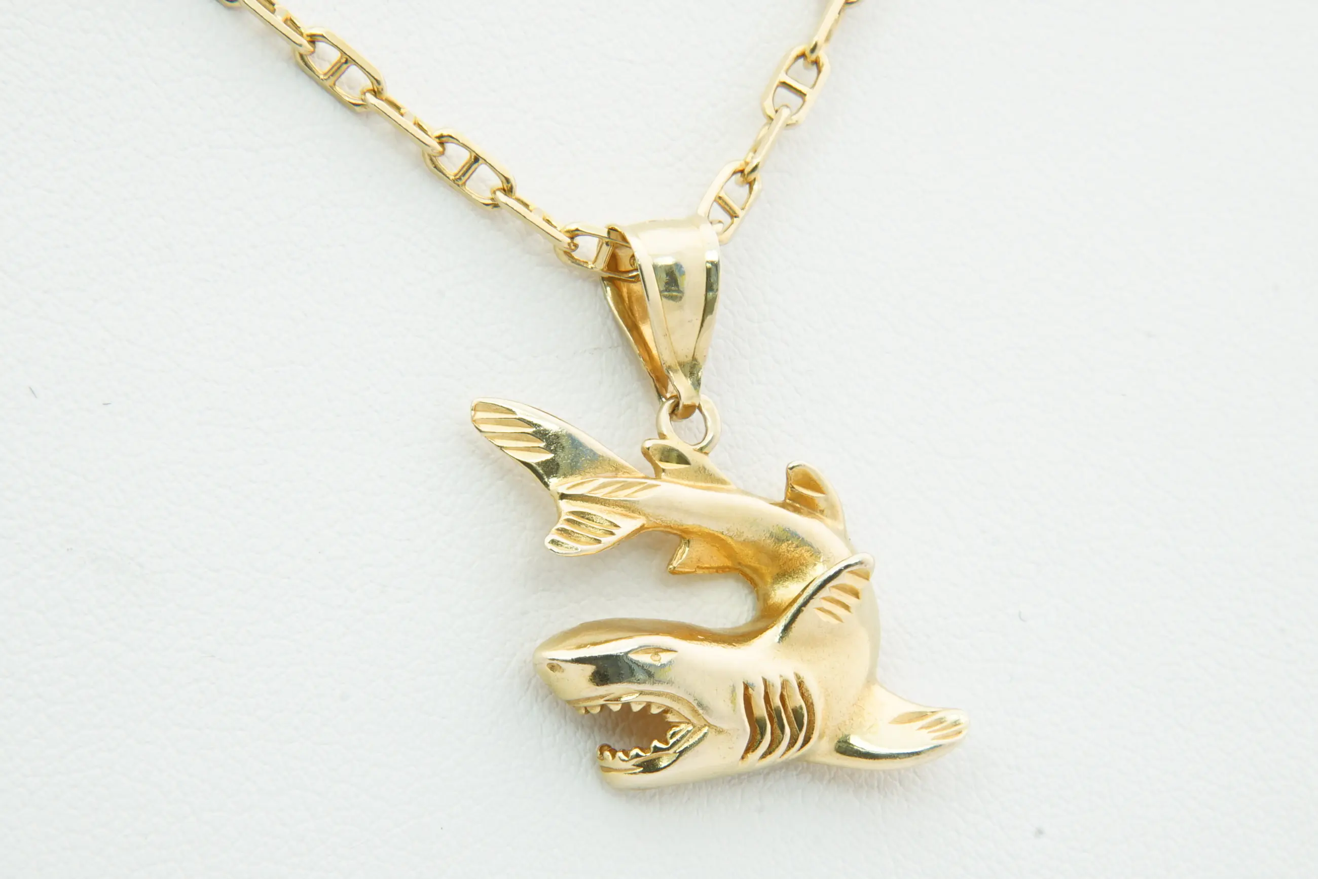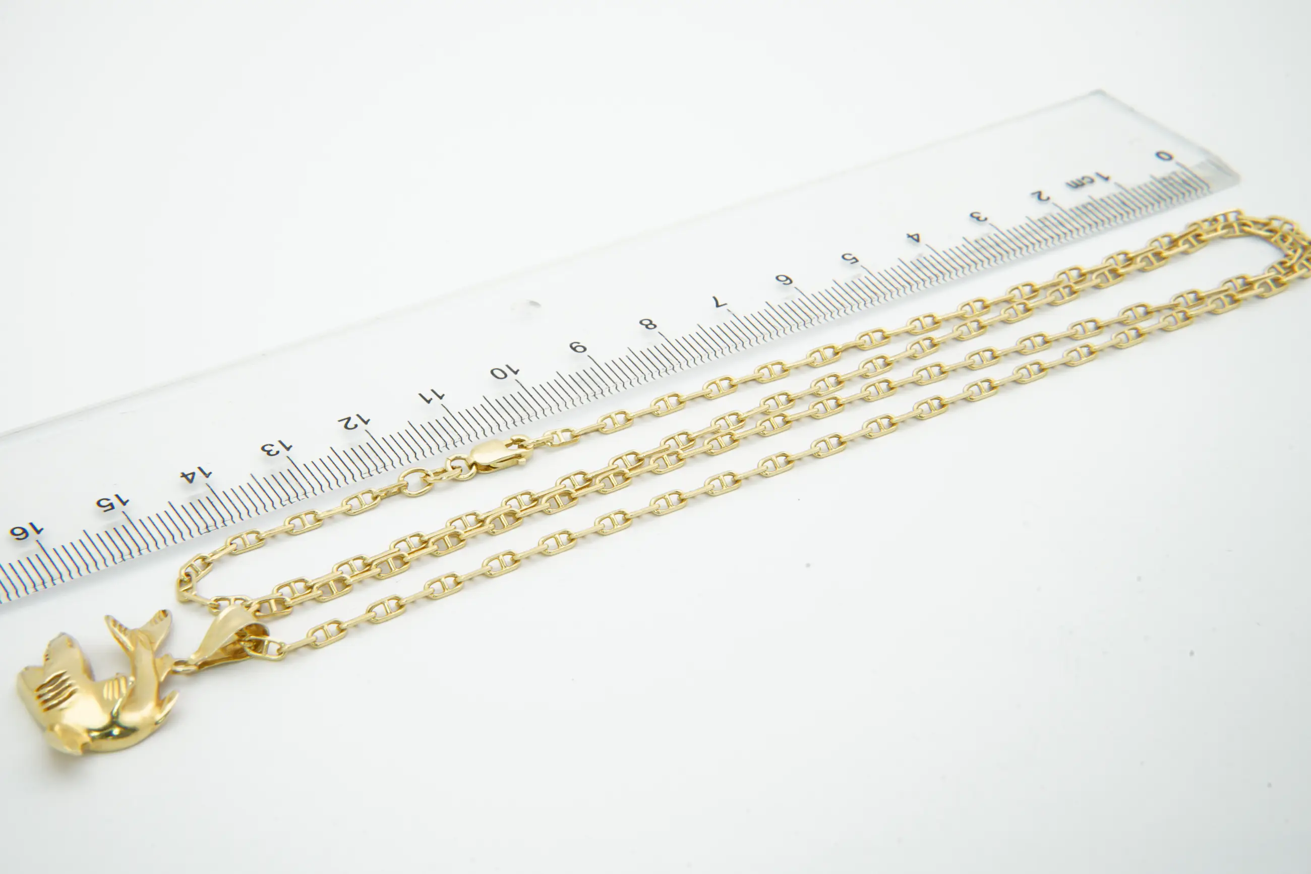 19- Lang & zo goed als nieuw 18Krt gouden anker collier met fraaie Haai hanger - Verkocht