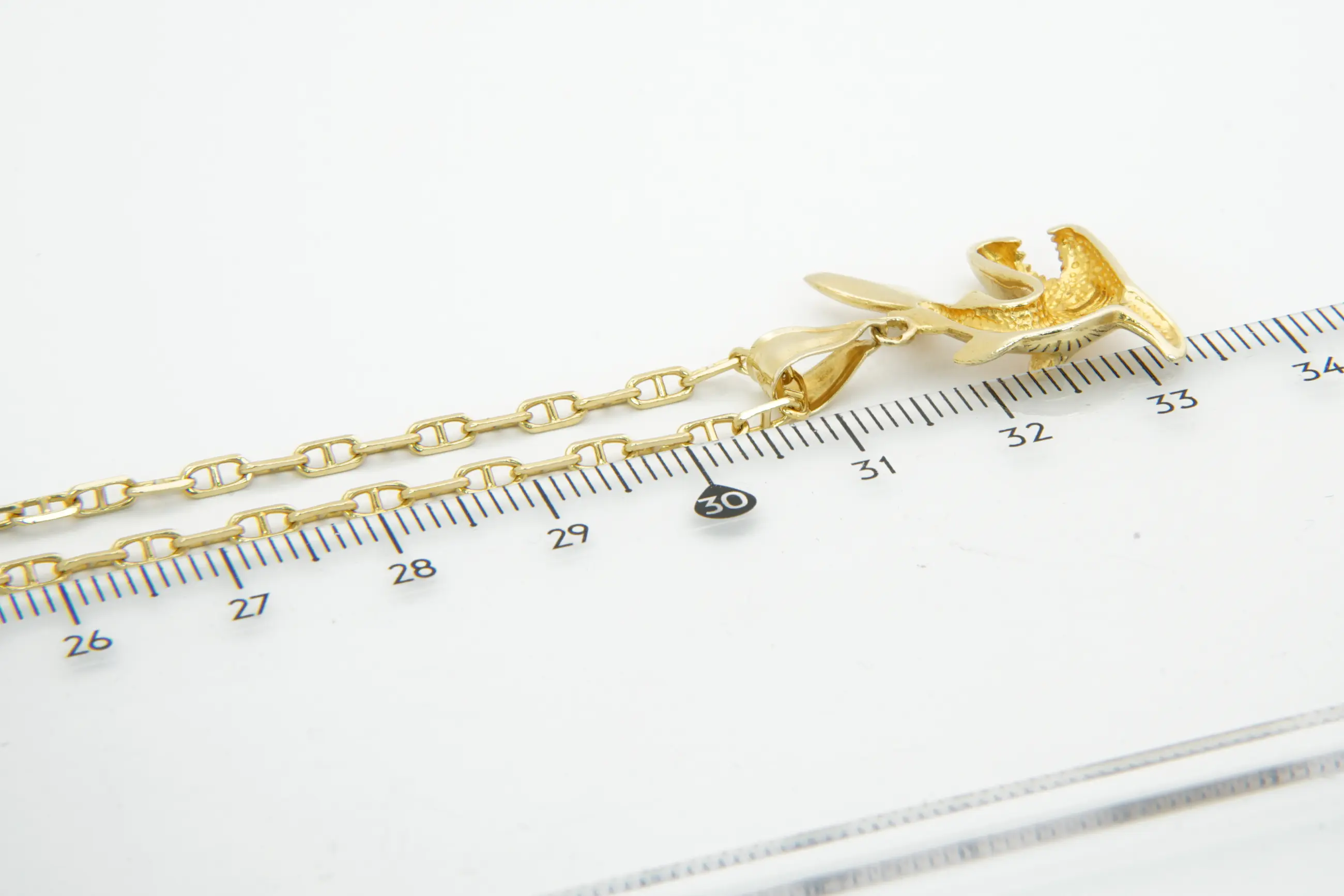 19- Lang & zo goed als nieuw 18Krt gouden anker collier met fraaie Haai hanger kopen? Bied vanaf 480!