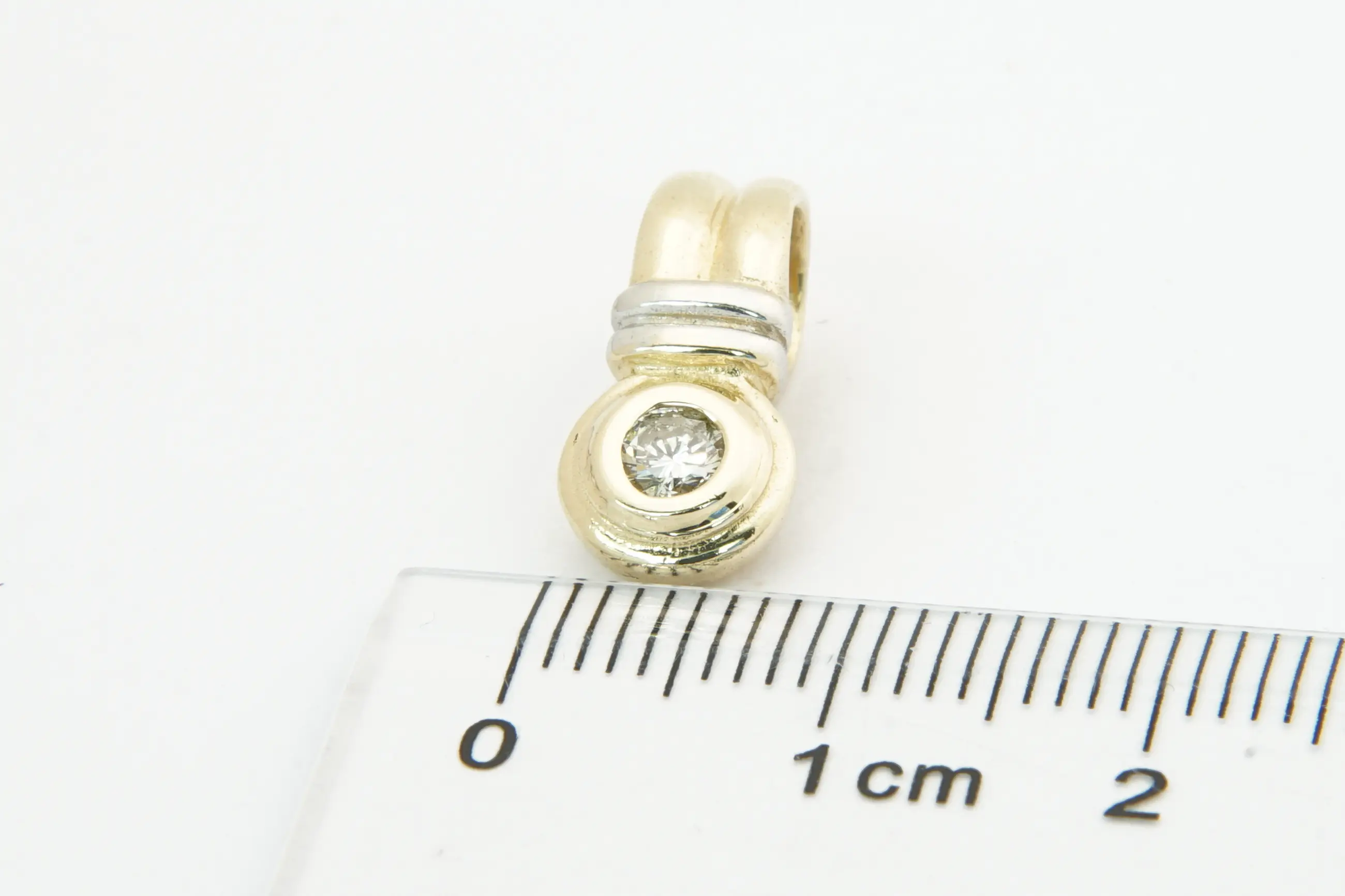 22- Bicolor gouden 14 karaats solitair hanger - met 0.15 ct briljant kopen? Bied vanaf 150!
