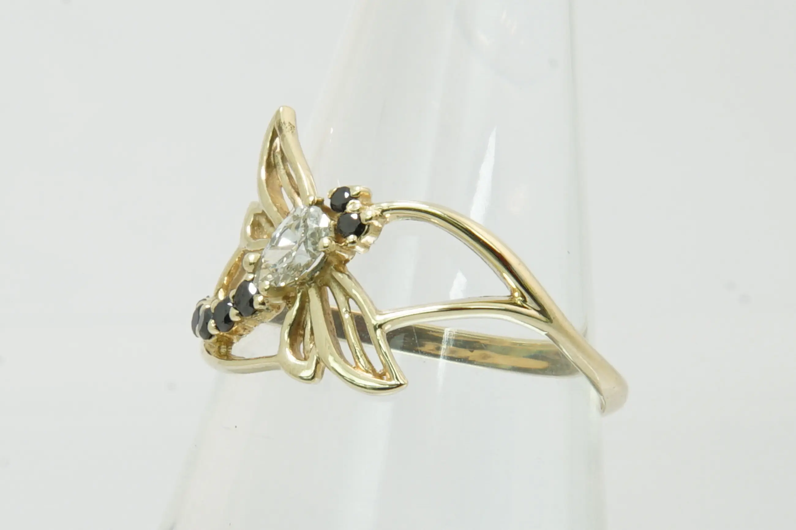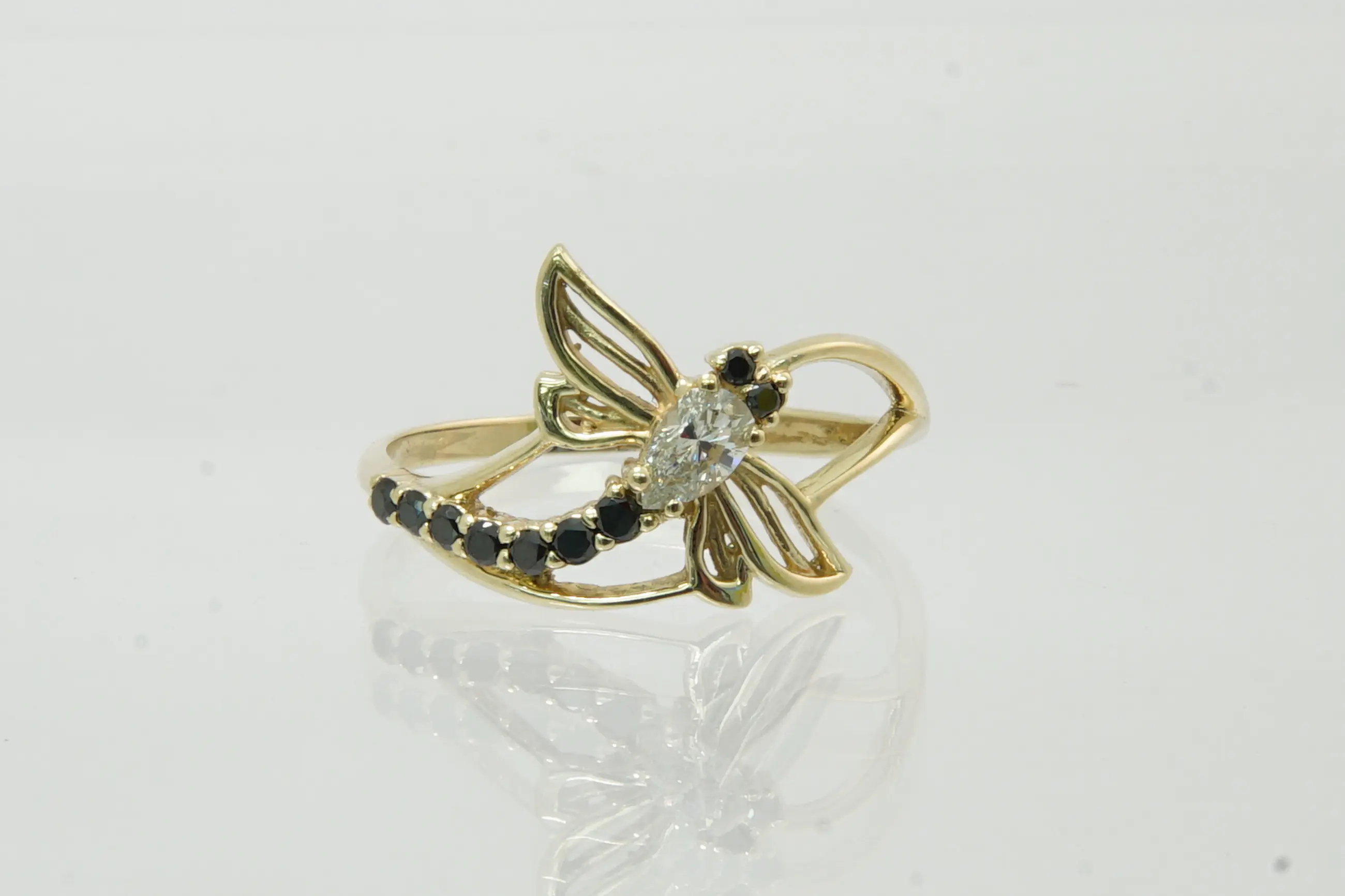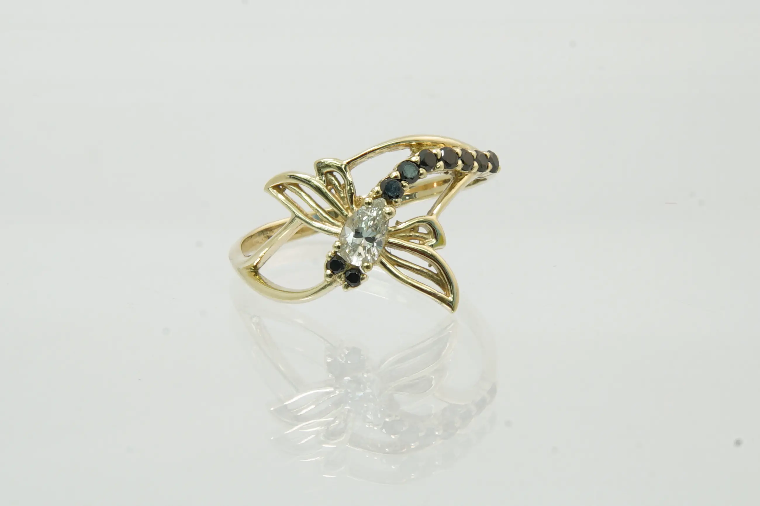 22- Elegante 14krt geel-goud & 0.30ct diamanten "Libelle" dames ring - Verkocht