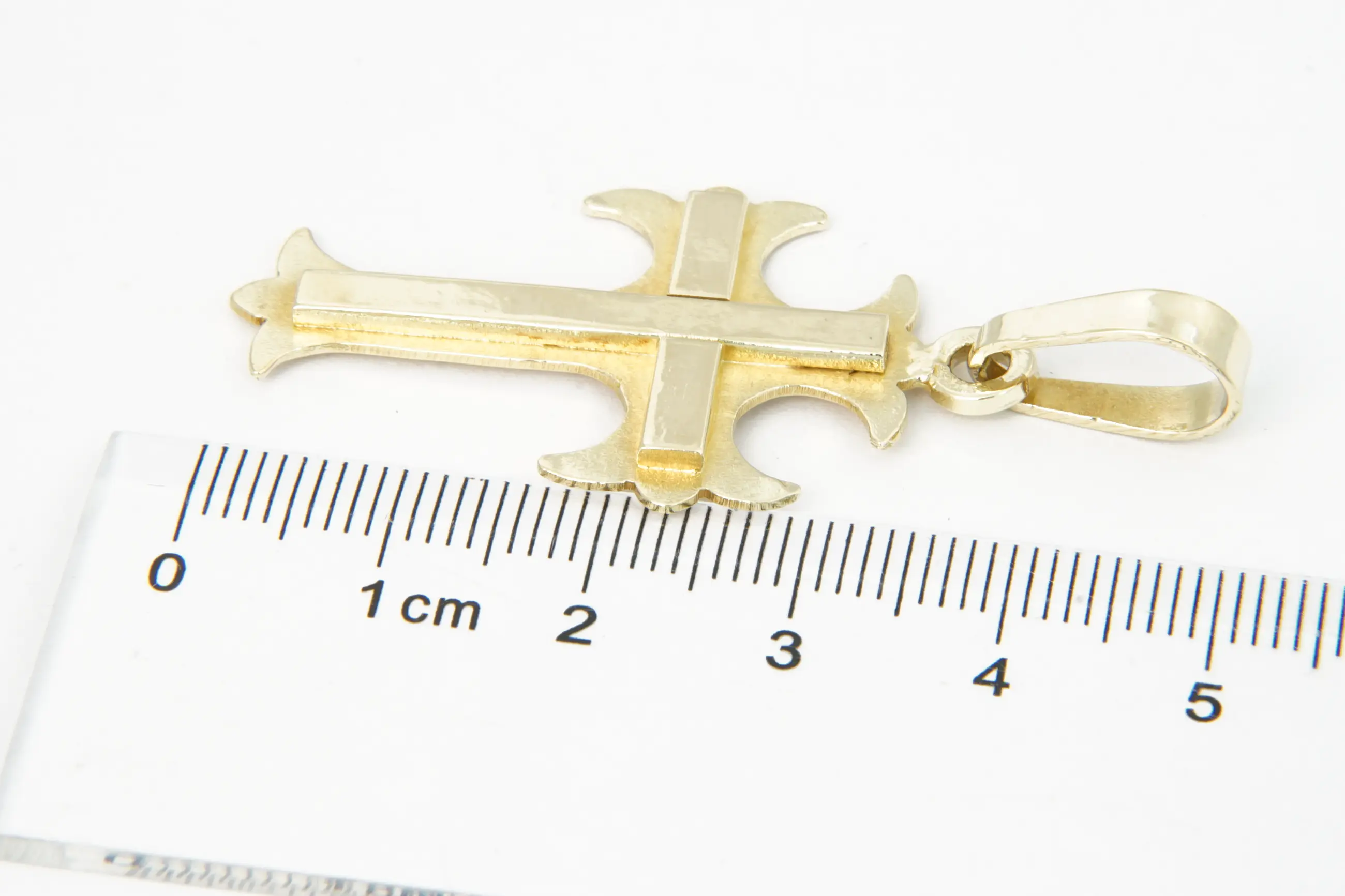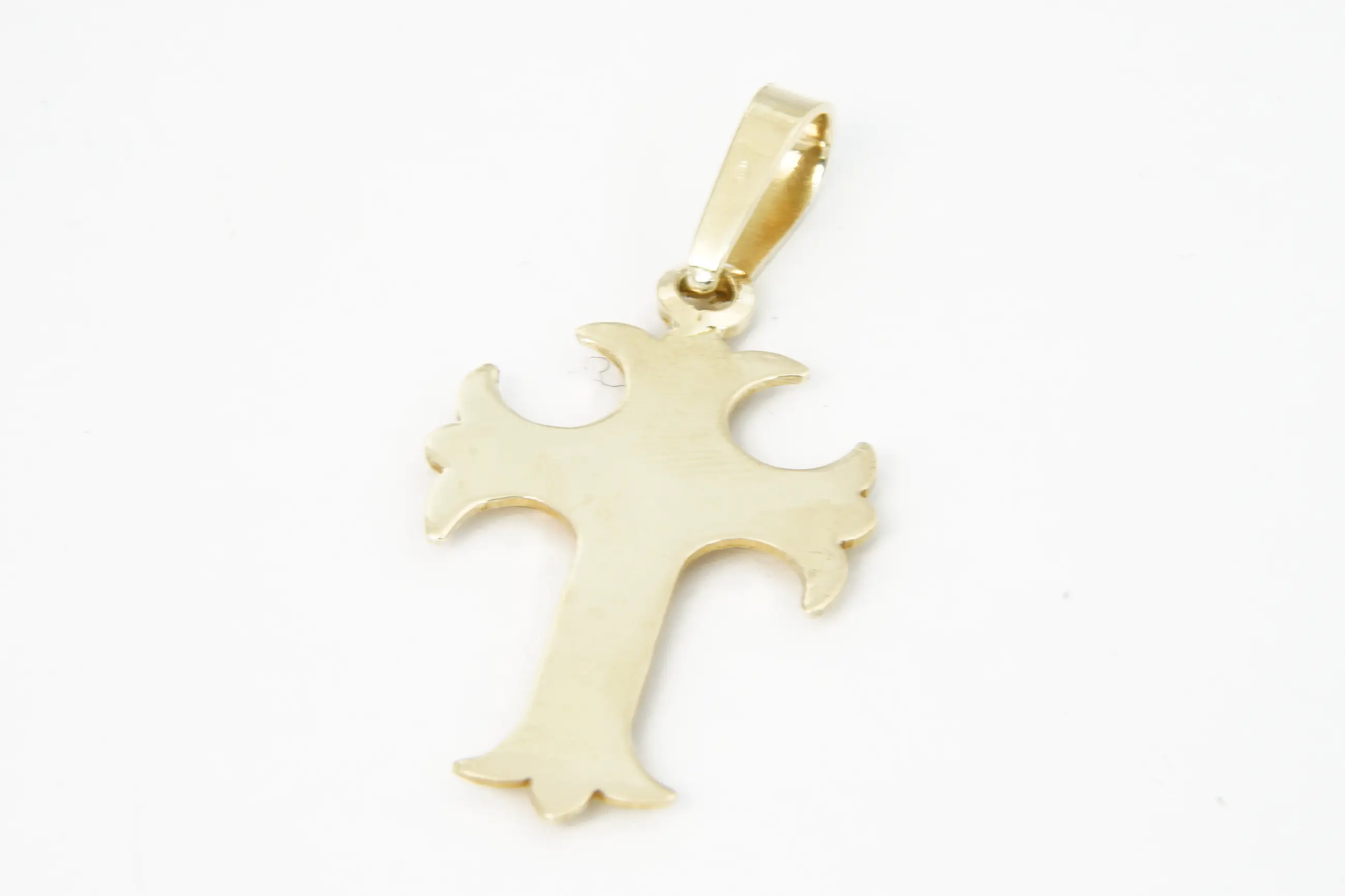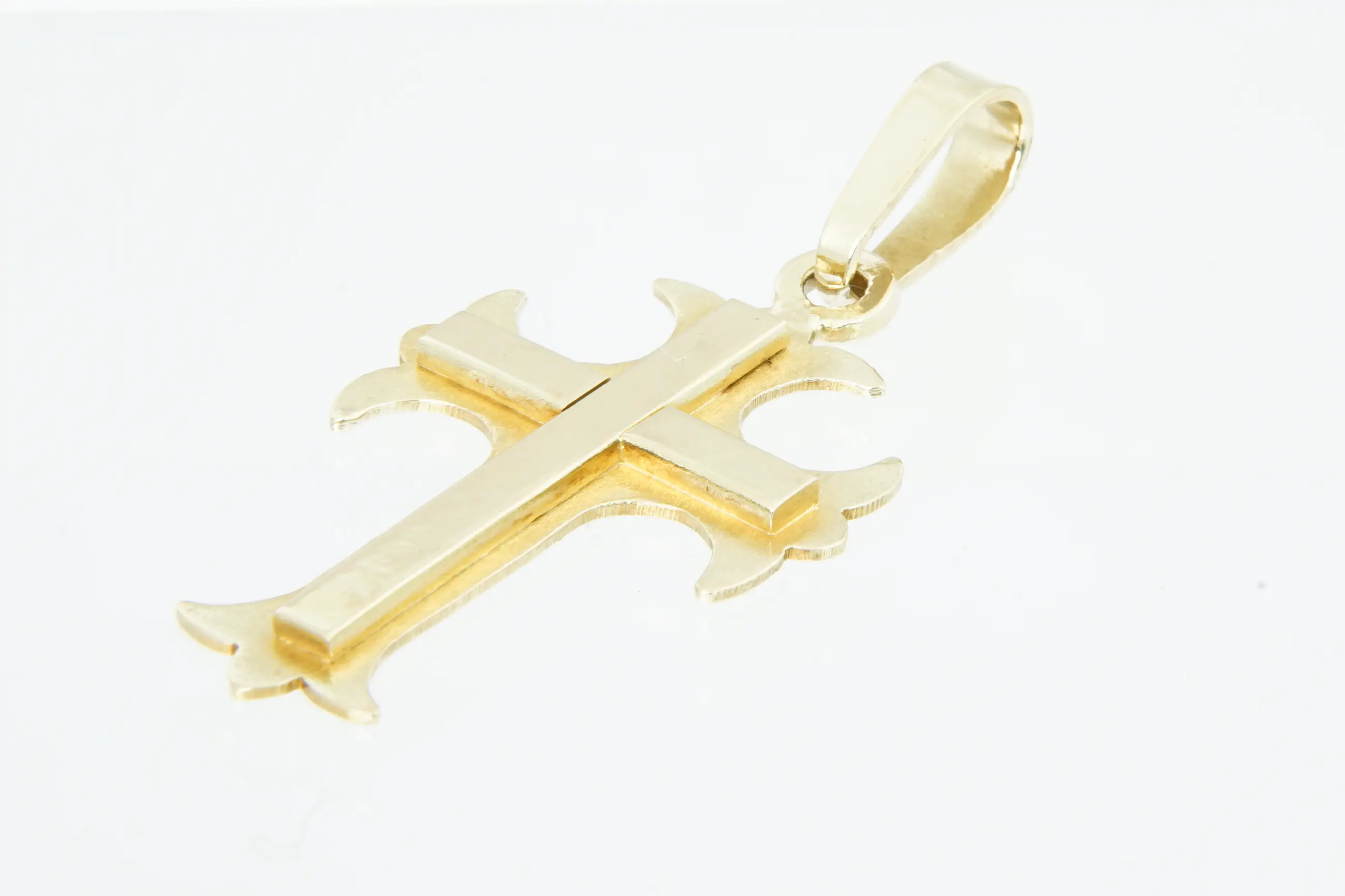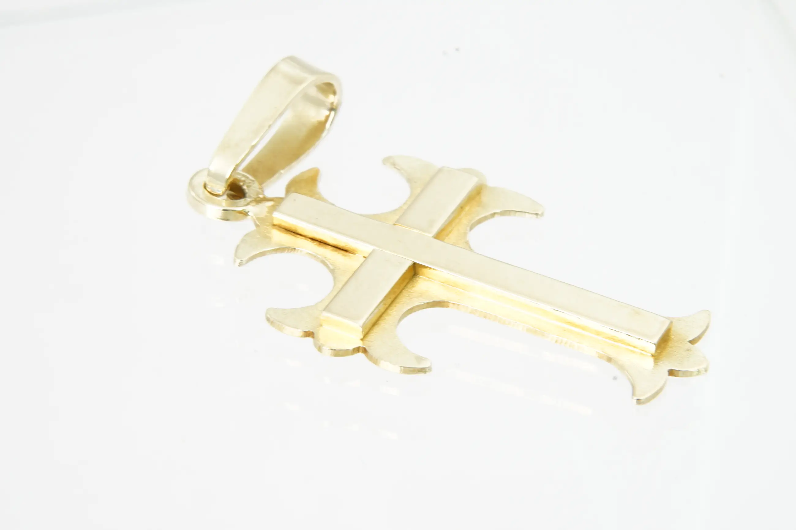 25 - Bijzondere 14 karaats - geel-gouden kruis hanger -Franse lelie motief - Verkocht