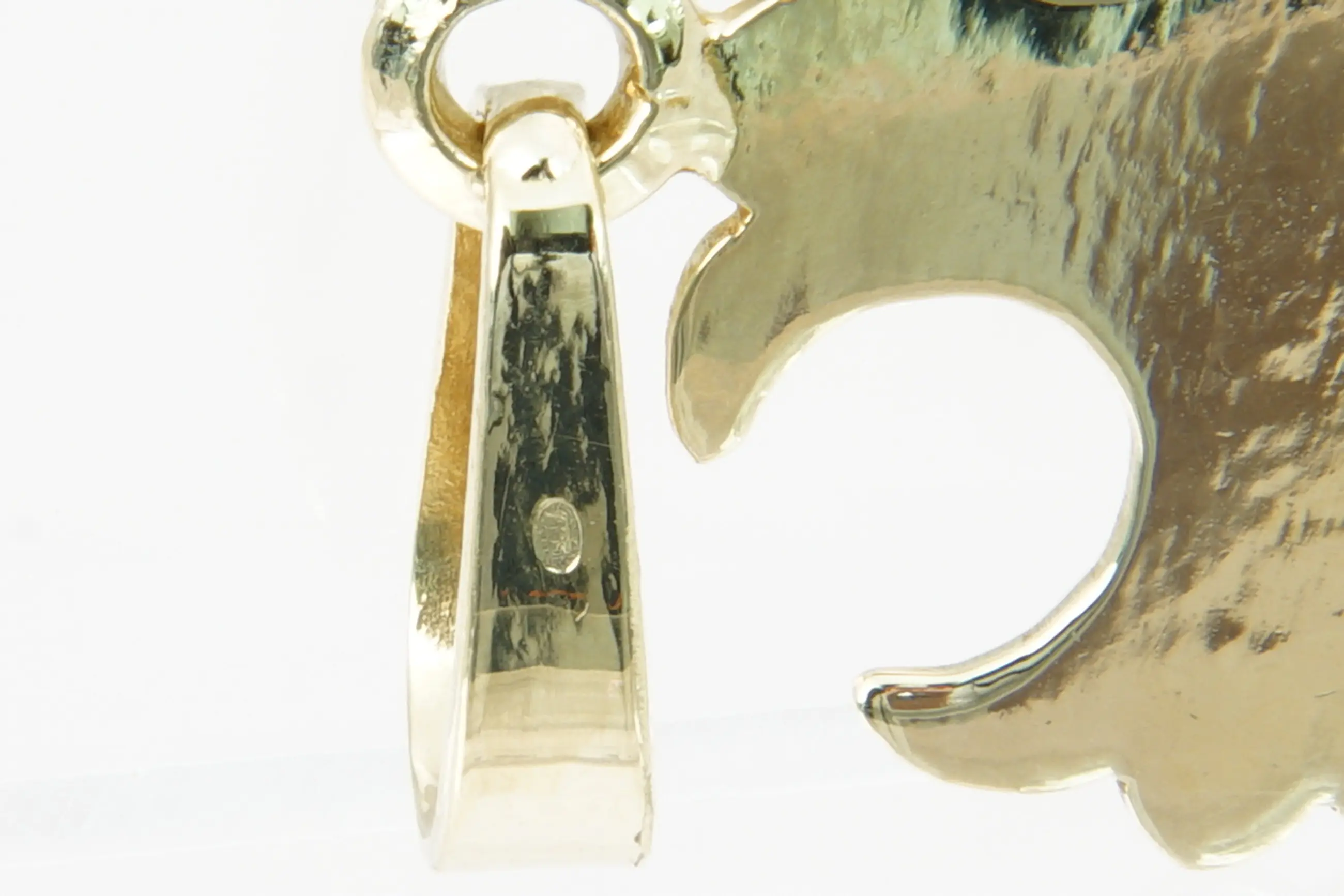 U biedt op een aparte 14 karaats  gekeurd geel-gouden kruishanger met fraai Franse lelie motief.  Op hangoog gekeurd. Verkeert in goede conditie.