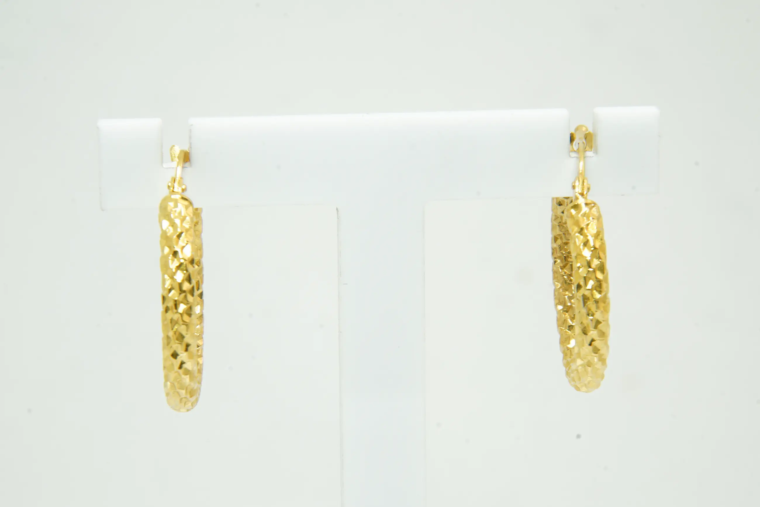 31 - Elegant paar (zo goed als nieuwe) geel-gouden & geruwde 18 Krt oorclips kopen? Bied vanaf 80!