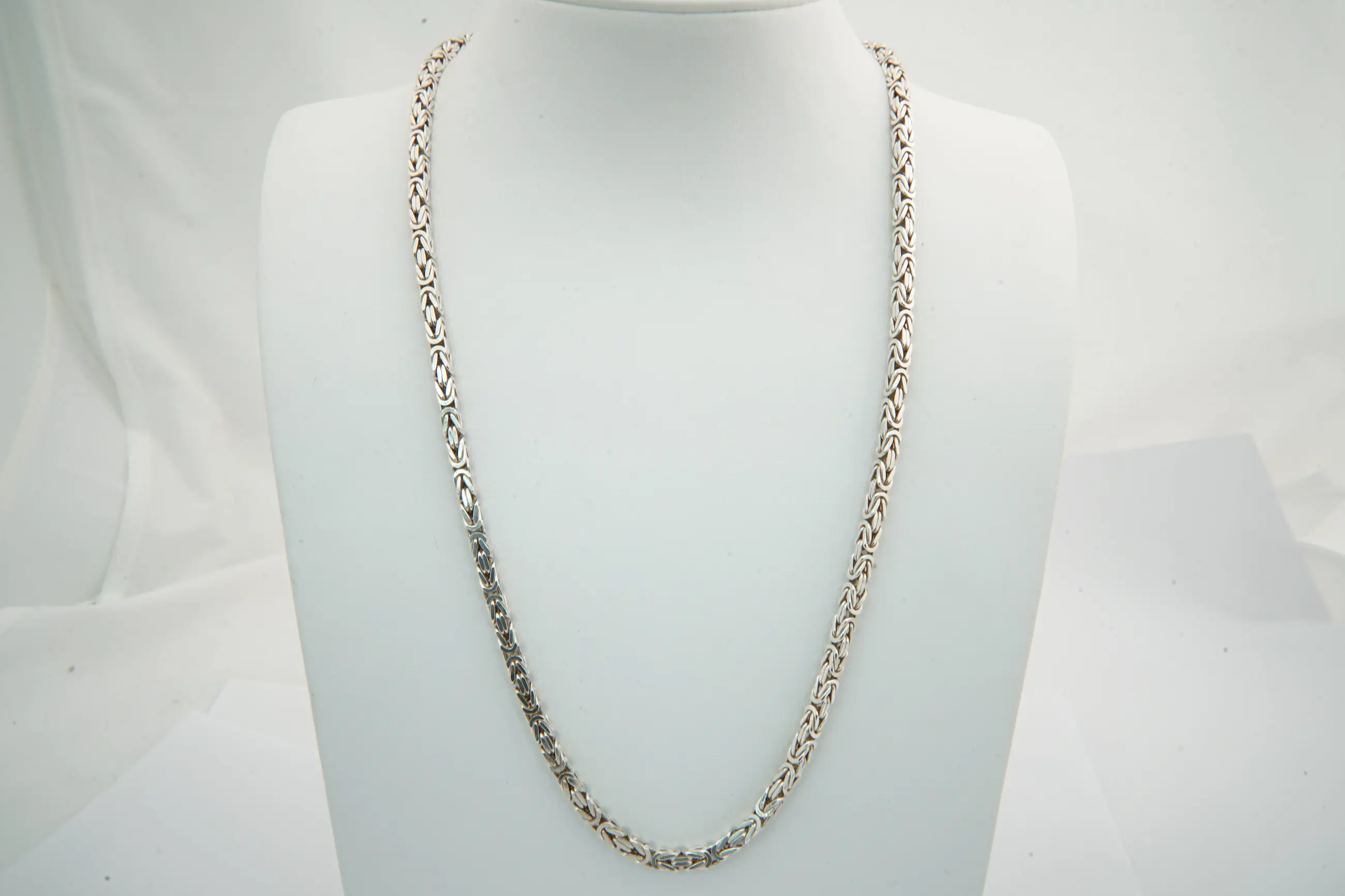 33- Lang & Massief 1e (0.925) gehalte Zilveren zg. "Konings" collier - vierkant - Verkocht