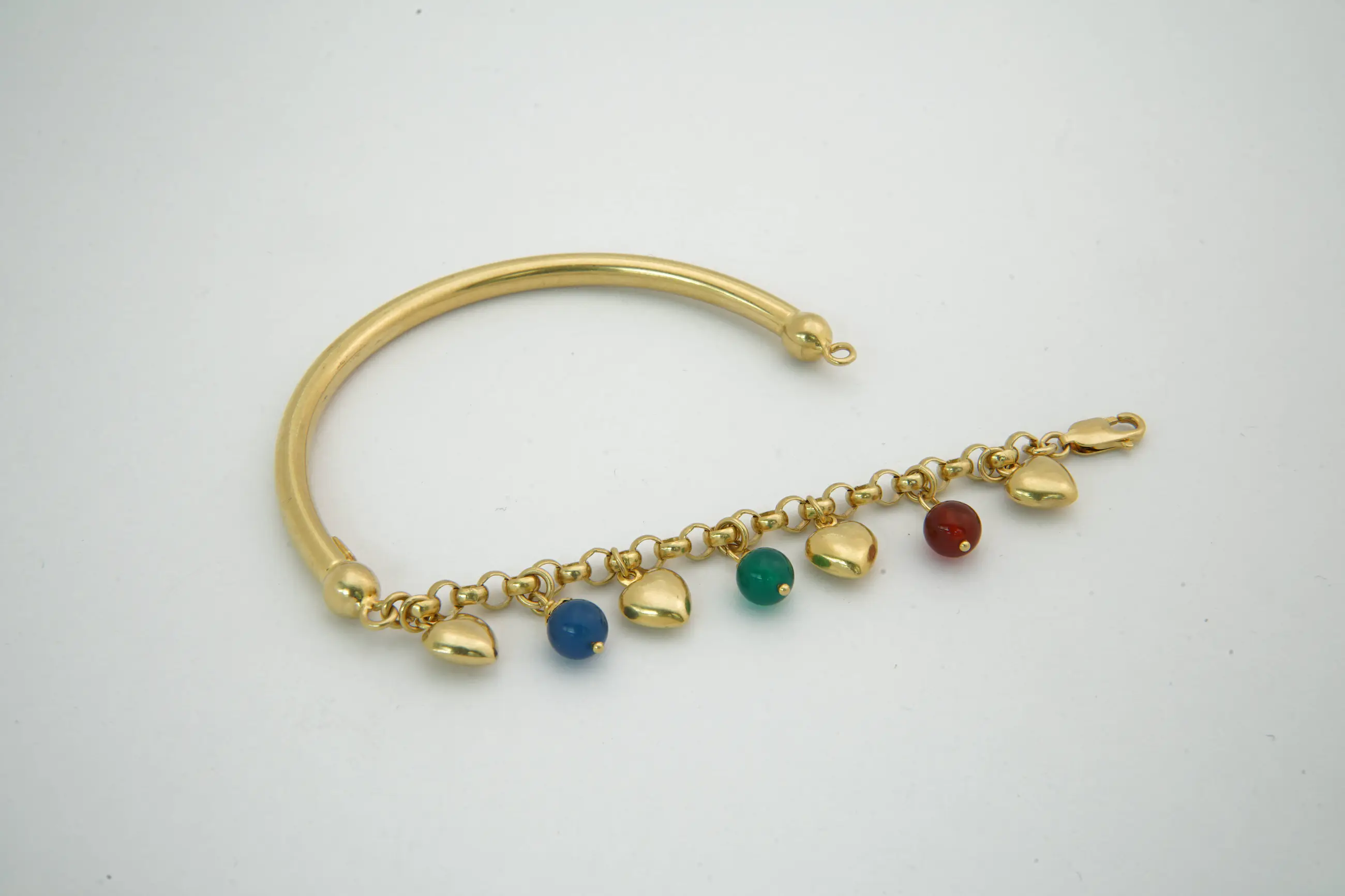 34 - Fraaie 18Krt geel gouden armband met 7 hangertjes - Verkocht