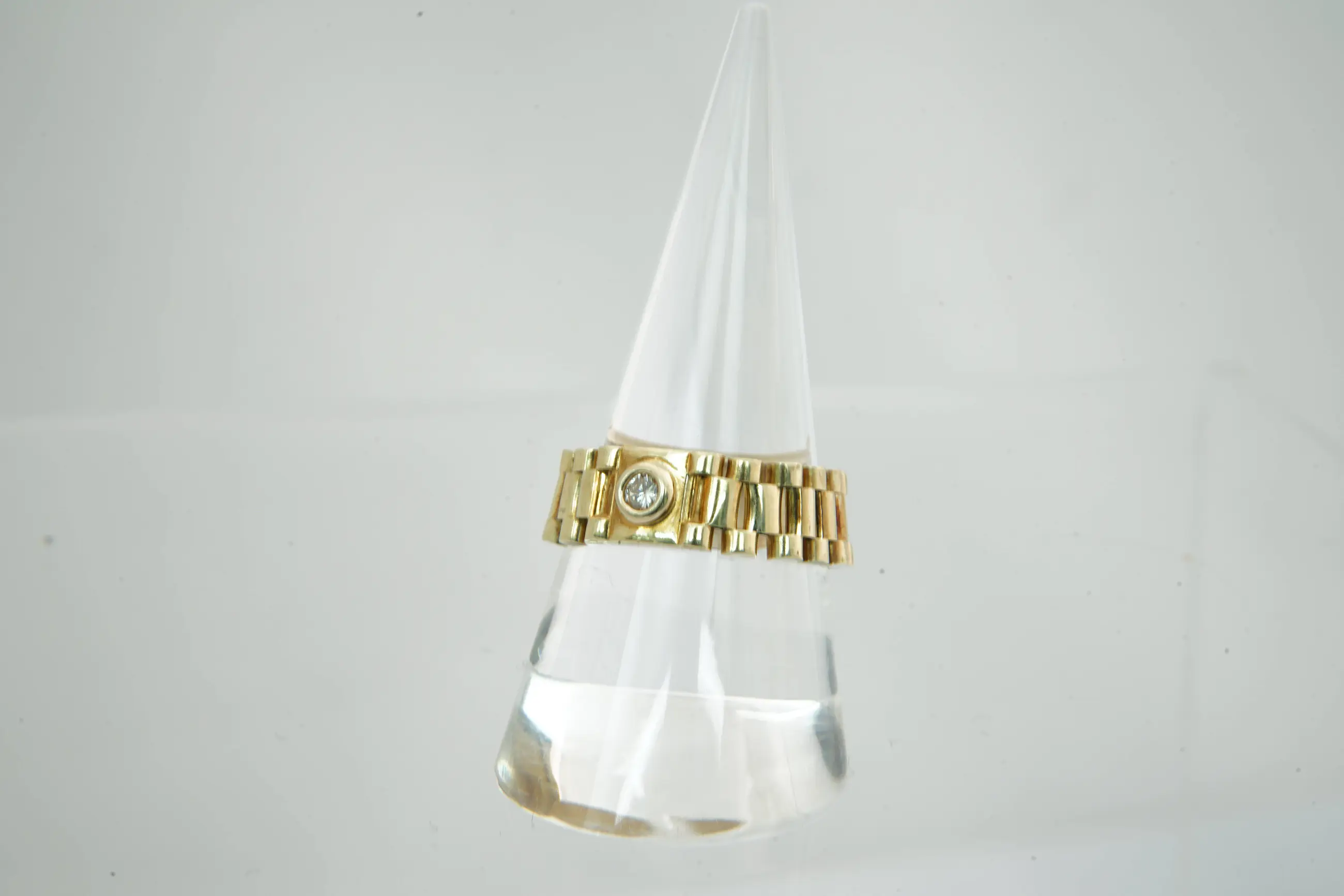 37-  Aparte 14Krt geel gouden Rolex stijl flexibele ring - met 0.05ct diamant kopen? Bied vanaf 200!
