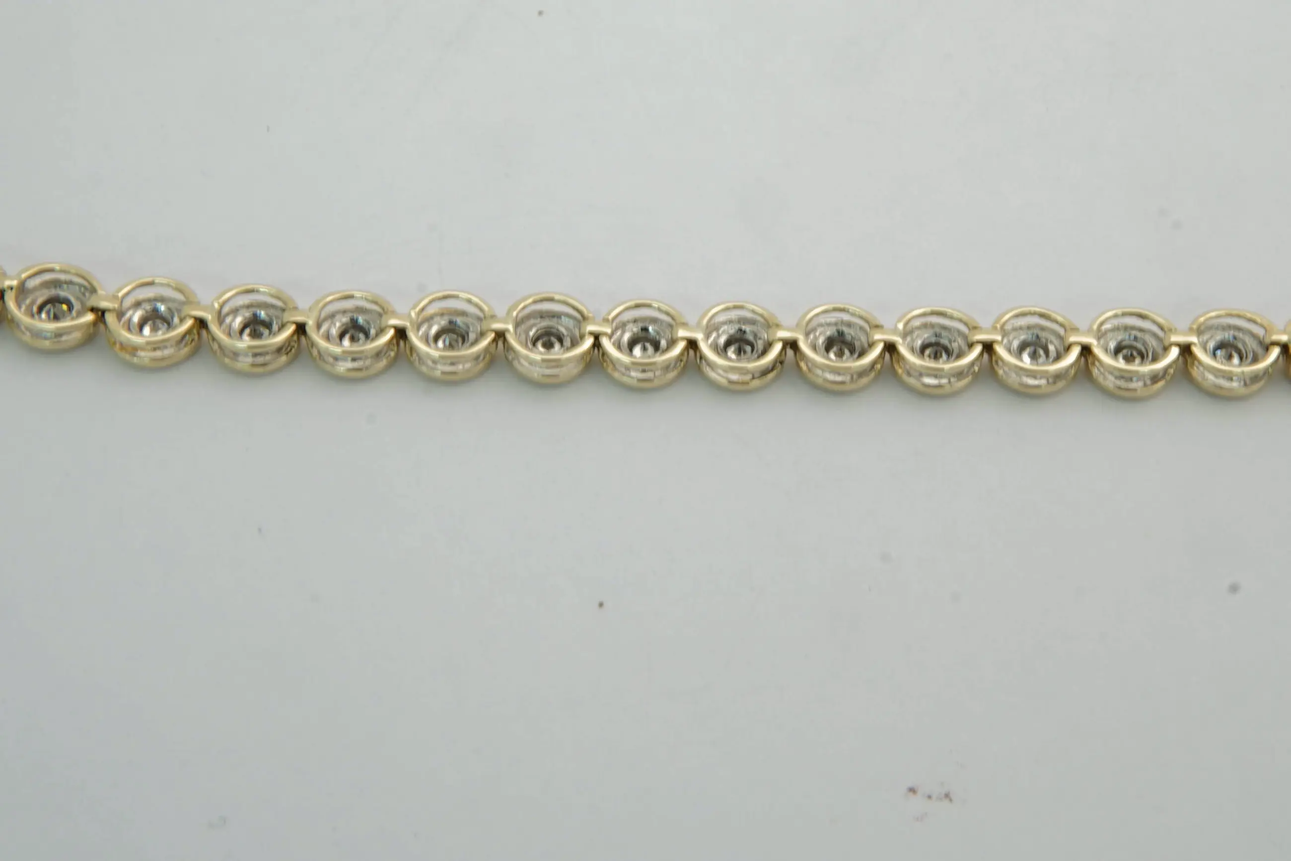 • U biedt op een prachtig 14 krt  goud & diamanten zg. "Tennis" dames-armband. De armband is voorzien van 33 separaat gezette briljant geslepen diamanten met een totaal gewicht van ca. 2.00ct.  Armband verkeert in goede conditie en is voorzien van goed functionerend bakslot met veiligheidsclipje.