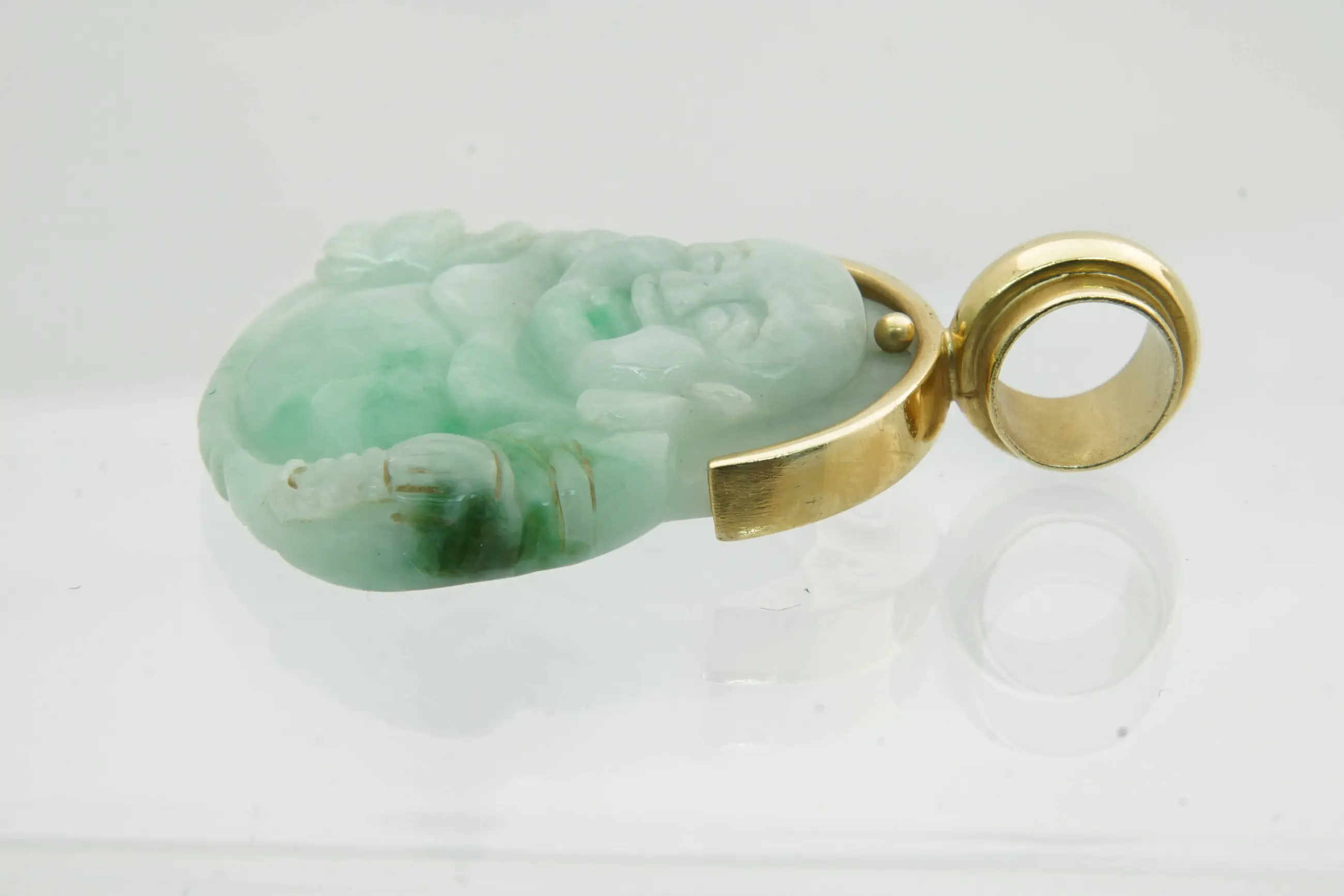 46 - Gedeeltelijk 18 karaat geel gouden hanger met lachende buddha - Verkocht