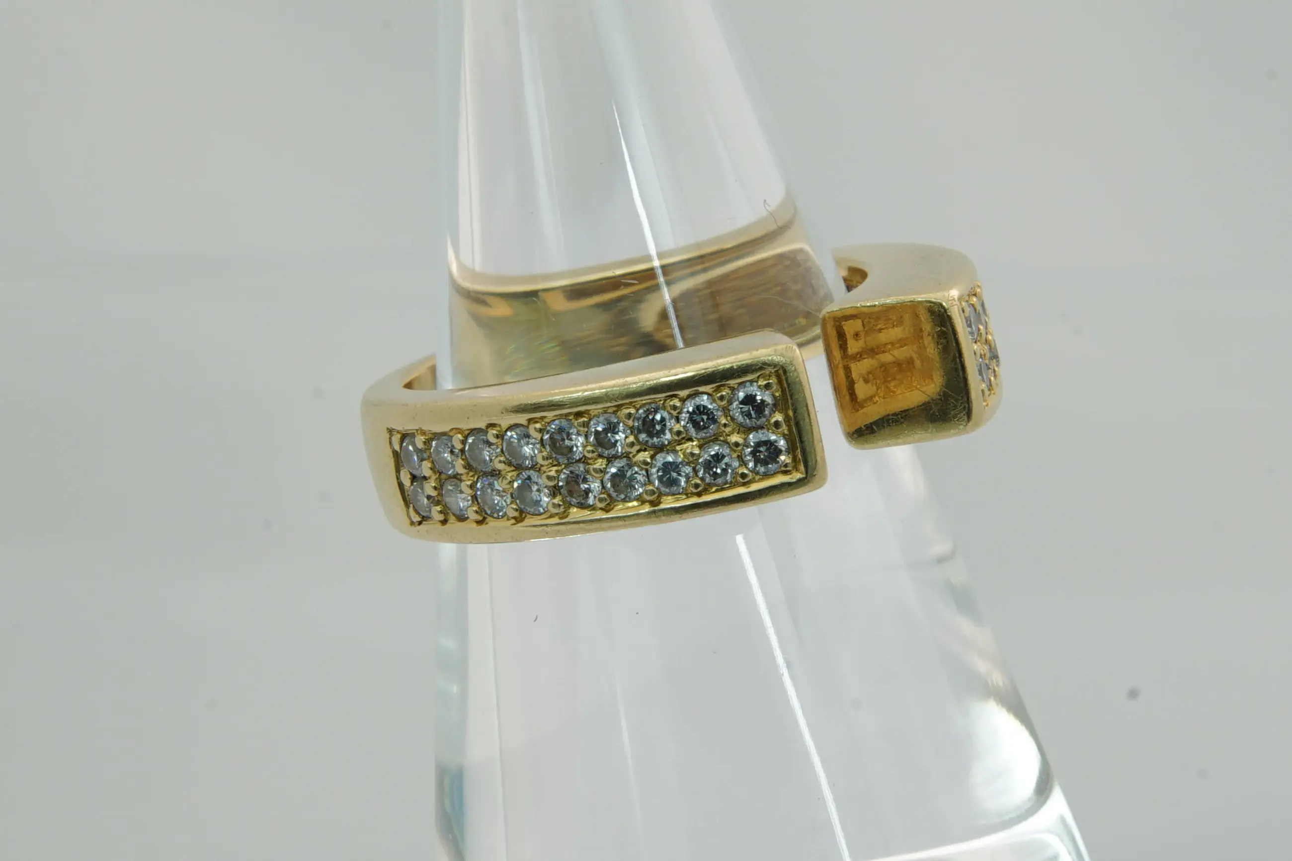47 - Aparte 18 karaat geel gouden ring met diamant gezet ca 0.35 crt briljant - Verkocht