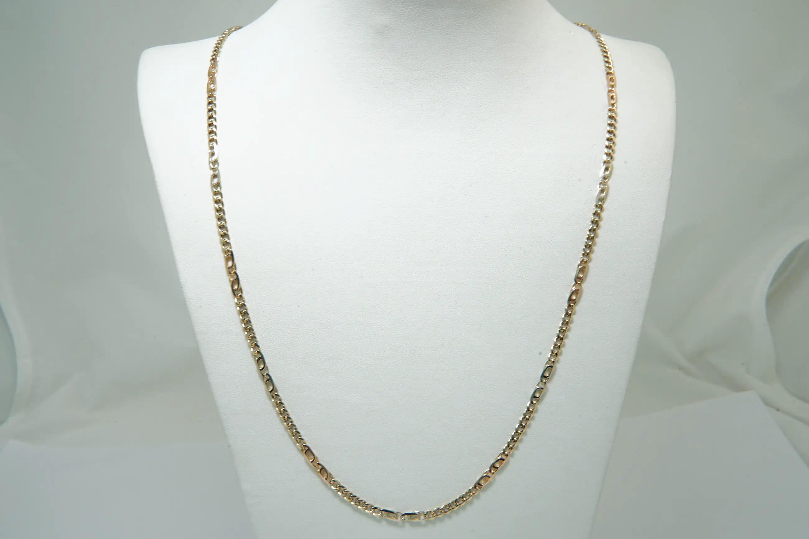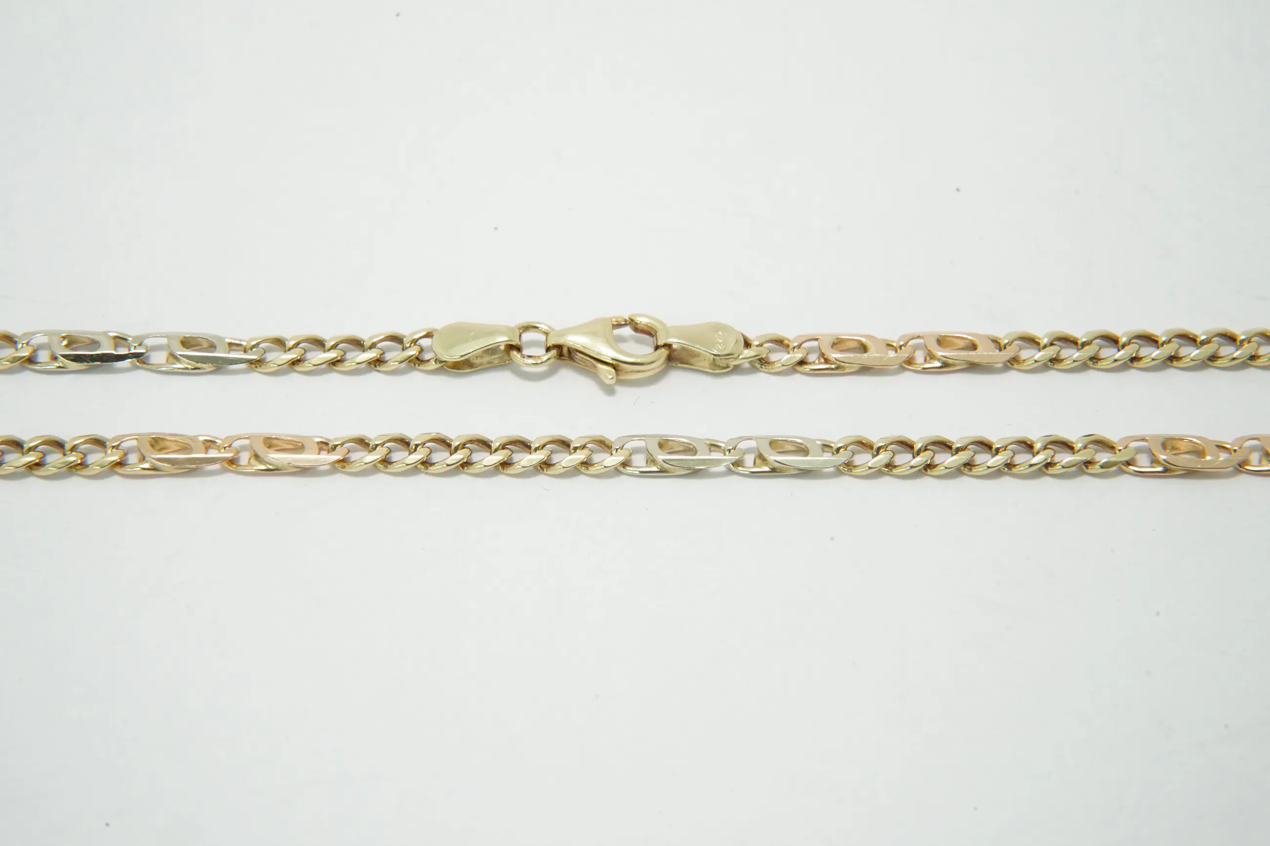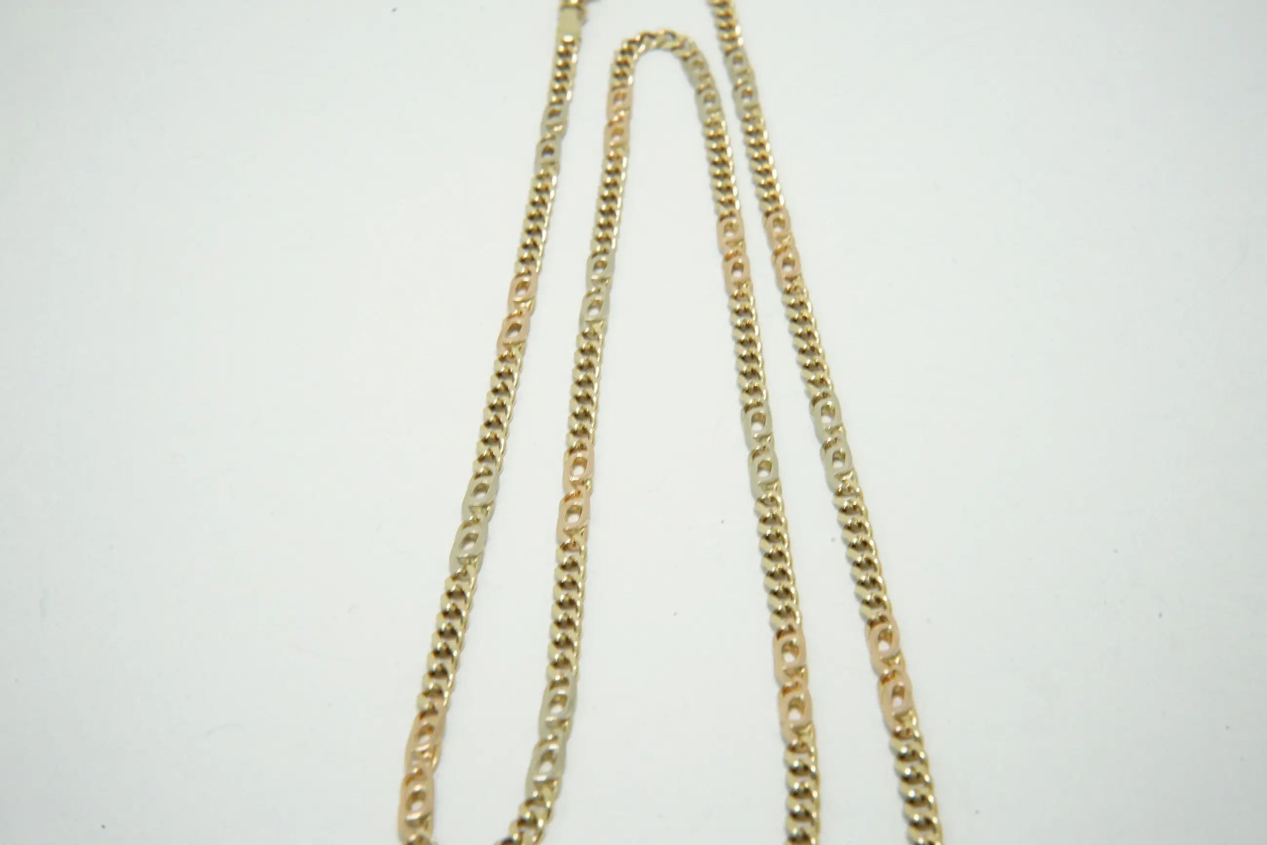 49 - Lang (60cm) en zo goed als nieuw 14 krt tri-color gouden collier - Verkocht