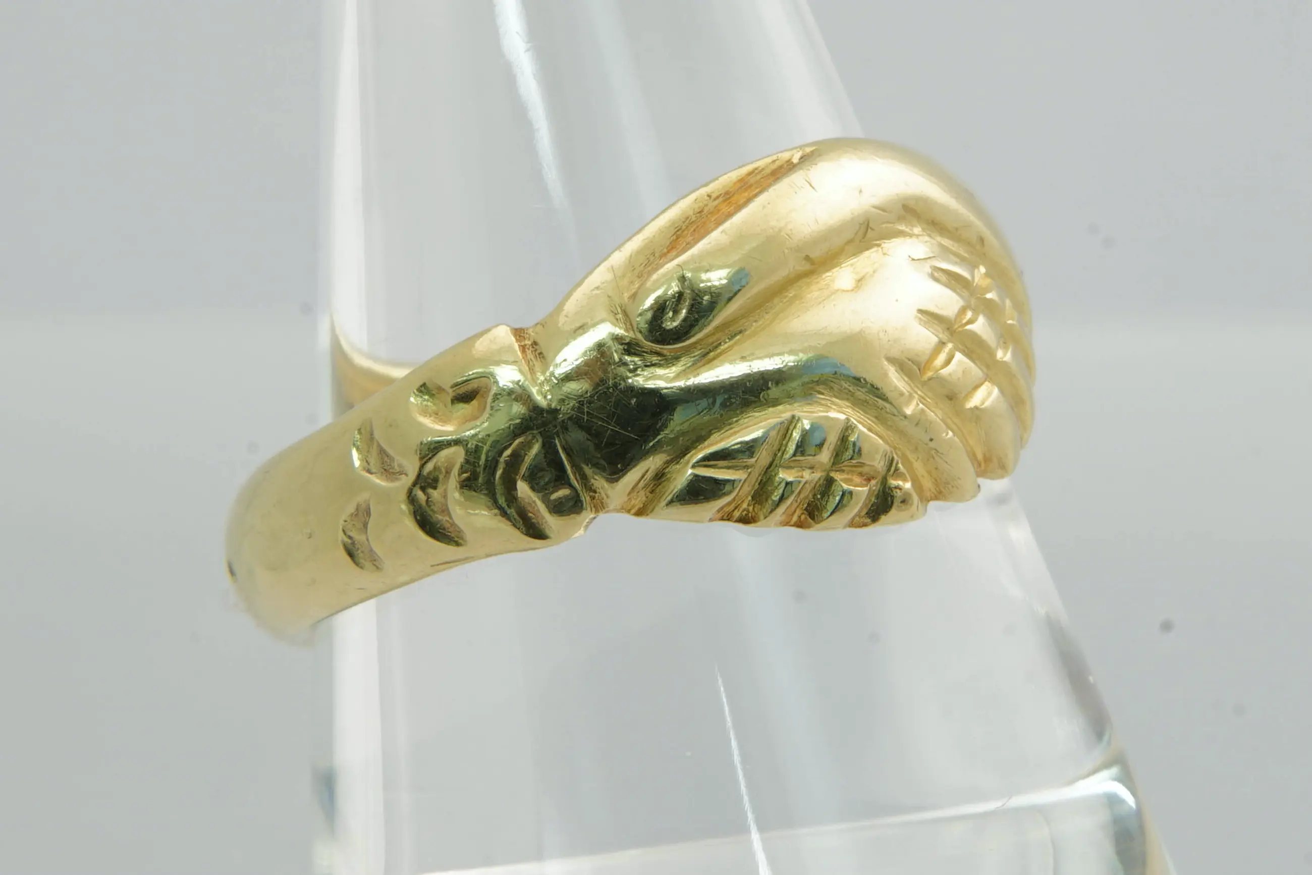 57 - Grote en fraai bewerkte 18 krt geel gouden Surinaamse vriendschaps-ring kopen? Bied vanaf 480!