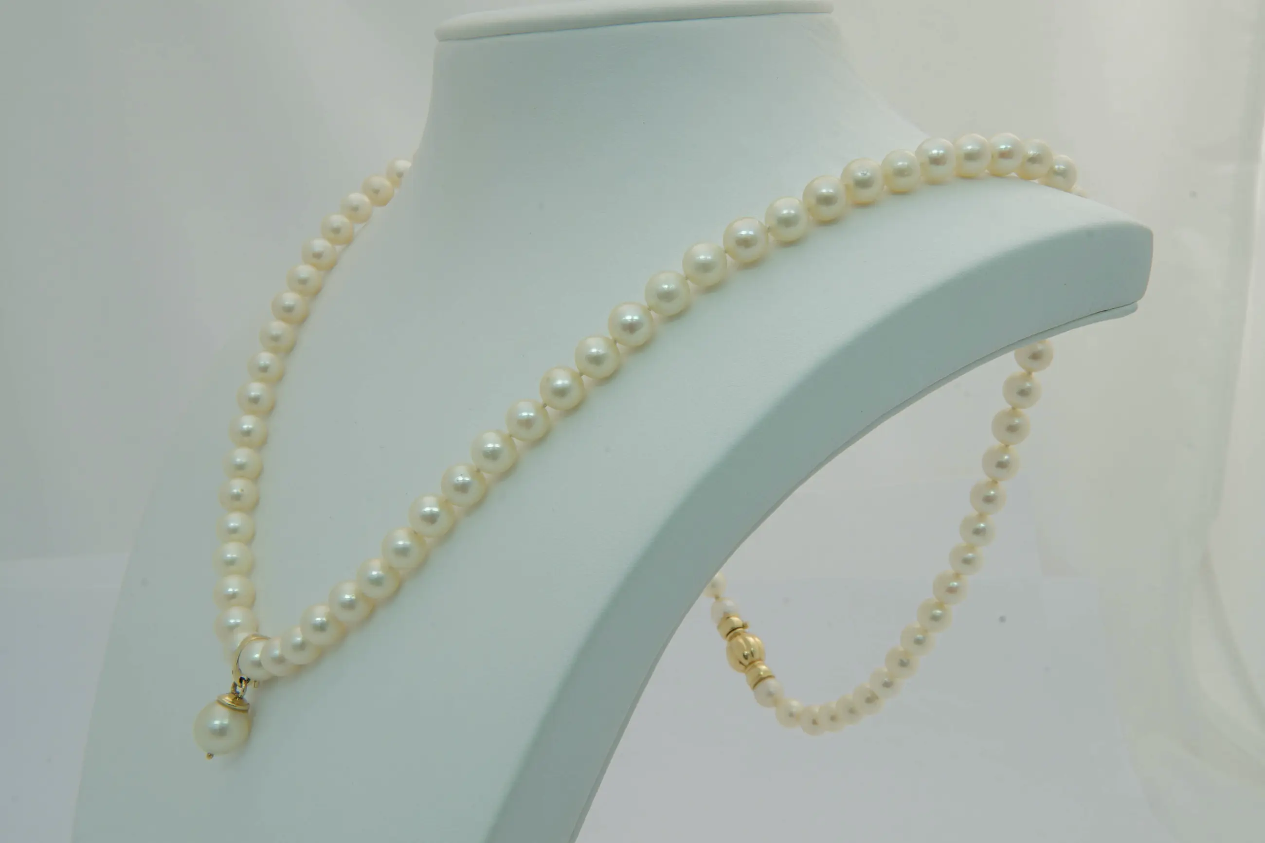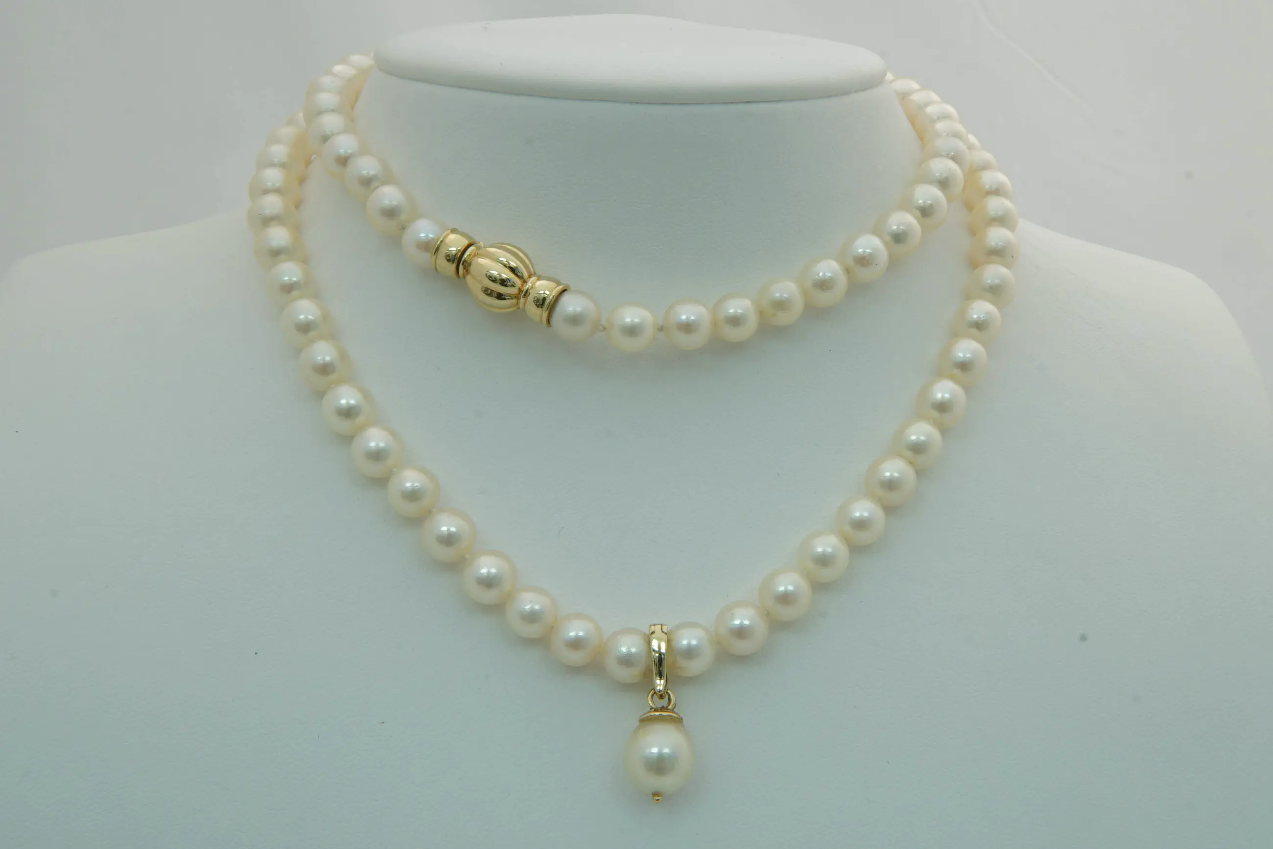 6 - Klassiek cultive parel ketting met parel hanger. 14krt geelgouden sluiting - Verkocht
